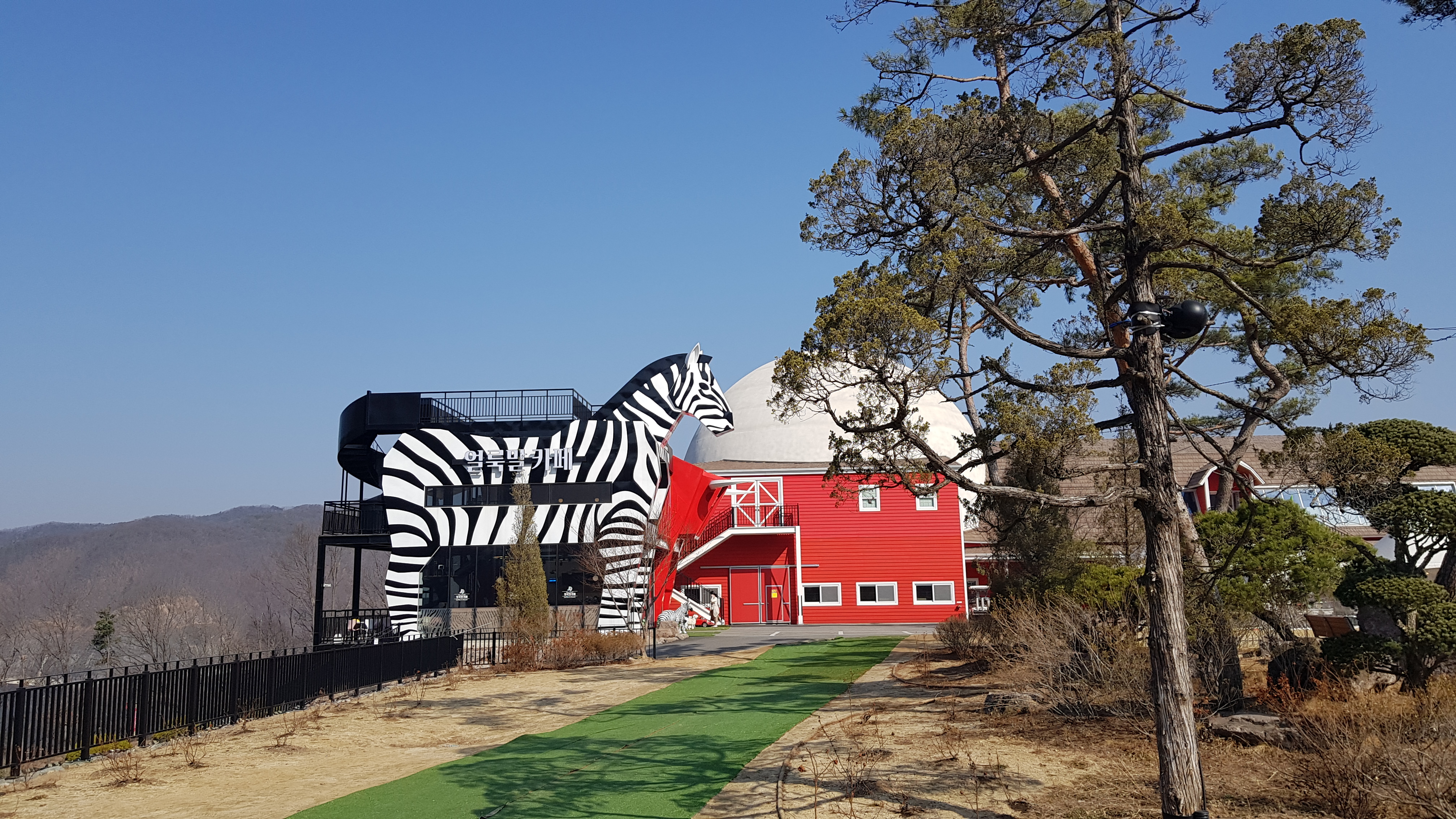 얼룩말 외관의 카페로 앞에 사진을 찍을 수 있는 포토존이 있다. 우리는 아래의 셔틀버스 승하차 장소에 있었던 투썸플레이스에 갈거라서 가보지는 않았다.