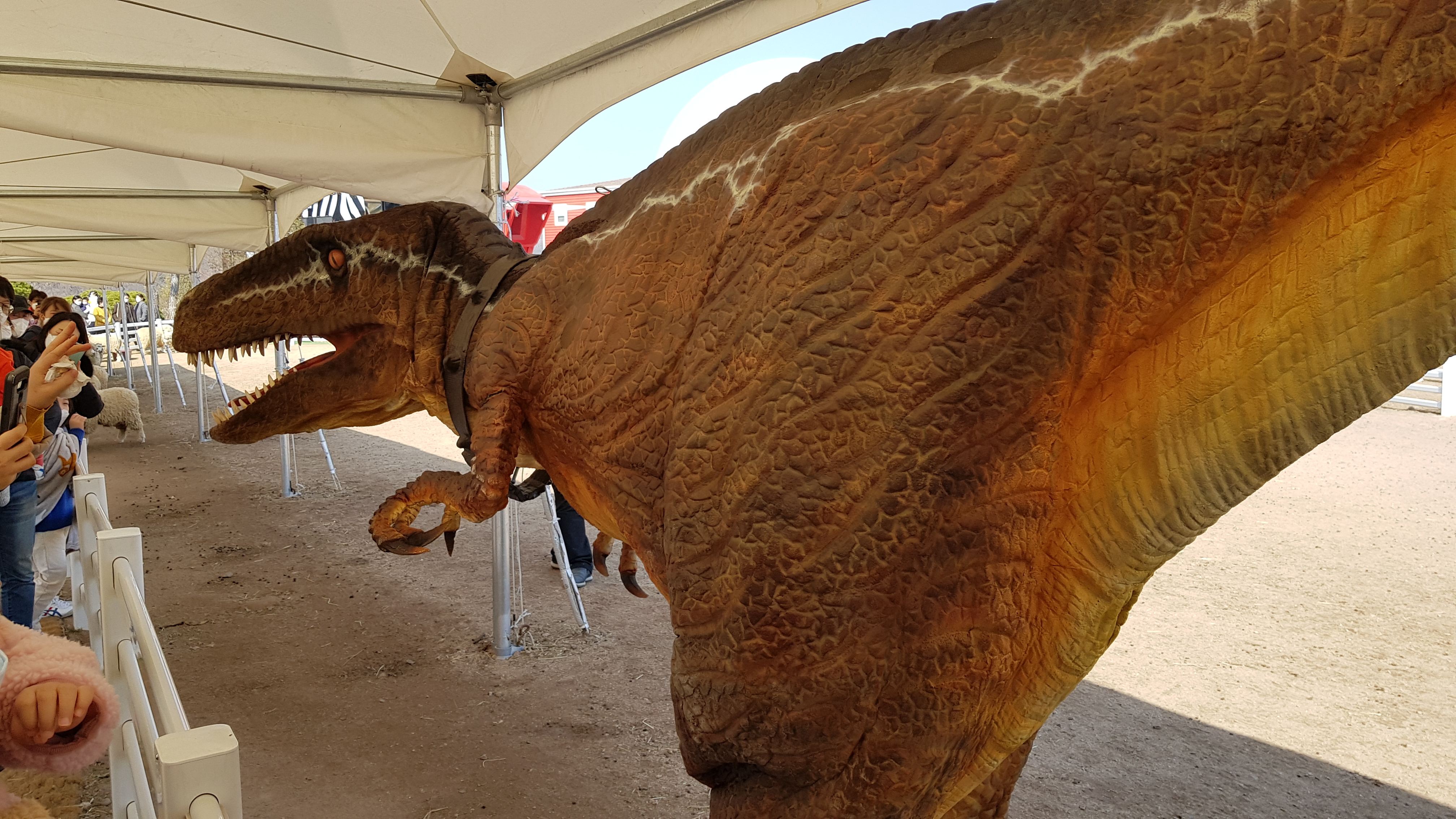 이 공룡이 더 무서워 보였지만 실제로는 친절했다. 어린아이가 있는곳에서는 만져 볼 수 있도록 잠시 기다려 준다.