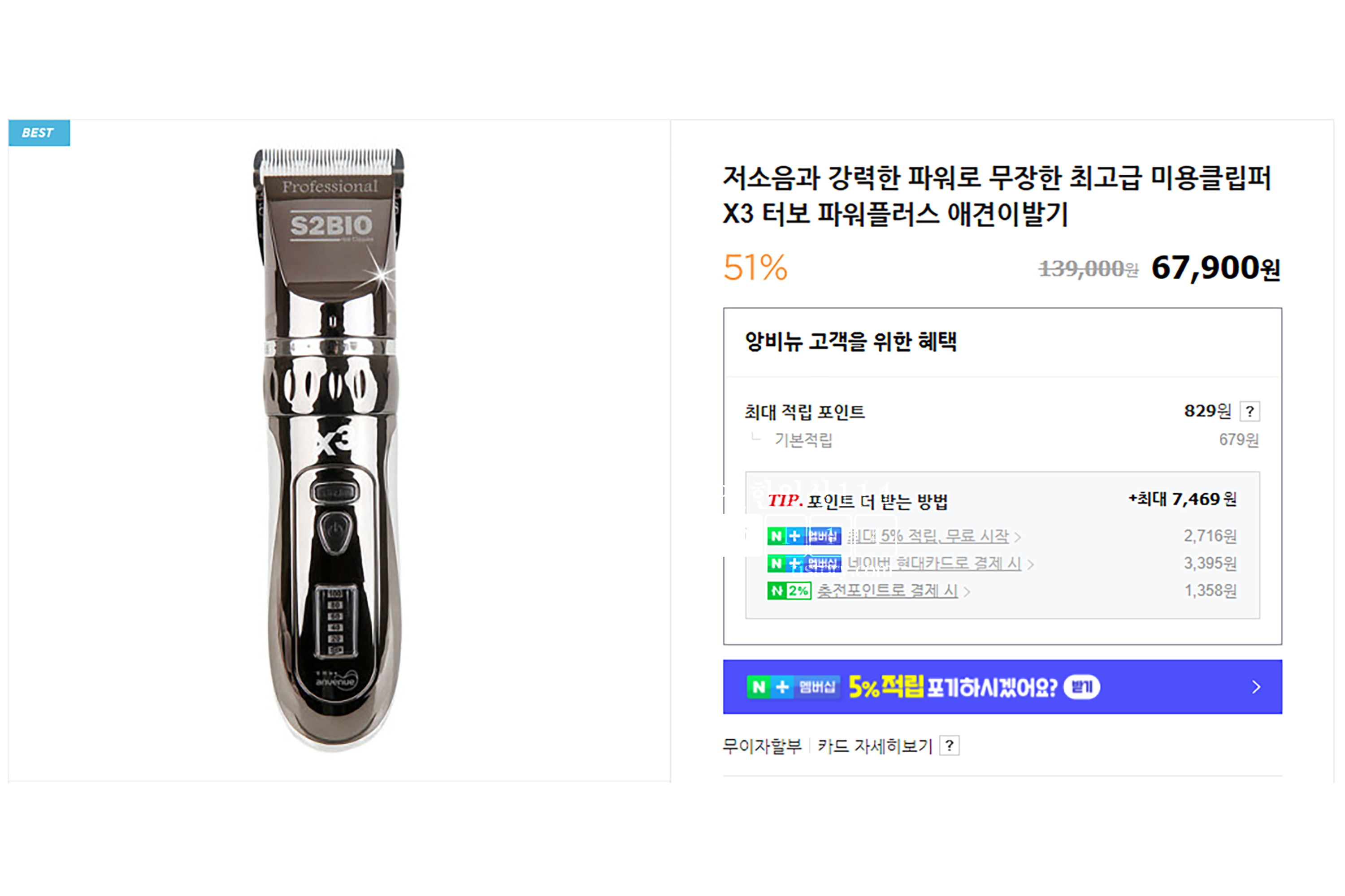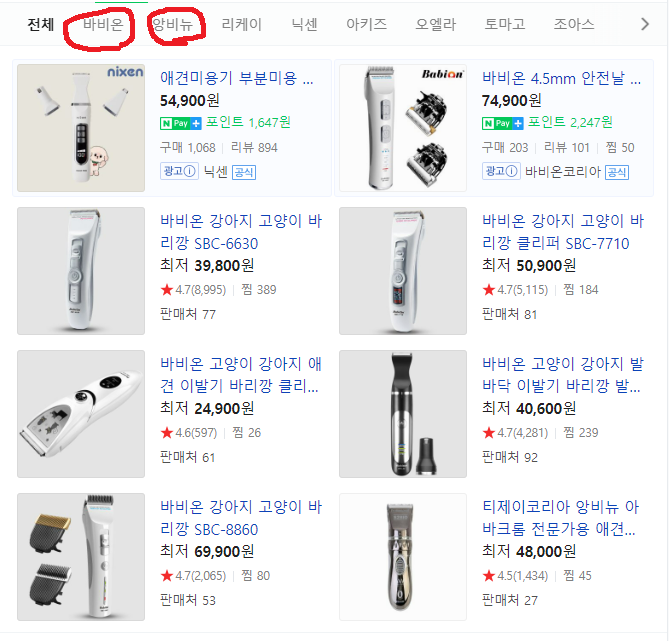 강아지 미용기를 사려고 찾아보니 여러 브랜드 제품이 있다. 가격은 저렴한건 2만원대 부터 비싼건 40만원대까지 다양하다. 초보자이고 미용기에 대해서는 잘 모르므로 많이 판매 된 제품중 평과 구매후기가 좋은 것으로 추려 나갔다.