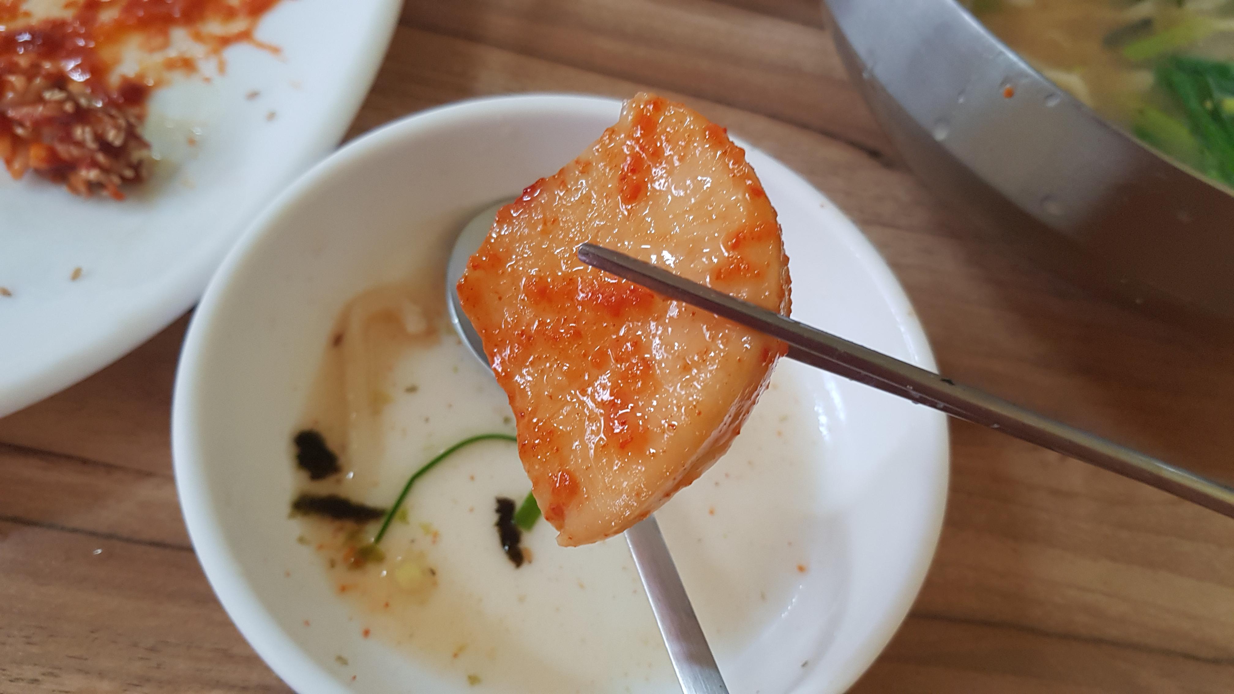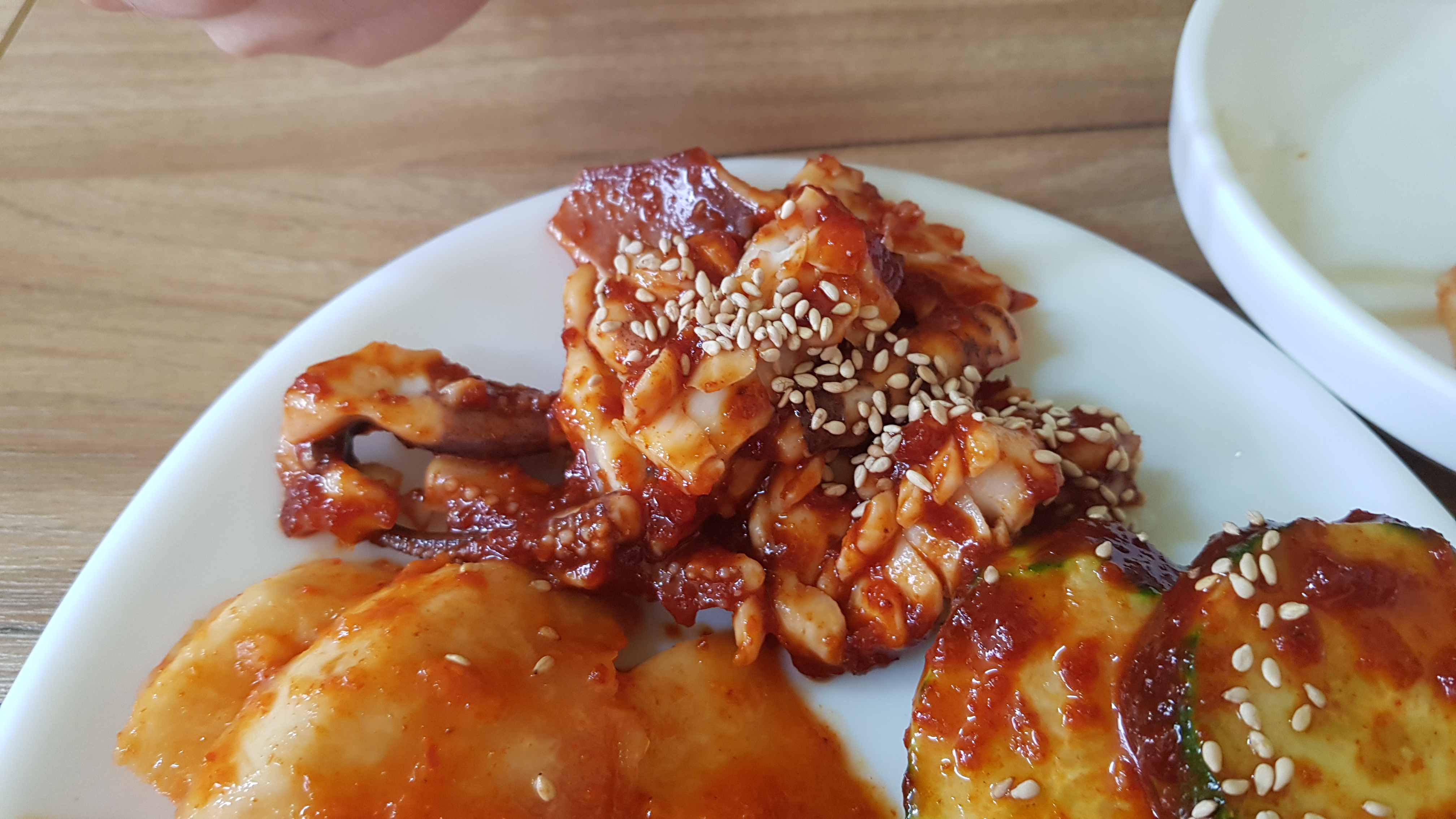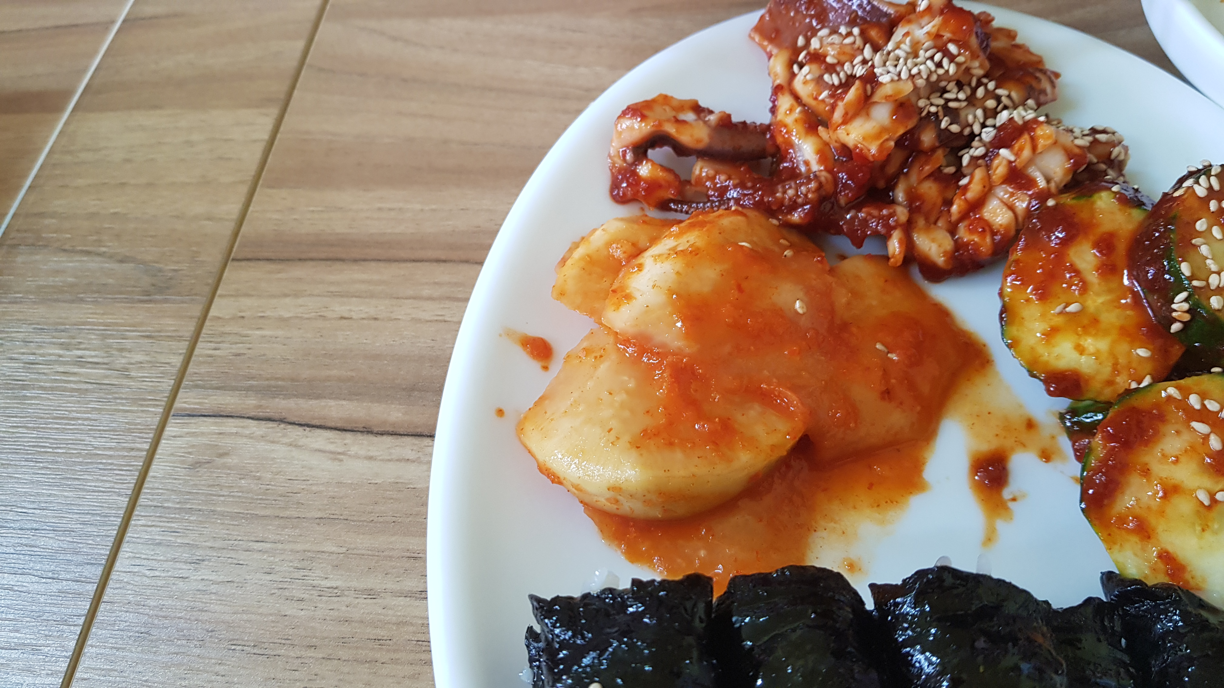 충무김밥과 함께나온 석박지가 맛있다. 칼국수와 함께 먹어도 맛있어서 그릇에 올려두고 국수 한젖갈에 석박지 한입씩 먹어간다.