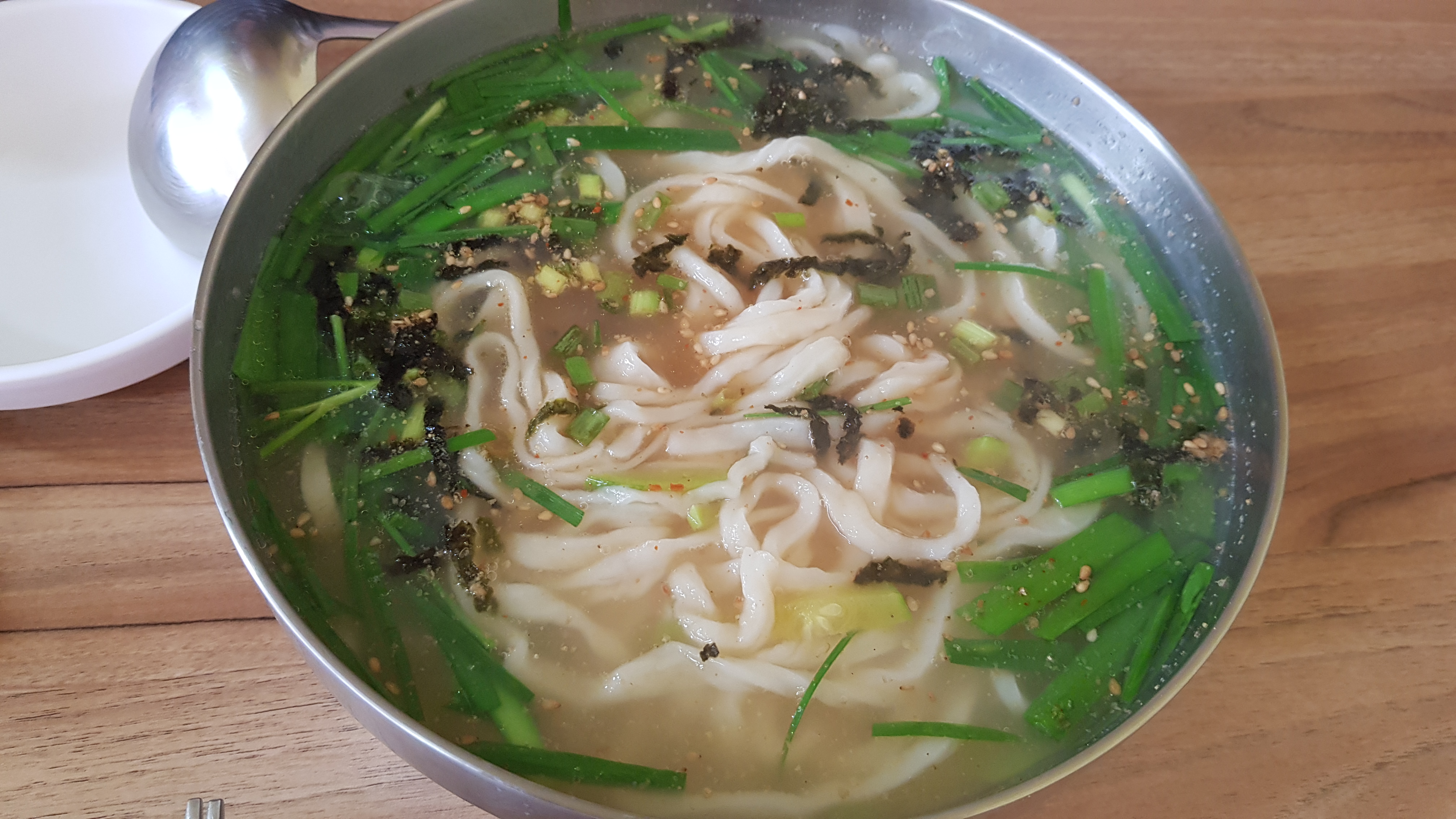 칼국수, 특별할것 없는 보통의 칼국수 같다. 국물을 한수저 떠먹어보니... 두번, 세번 연거푸 일곱여덟번 떠마시게 되고 젖가락으로 면을 먹었다. 국물을 마실 수록 어릴적 엄마따라 시장에가 먹었던 칼국수 맛이났다. 깊고 담백하게 멸치로 낸 육수에 직접 밀어낸 면을 넣어서 만든 칼국수이다. 다른  기교를 부리지 않고 매운 맛으로 자극해 강한 인상을 주지 않는 기본에 충실한 맛이다.