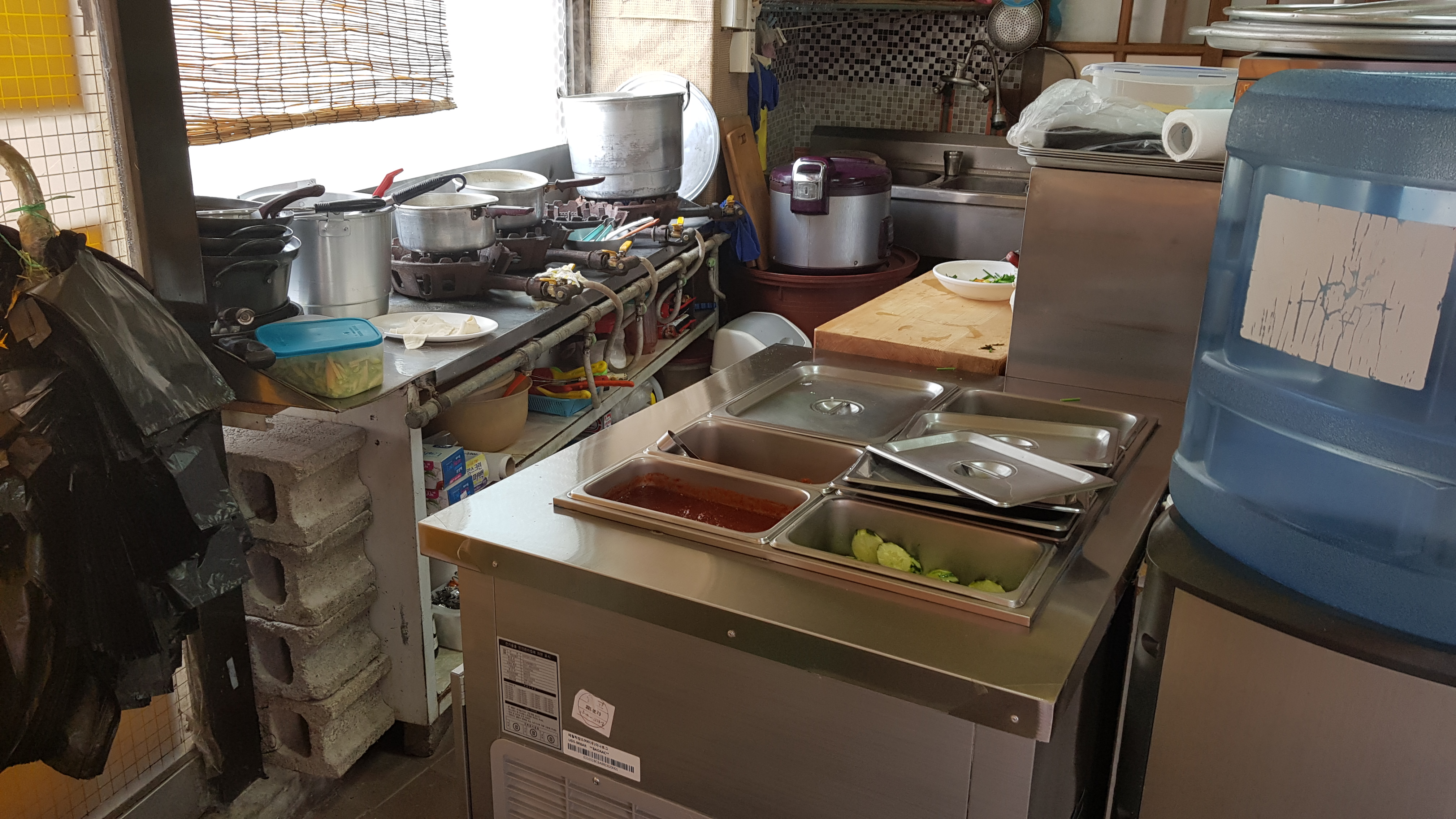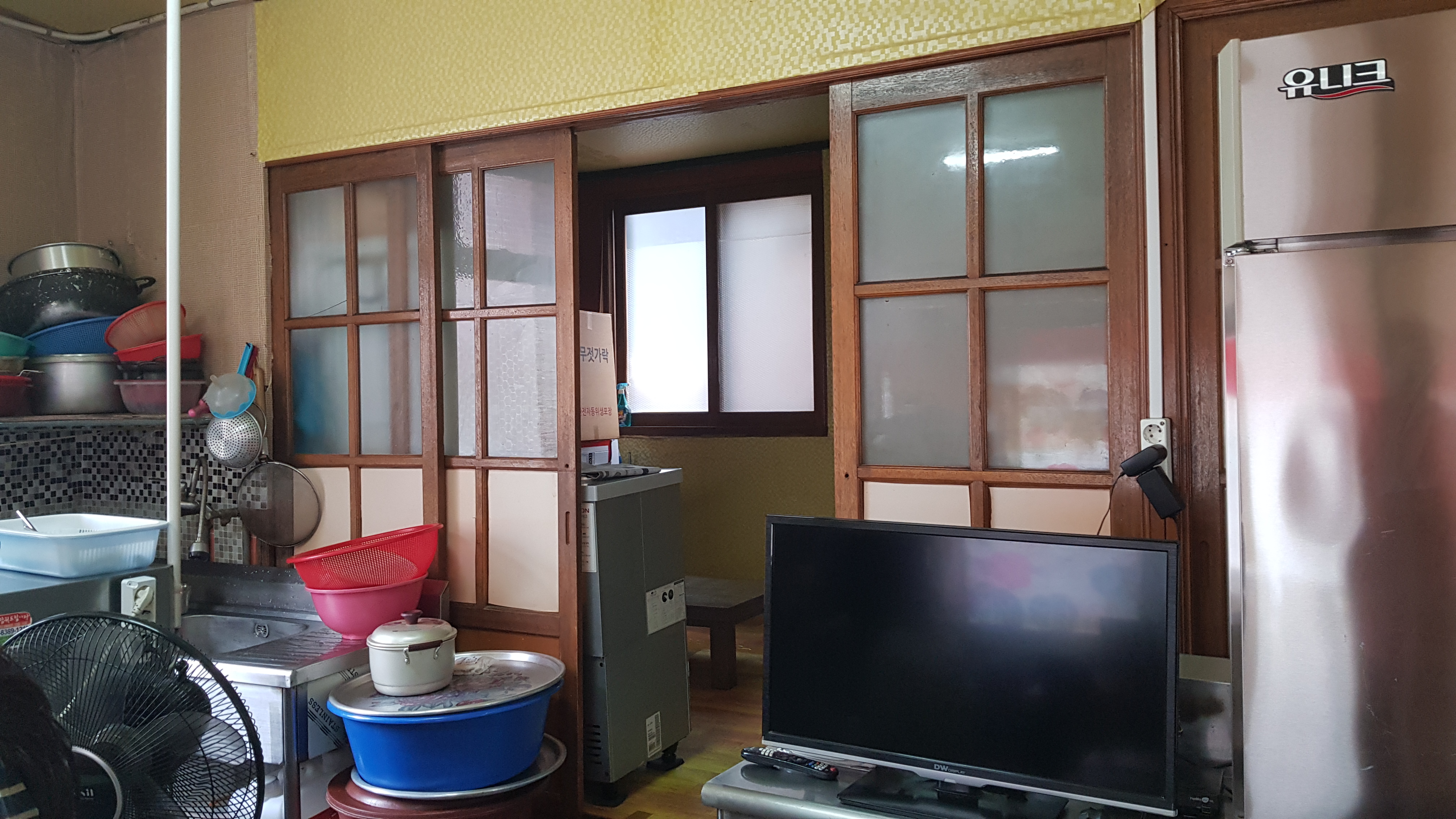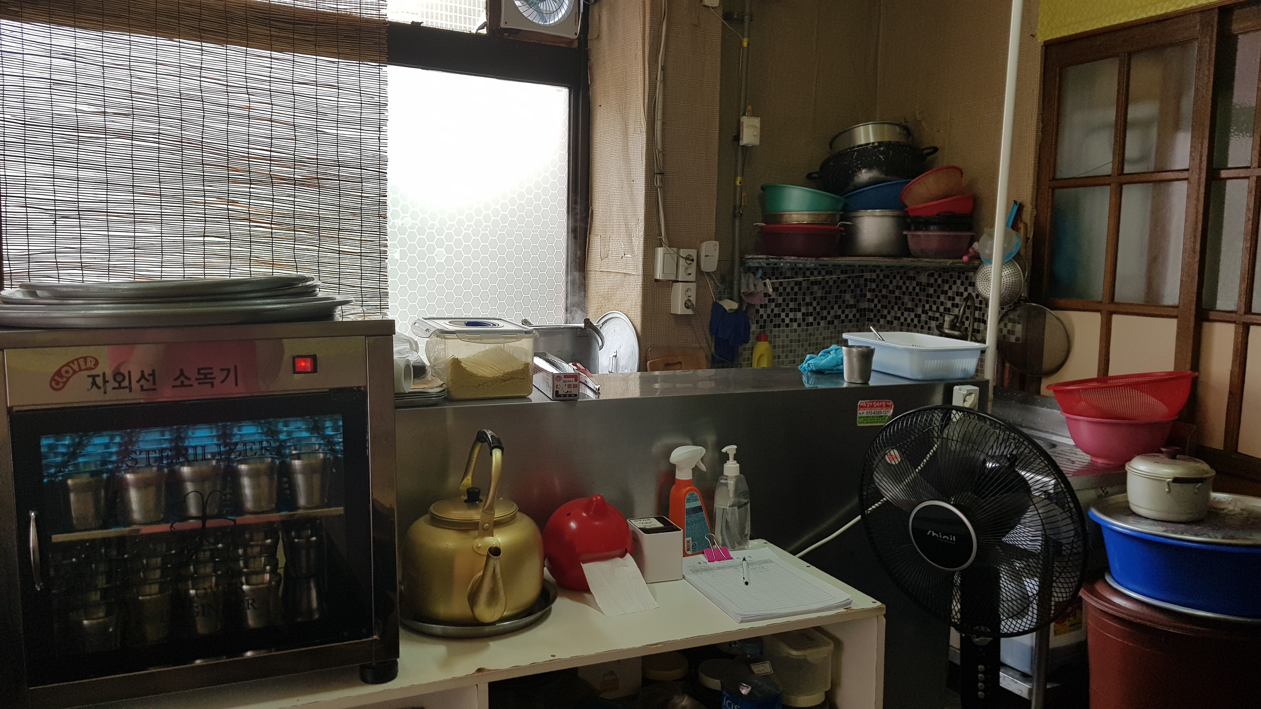 오랜 세월의 흔적이 느껴지는 식당이다. 들어서면 왼쪽으로 오픈?주방이 보이고 오른쪽으로 홀이 보인다. 홀에는 4인 테이블 4개가 있다. 그리고 안쪽으로 좌식으로 앉을 수 있는 테이블도 마련되어있다.