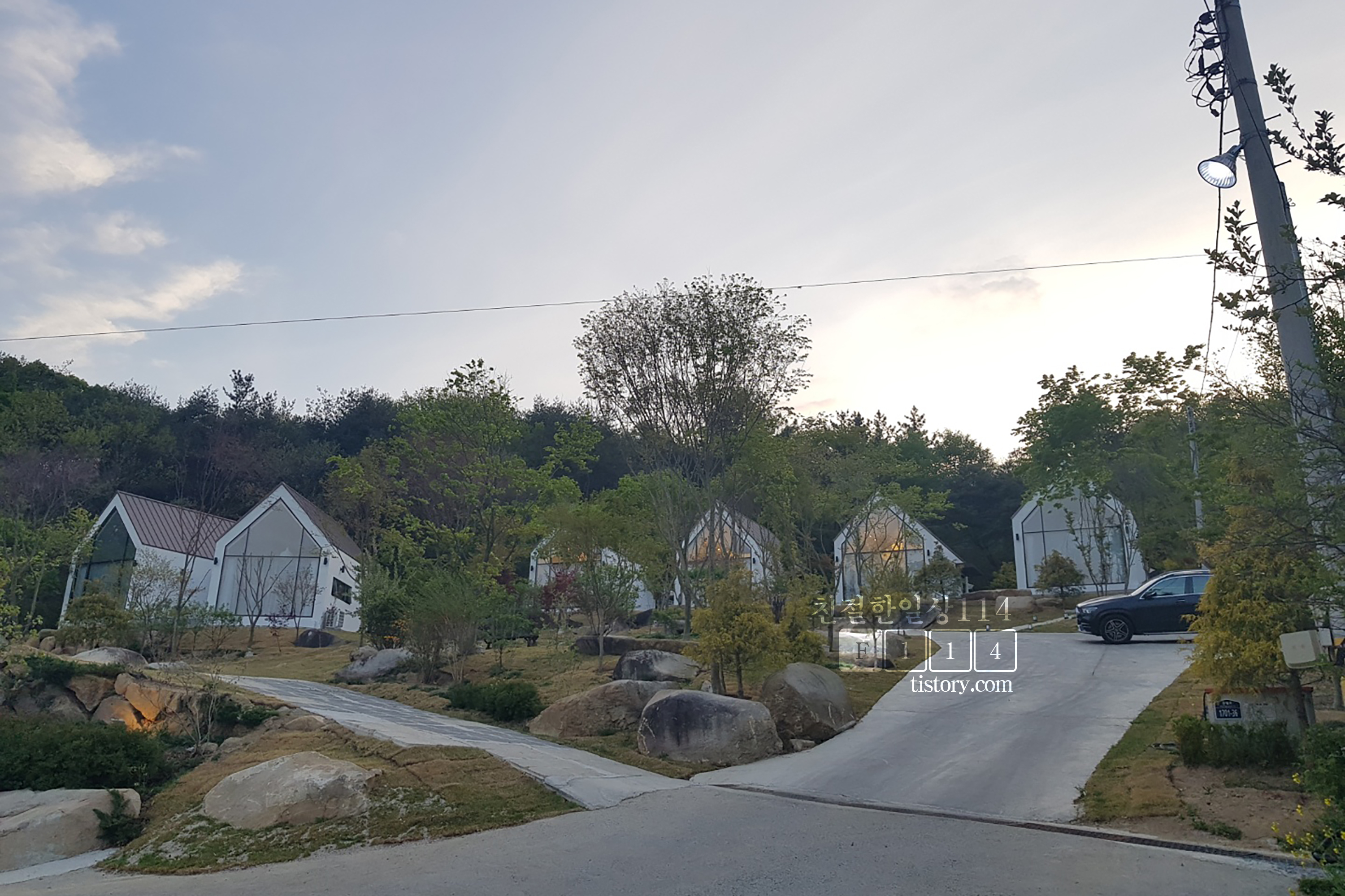 주차를 하고 토곡정원 식당으로 가는 길, 산 위쪽으로 올려다보니 집모양의 건물이 여러채 보인다. 알아보니 '토곡스테이