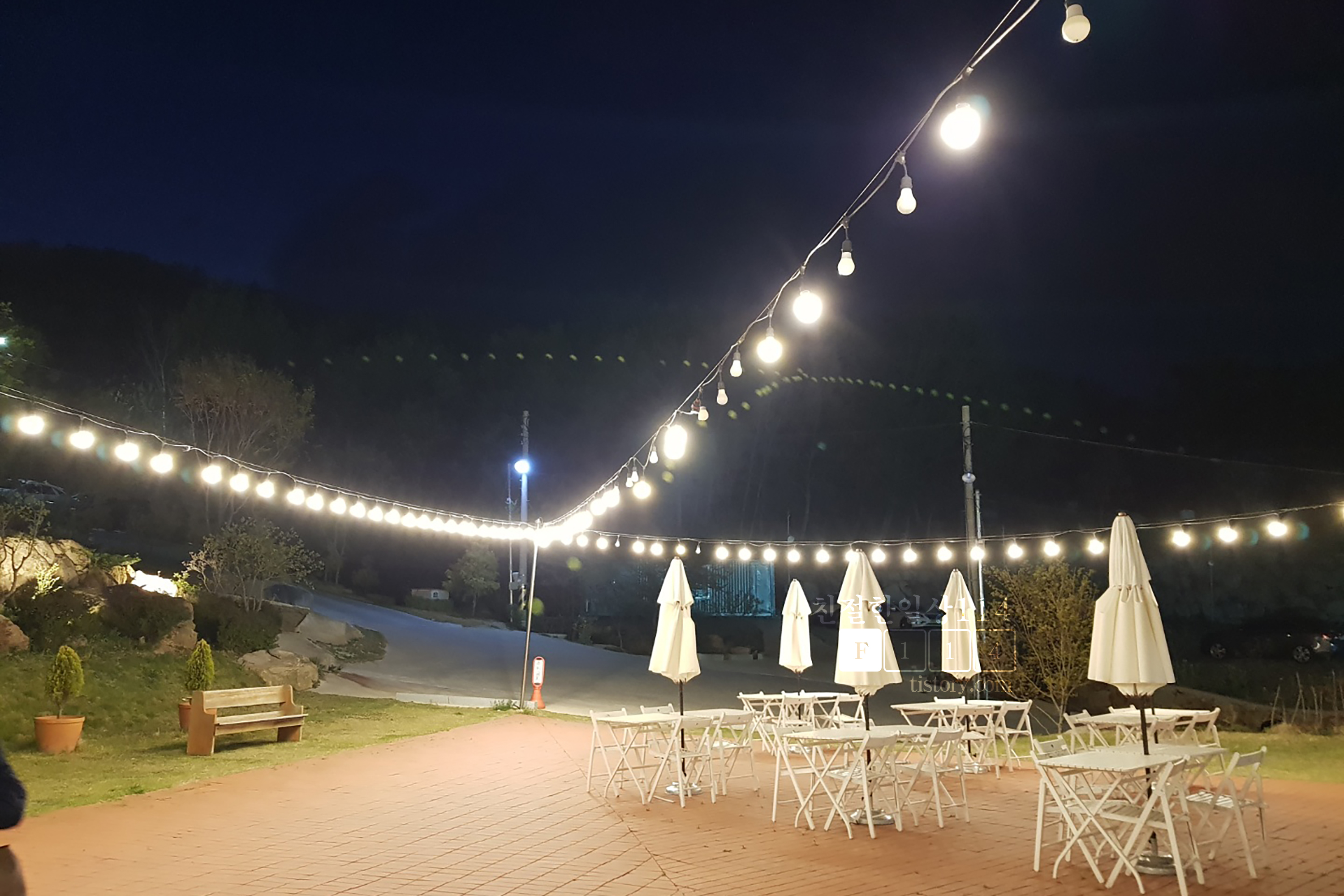 토곡정원에 저녁을 먹으러 간날은 4월 중순이었지만 해가 넘어갈 무렵이 되니 다소 쌀쌀했다. 쌀쌀한 날씨 탓에 야외 테이블의 파라솔은 펼쳐져 있지 않았다. 날씨가 따뜻해 지면 해질 무렵 조명아래서 시원한 공기 맡으며 식사하면 더 없이 좋을 듯 싶다.