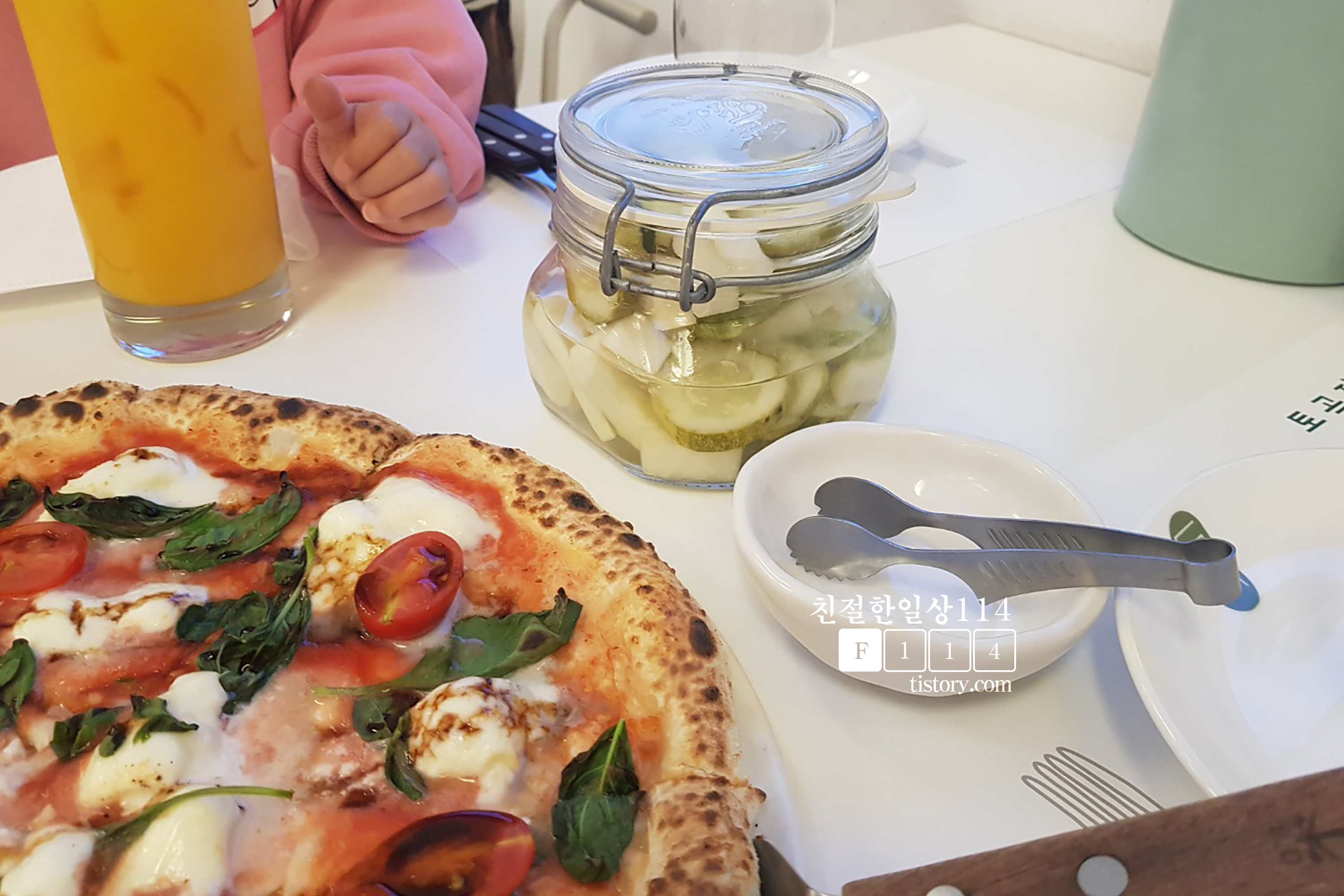 피클은 덜어먹을 수 있도록 피클통을 집게와 함께 내온다. 피클이 많이 시지 않고 상당히 맛있다. 피클 맛집이다.