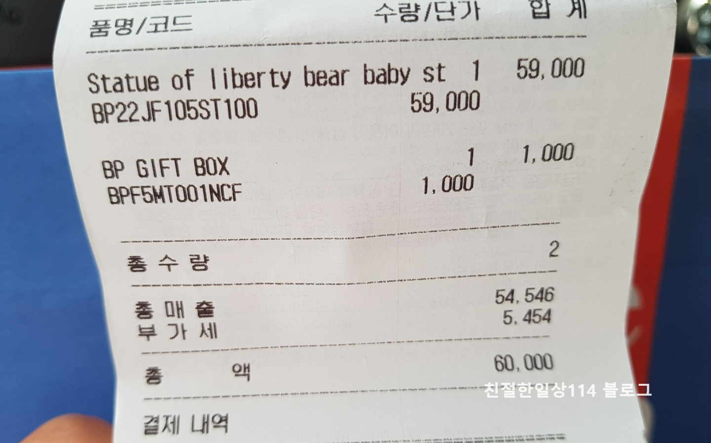 선물로 골랐던 옷은 사진을 찍기전 바로 포장을 해버렸기에 인터넷으로 찾아보았다. 이참에 인터넷 가격과 매장가격을 비교해 보았더니 같았다. 매장 구매가격 59,000원 / 인터넷가격 59,000 원. 배송비가 있다면 인터넷 가격이 더 비싸겠지만 제휴할인 카드 적용하면 비슷하겠다.