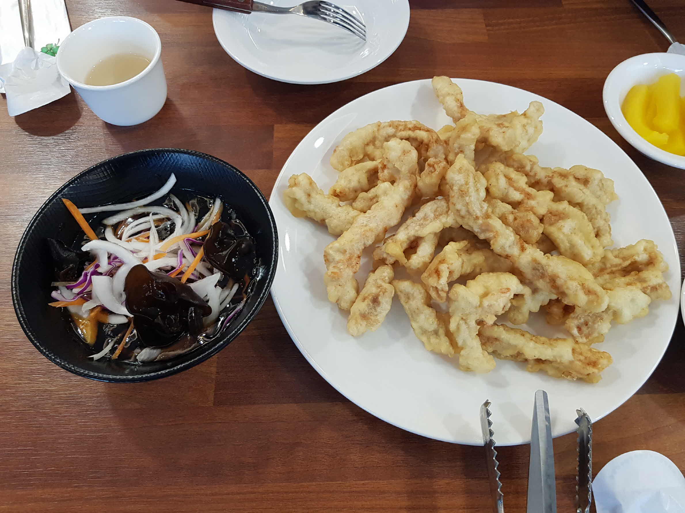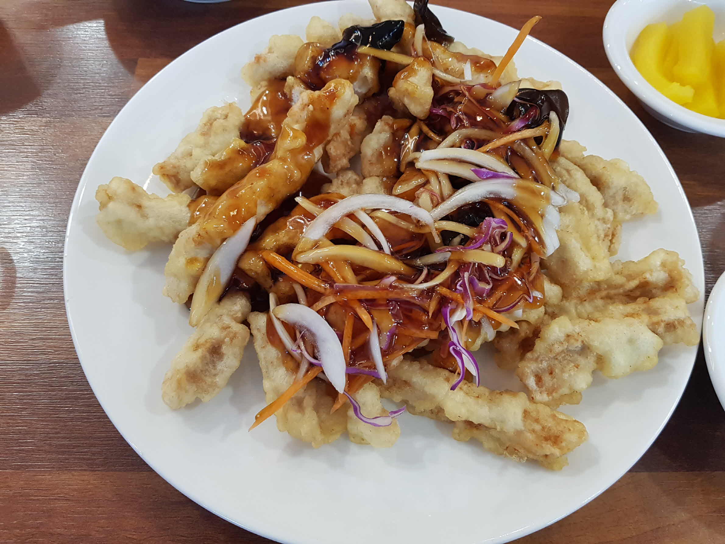 단무지와 초무침, 짜사이 이렇게 3가지 기본 찬이 나오고 조금 있으니 탕수육이 먼저 나온다.