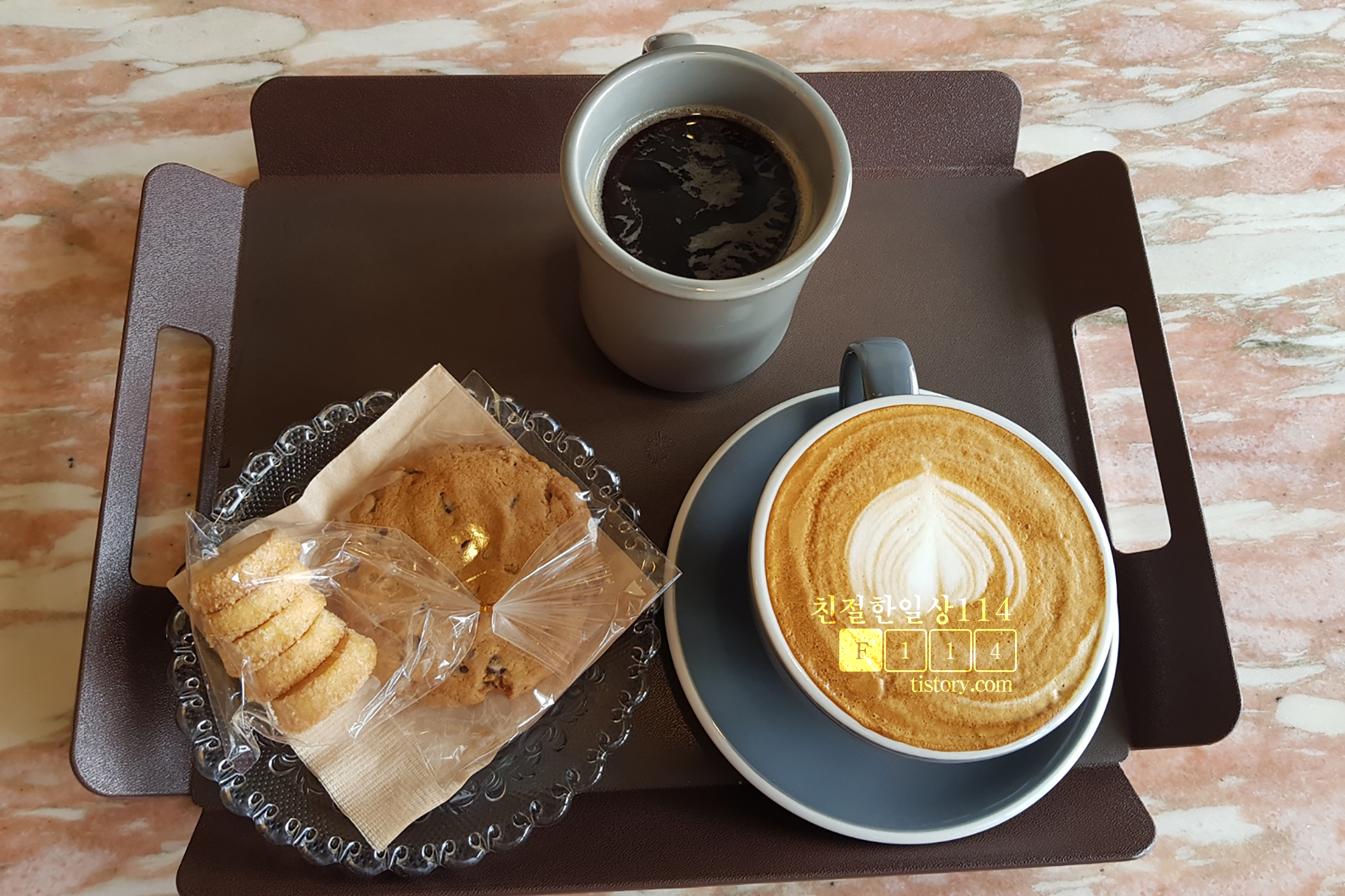 바닐라라떼와 아메리카노 그리고 쿠키 2종류를 주문한다.