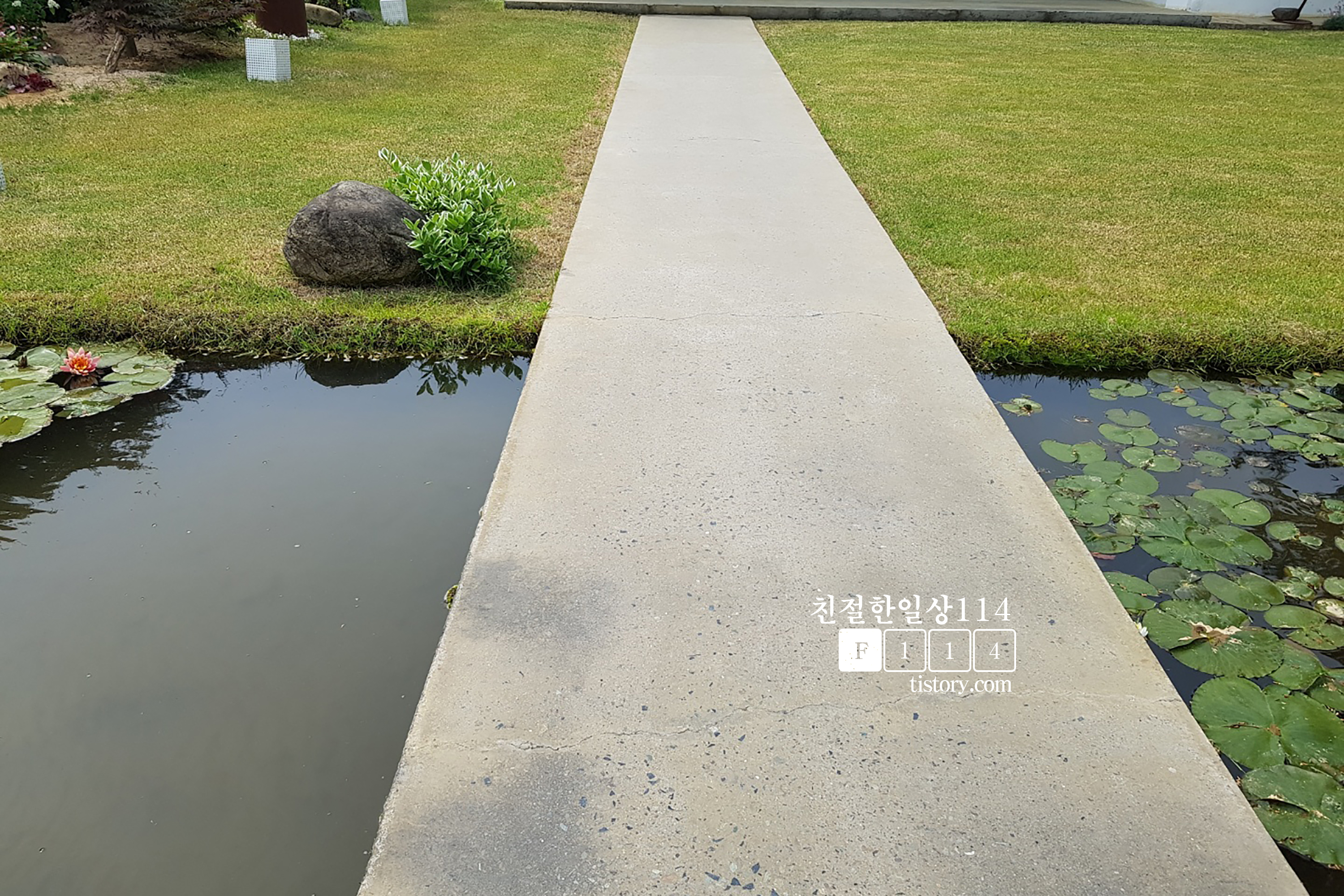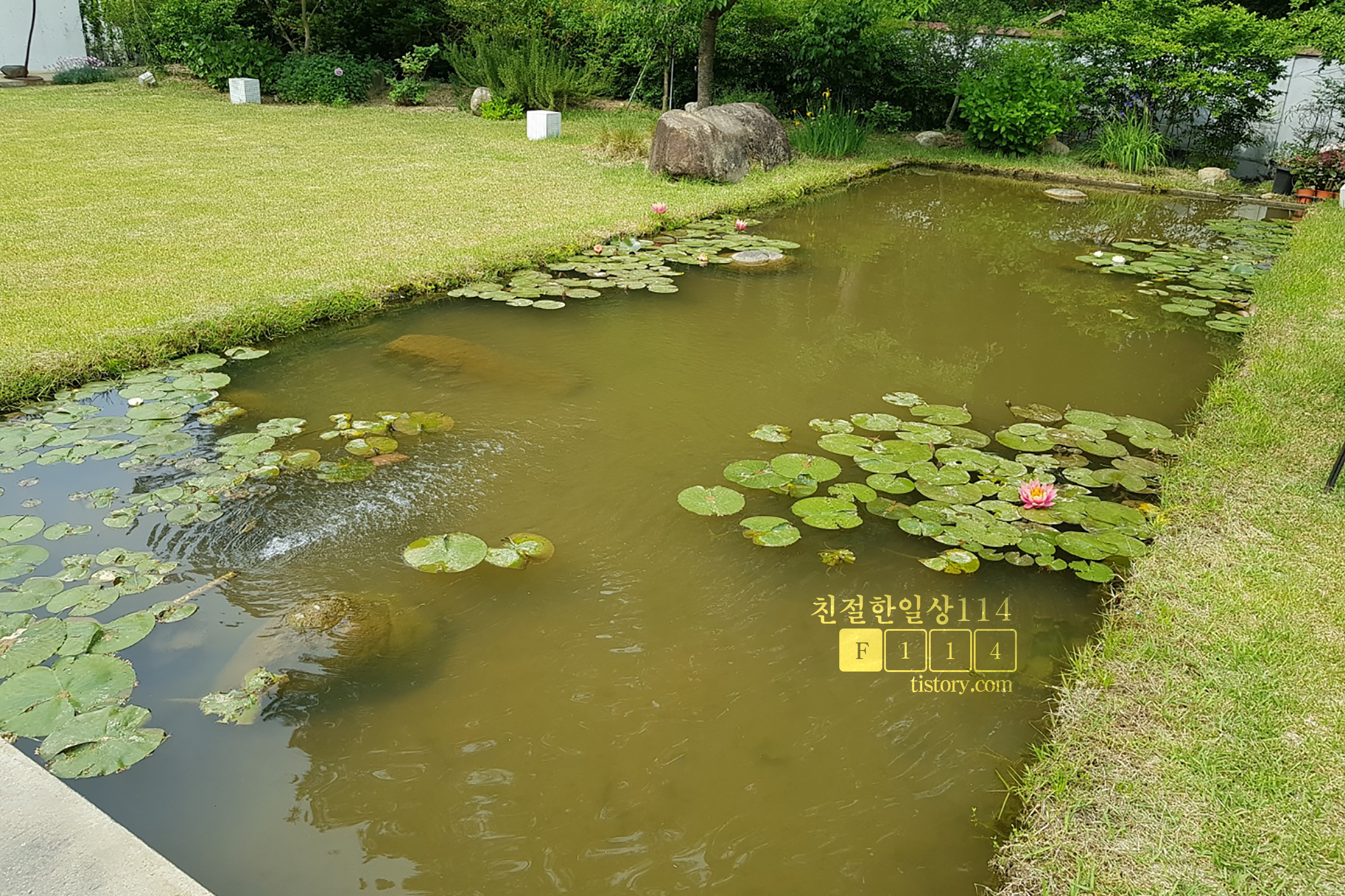 야외정원 가운데는 인공연못이 있고 연못에는 연꽃이 꽃을 피우고 있었다.