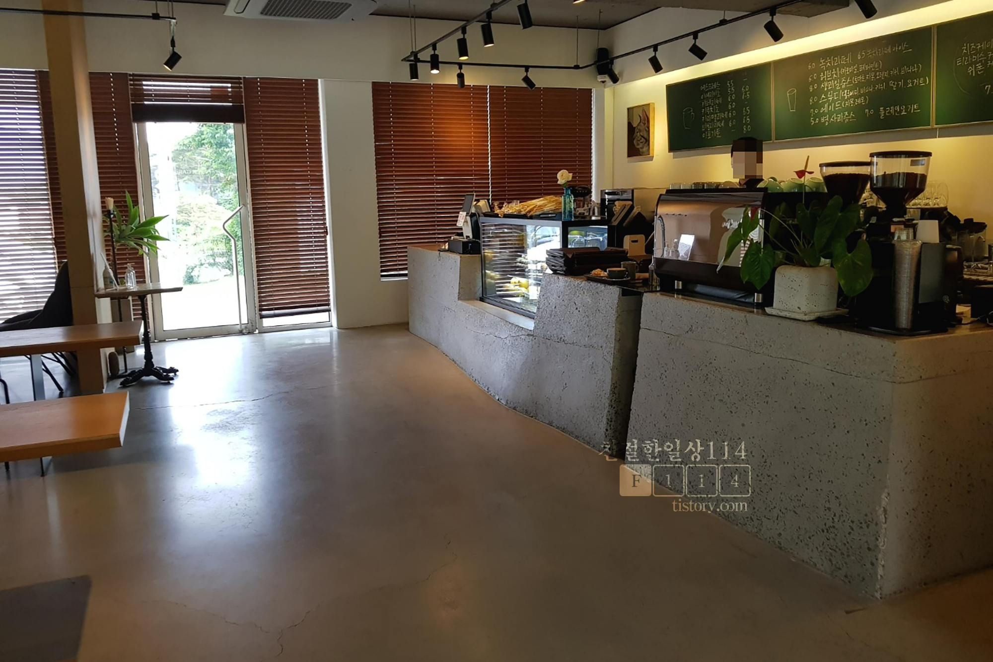 건물로 들어가면 건물 외관에 비해 넓은 실내 공간에 살짝 놀란다. 그리고 입구 맞은편으로 탁트인 야외 공간이 보인다. 외관에 비해 넓은 내부도 기대 이상이었지만 야외공간도 있어 한번 더 놀란다. 먼저 카운터에서 주문부터 하고 둘러보기로 한다.