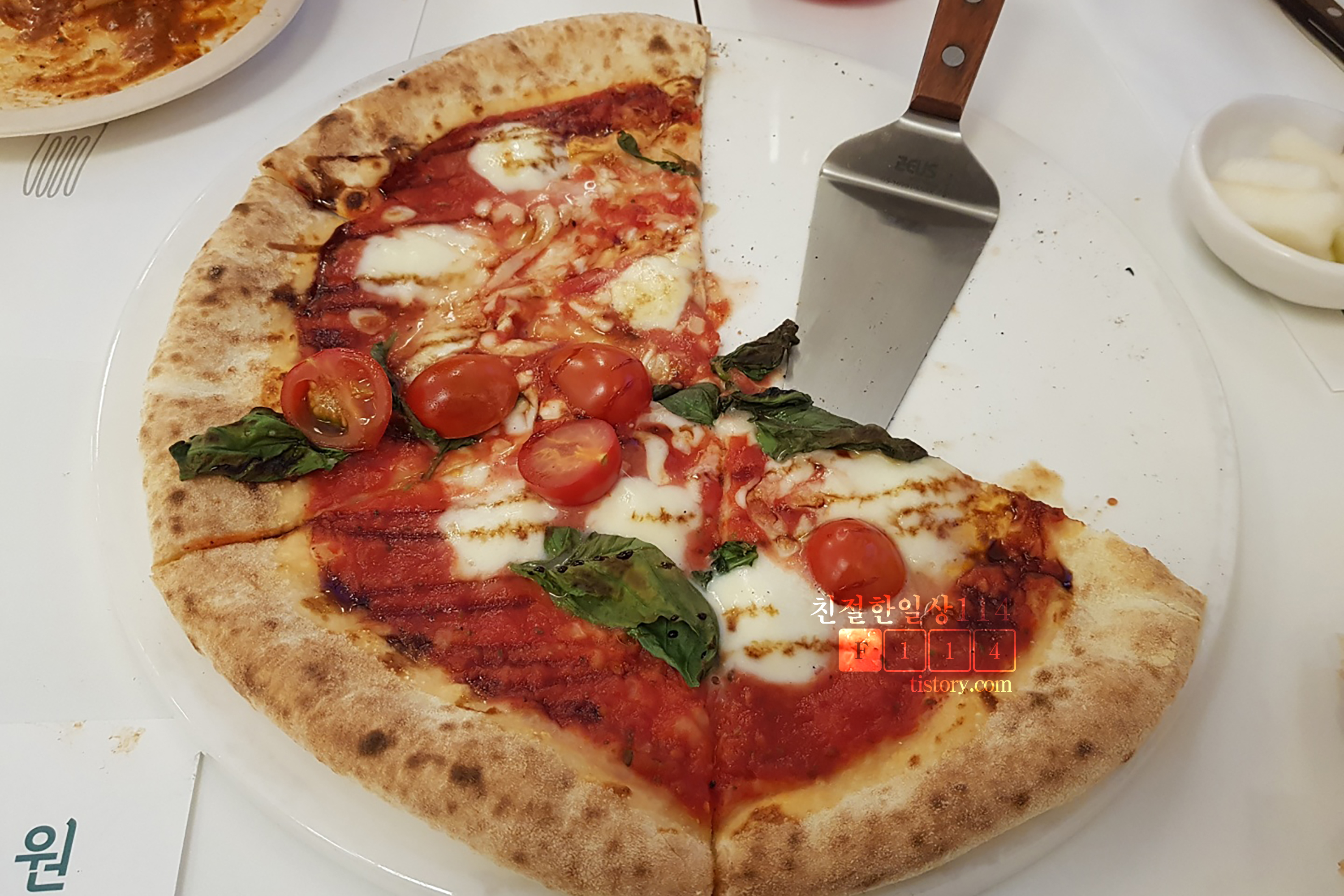 카프레제는 양이 적다. 접시에 한번씩 덜어서 먹으니 딱 떨어진다. 그리고 다 먹었을 때쯤 마르게리따 피자가 나온다.