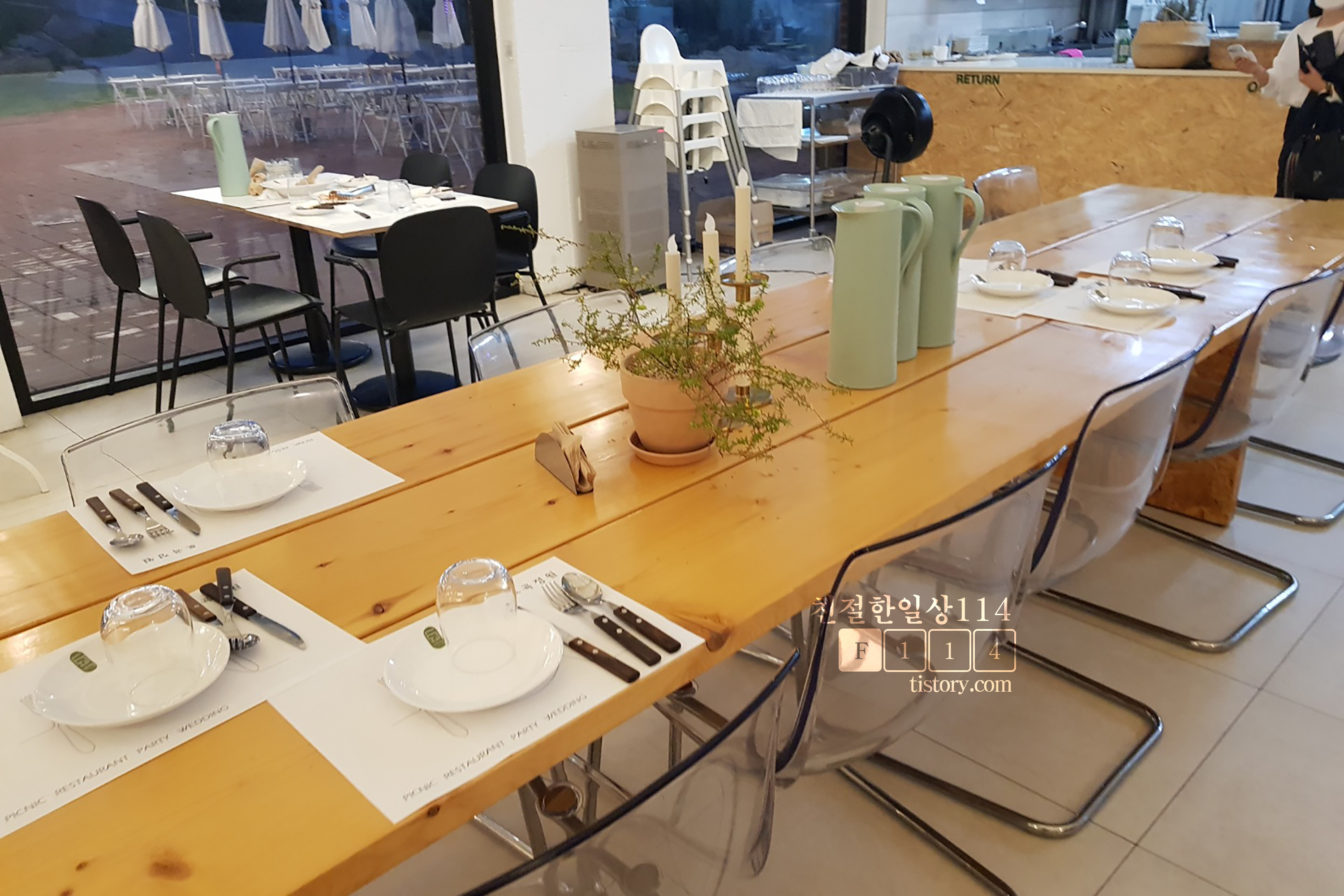 어린이가 있는 경우 어린이 의자와 어린이용 식사 사용여부를 직원분이 물어본다. 지난번에는 어른것을 썼었는데 이번에는 어린이용 식기를 사용해본다. 접시는 종이로된 일회용으로 나오며 포크와 숟가락, 컵은 이케아 제품인듯 하다.
