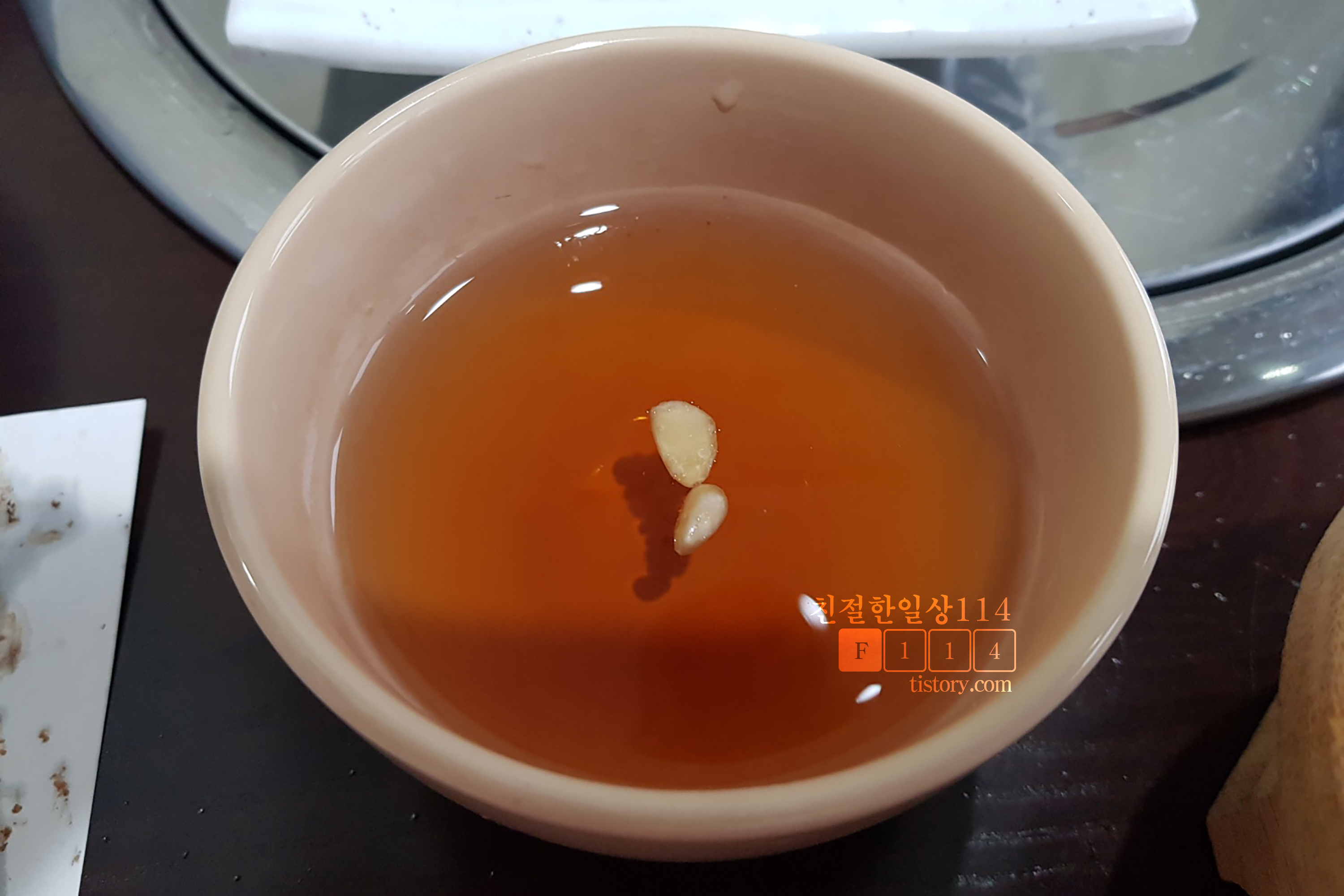 다 먹어 갈때쯤 비빔냉면을 하나 추가로 주문해서 먹고 있으니 후식으로 오렌지와 수정과를 내온다.