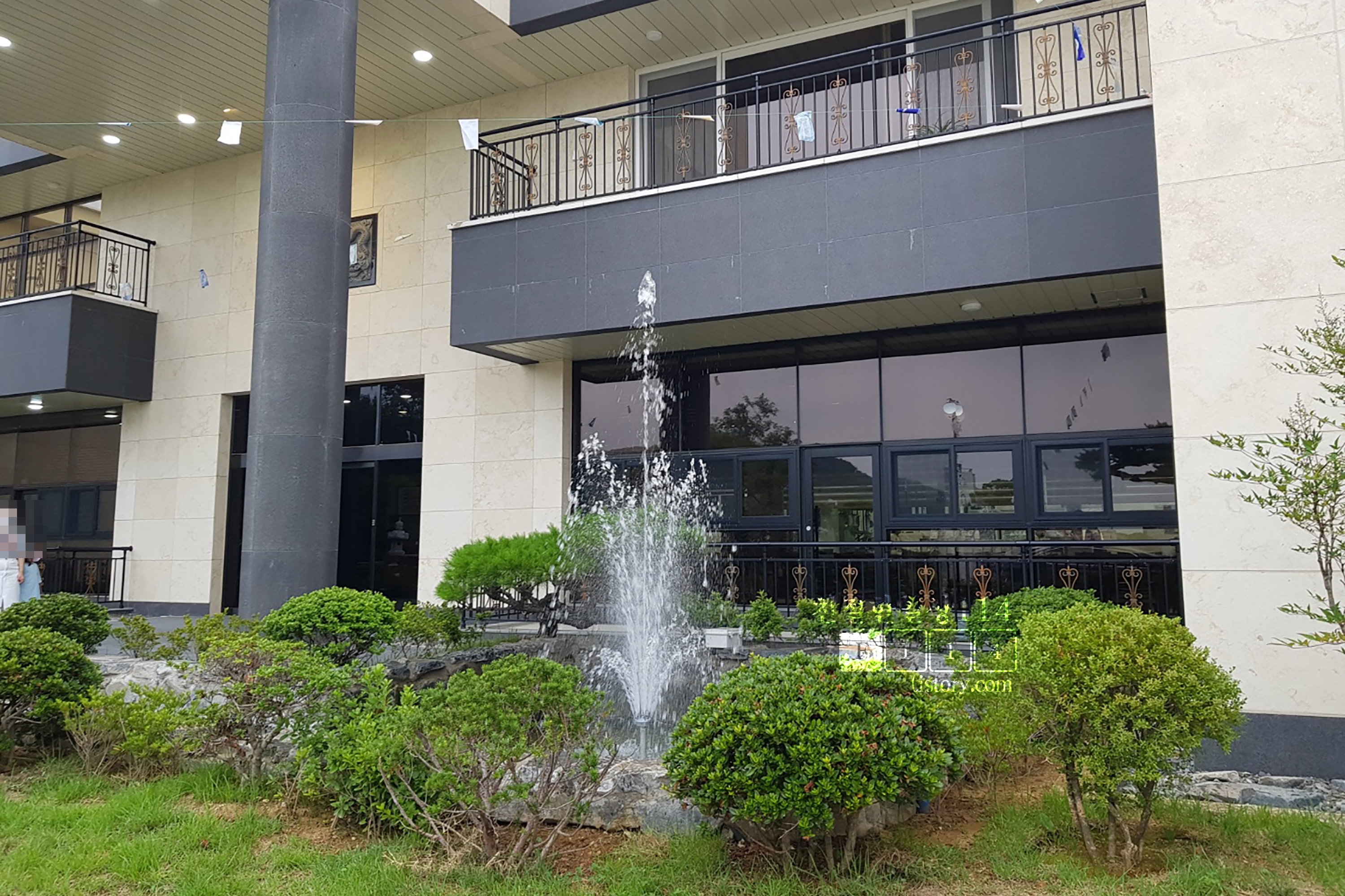 2층 건물로 되어있고 건물 앞에는 소나무와 분수로 조경이 잘 되어 있다.