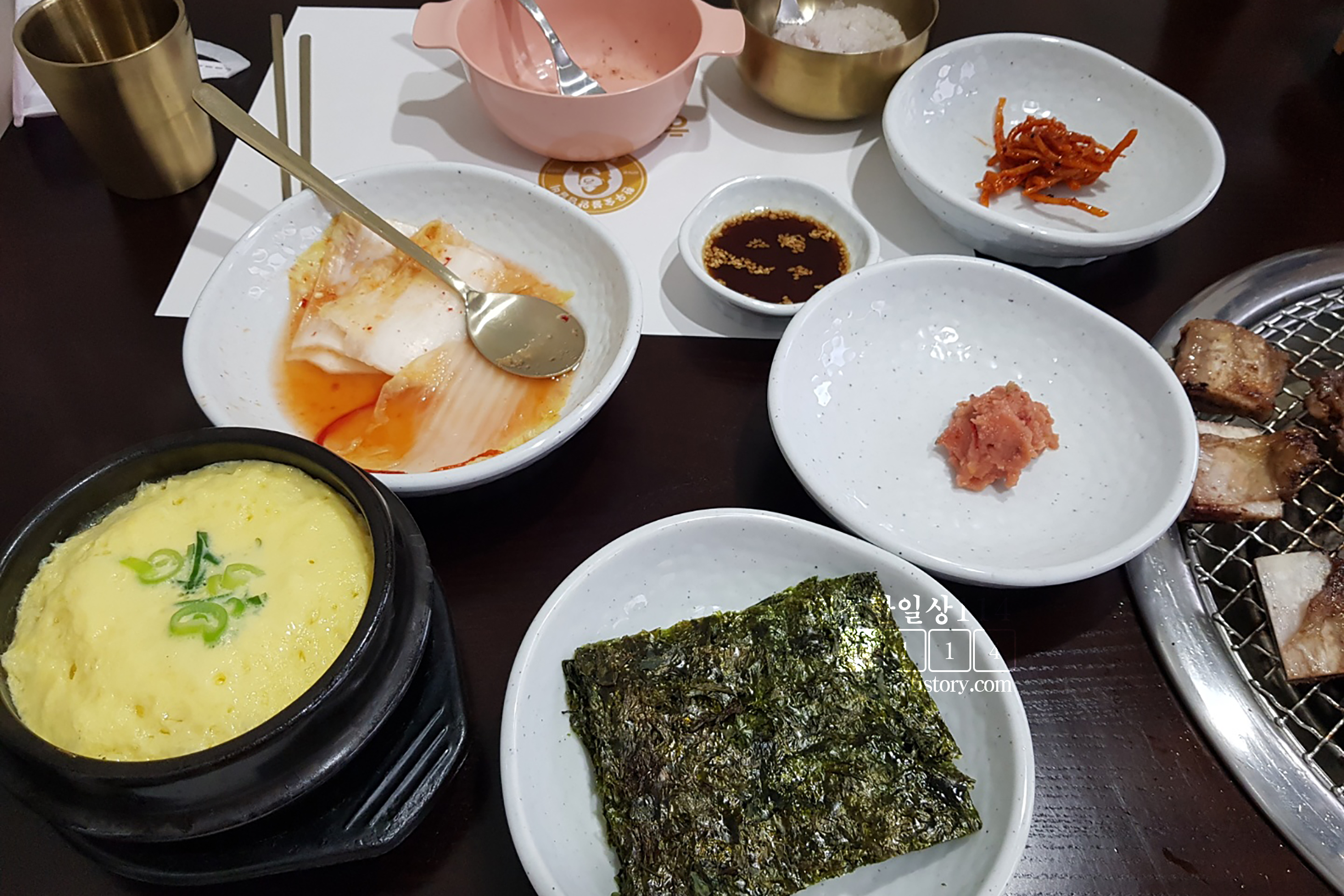 된장찌개와 같이 나온 봉긋한 계란찜과 명란젓, 김 등