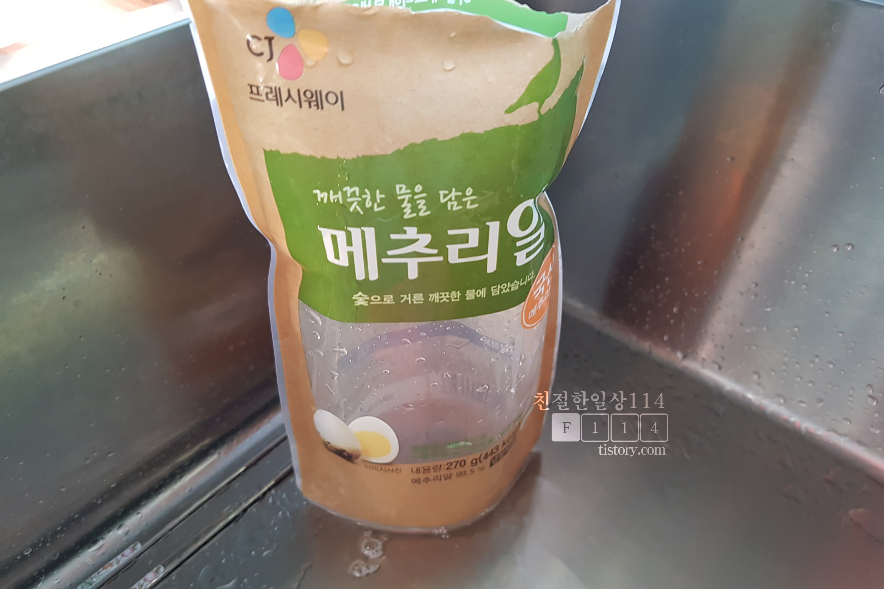 메추리알은 예전에 그냥사서 삶아서 해보니 시간이 올래걸려서 깐메추리알로 구매했다. 큰포장과 작은 포장이 있는데 작은 포장에는 270g의 메추리알이 들어있다. 한번 해먹기 적당한 양이다.
