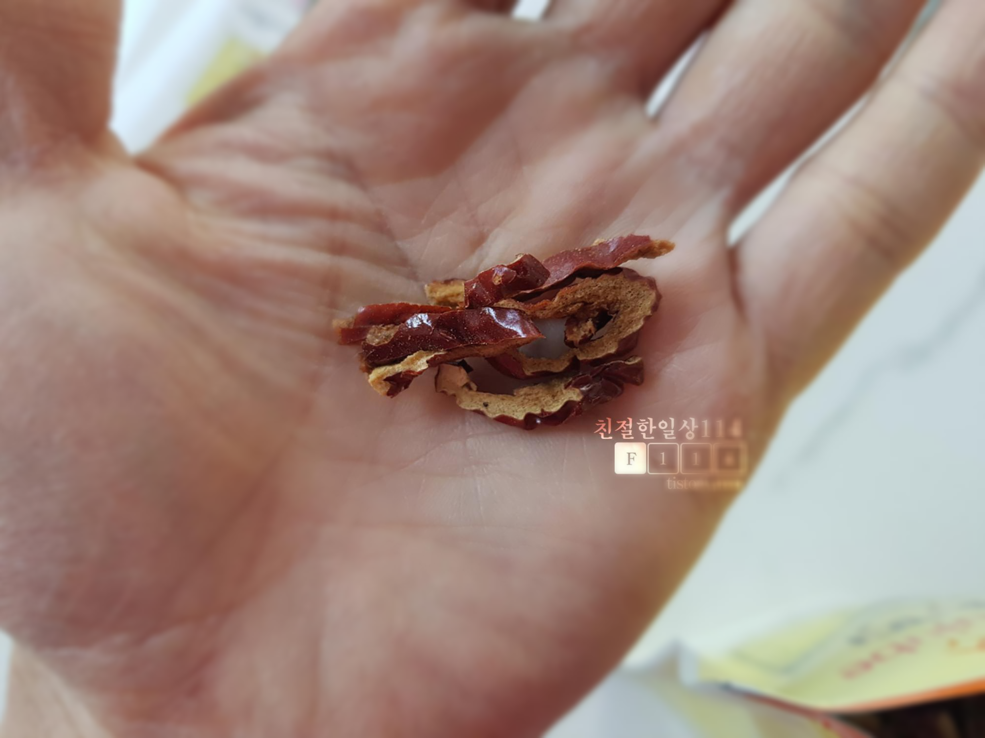 안을 들여다보면 이렇게 잘라서 말린 대추가 들어있다.