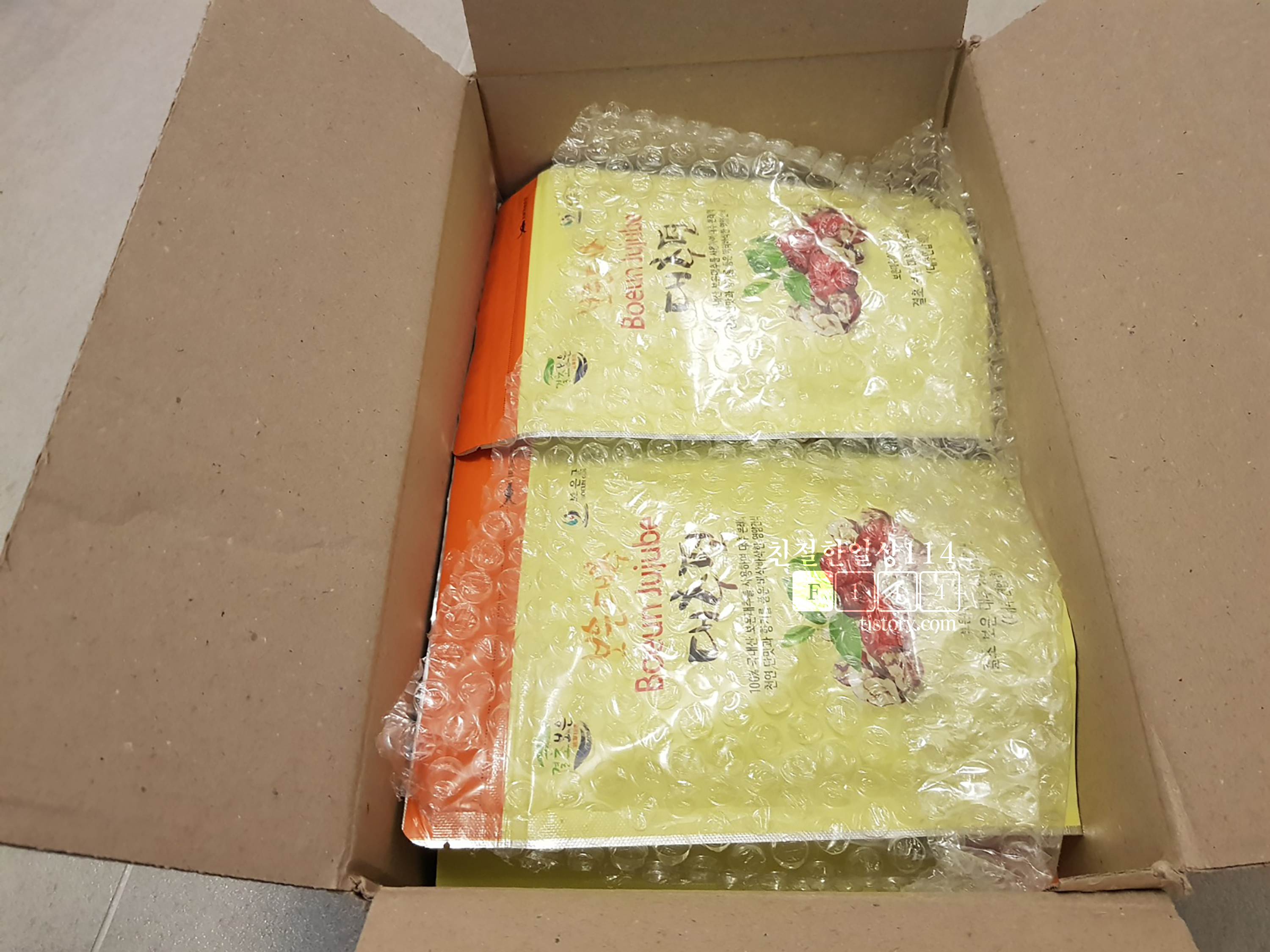 어머니께서 보내주신 보은대추 대추편은 한봉에 80g 이며 5봉이 한상자에 들어있었다. 모게도 가벼웠고 상자 크기도 크지 않았다.