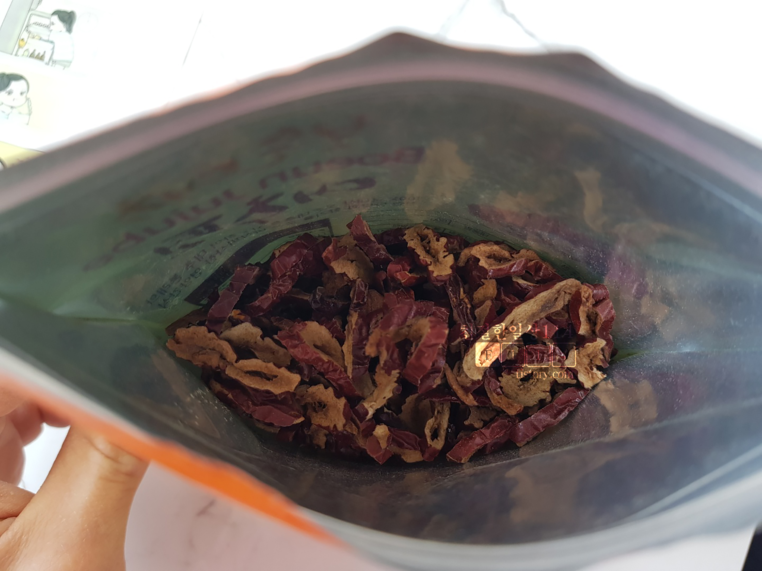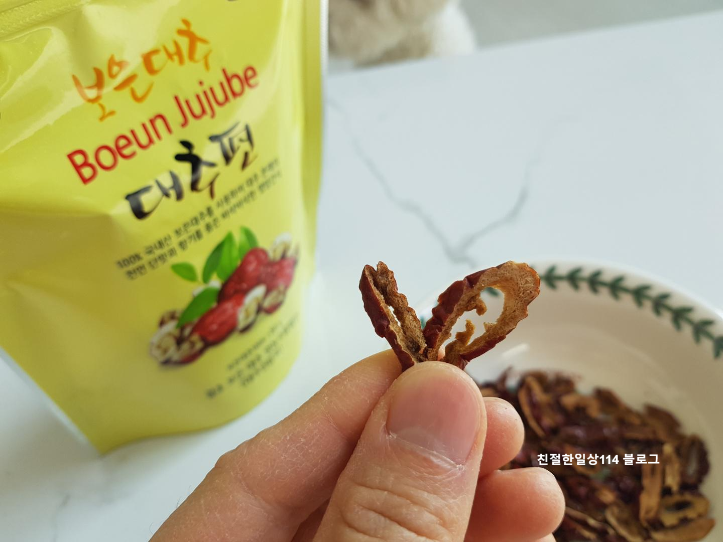 안을 들여다보면 이렇게 잘라서 말린 대추가 들어있다.