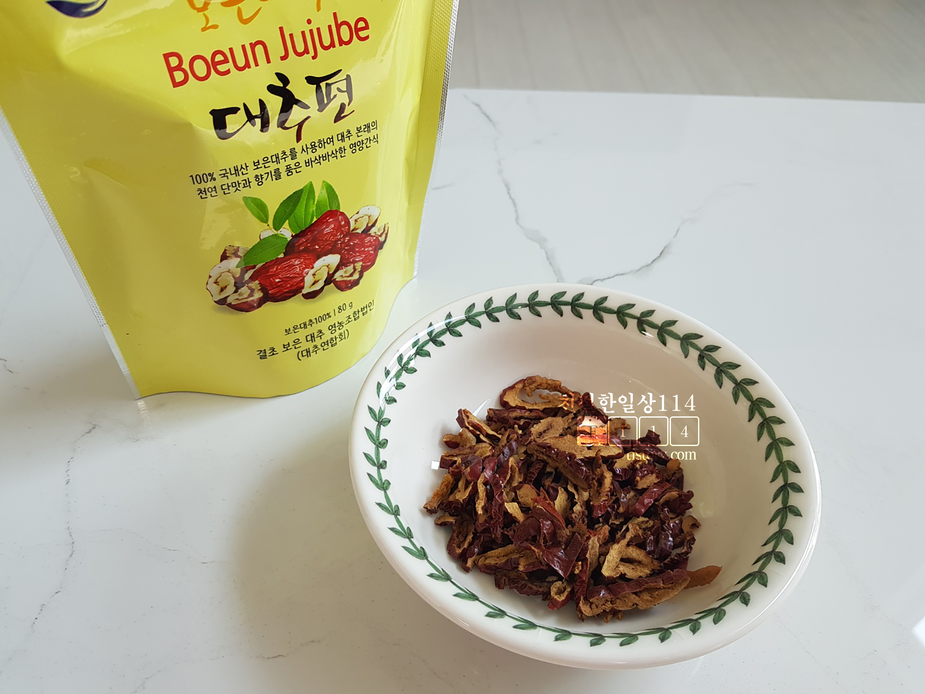 영양가 많은 대추를 간편하고 맛있게 먹을 수 있어서 매우 좋다. 설탕과 같은 다른 첨가물을 넣지 않아 아이에게 영양간식으로 추천할만 한다.