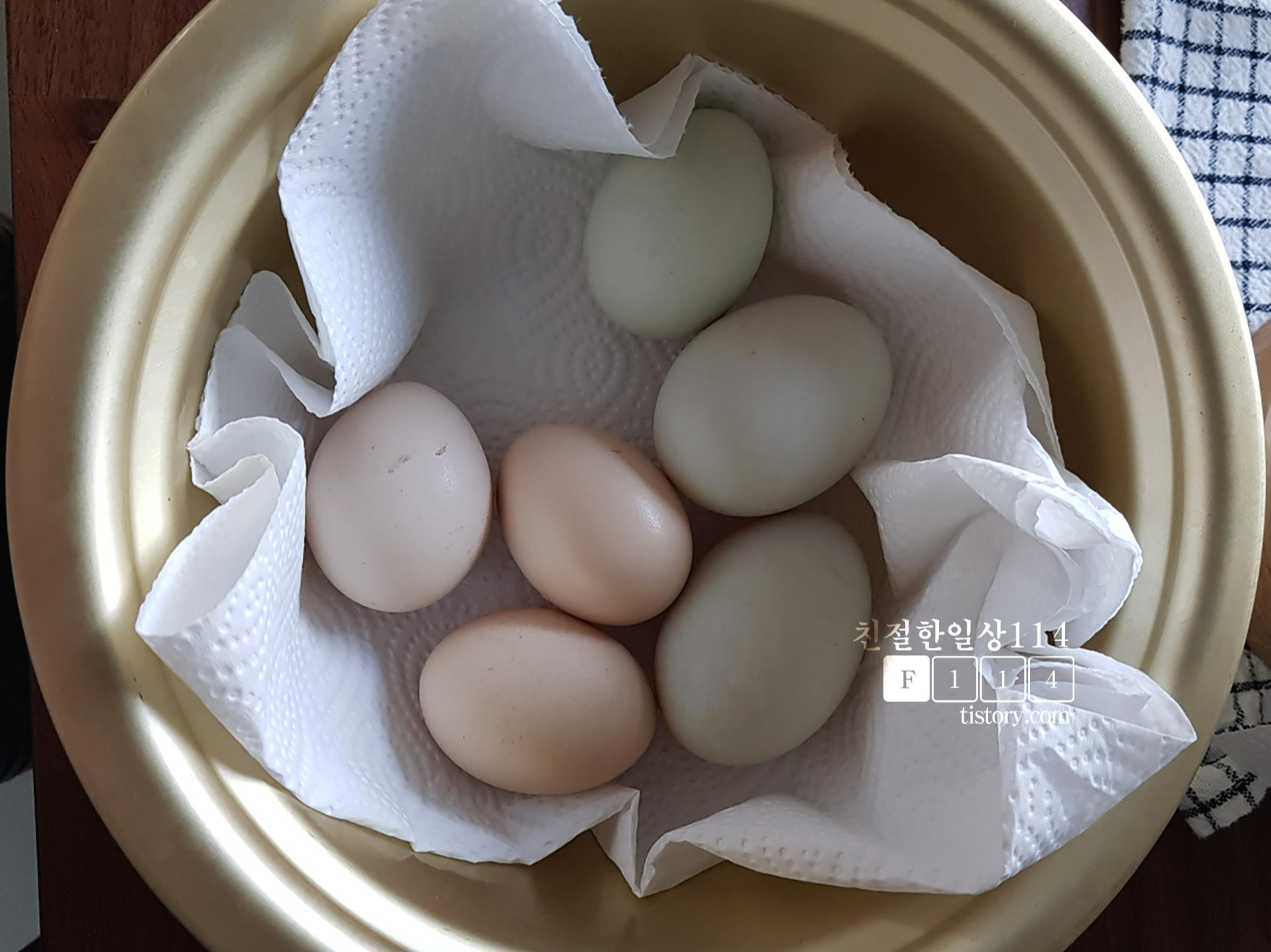 닭과 오리를 키우시는 분이 계란과 함께 오리알을 몇개 나눠 주셨다. 직접 기르고 있는 닭과 오리에서 낳은 귀한 달걀과 오리알이다. 계란은 요리에도 많이 들어가고 후라이나 삶아서도 자주 먹기 때문에 냉장고에 항상 떨어지지 않도록 보관해두며 먹고 있지만 오리알은 시중 마트에서도 보기 힘든 귀한 식재료이다. 더구나 판매용이 아니며 직접 기른 유기농 오리가 낳은 오리알이라 더할 나위없이 건강하고 신선할 것이다.