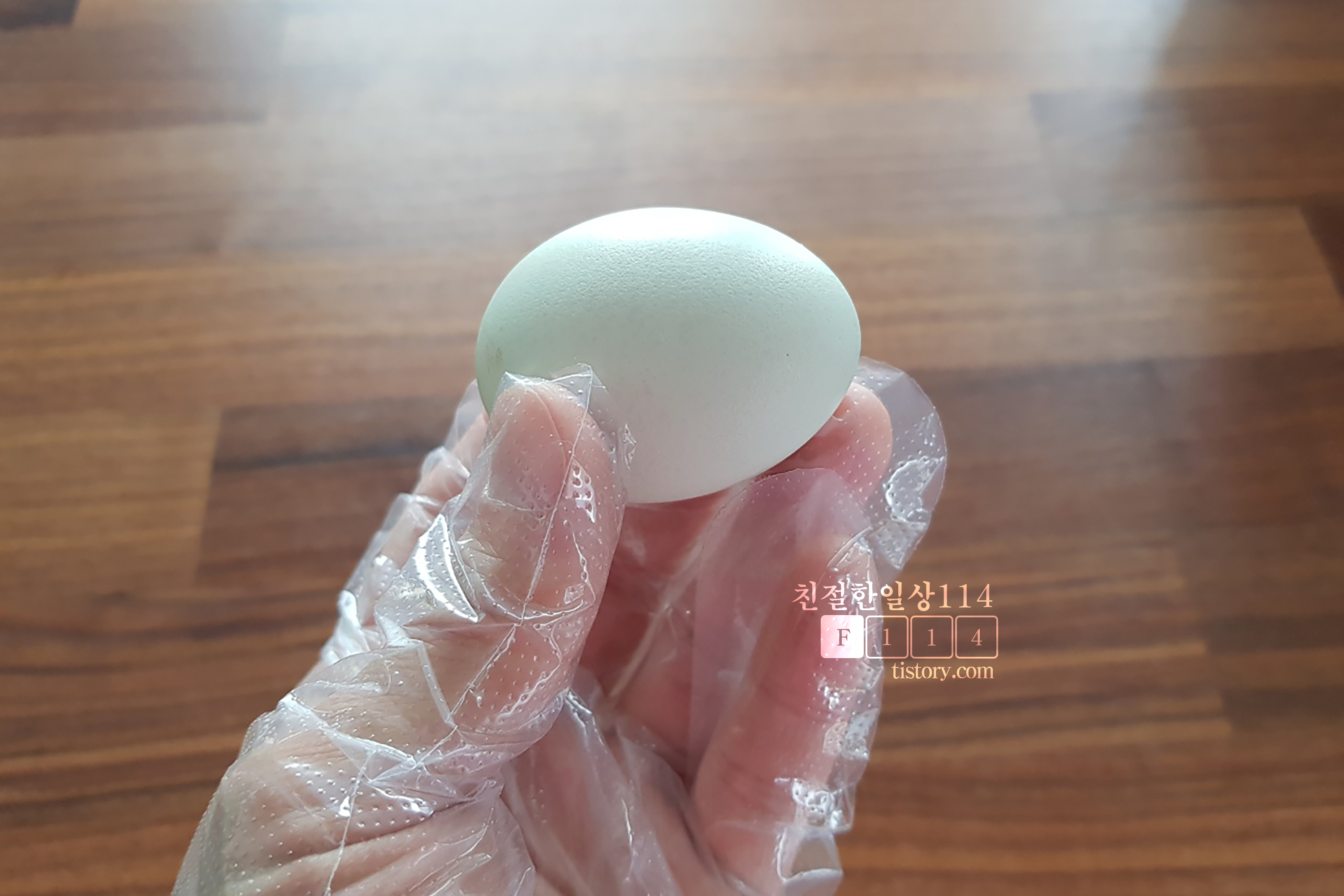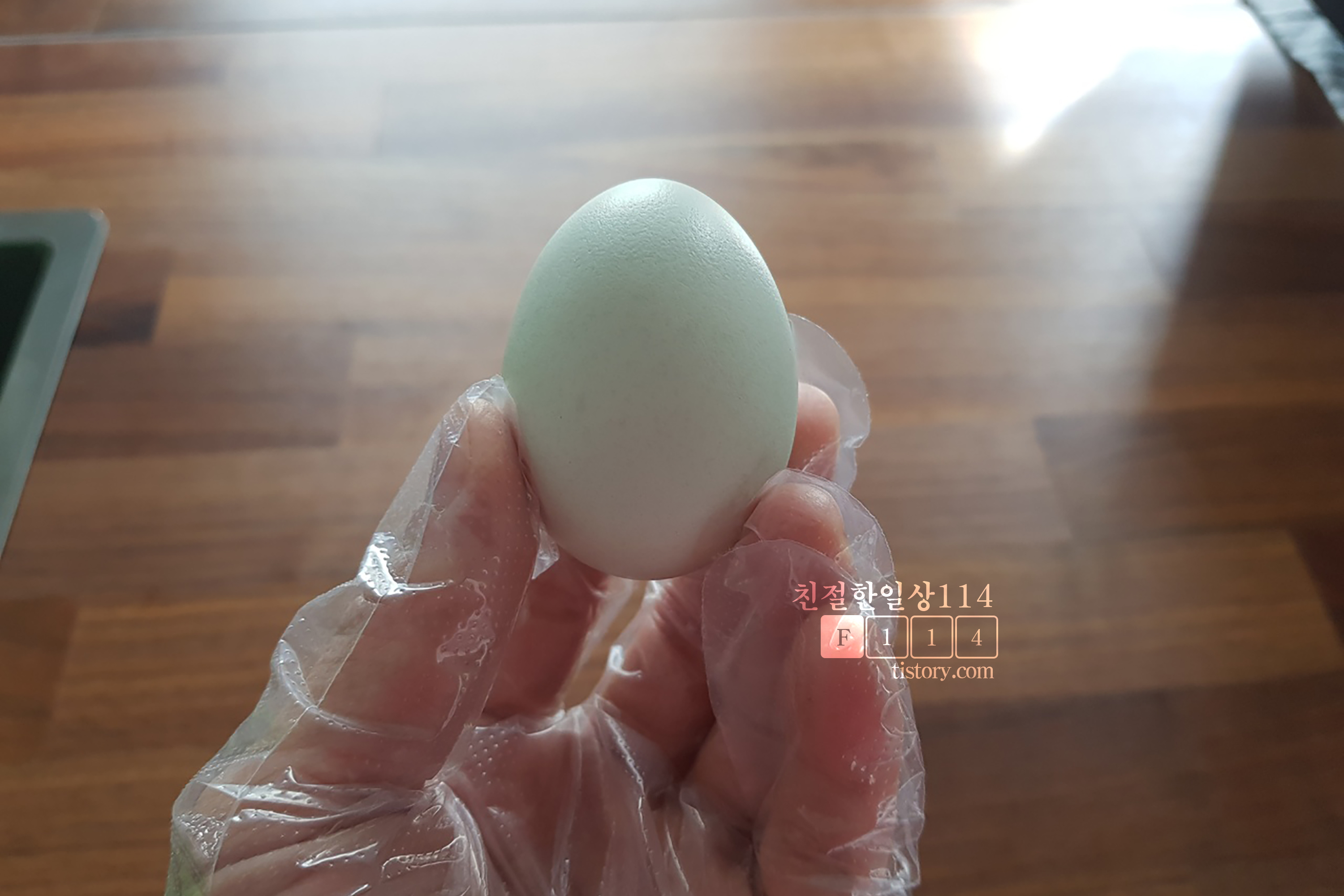 닭보다 덩치가 큰 오리가 낳은 알이라서 육안으로 보기에도 확실히 계란보다 크기가 크다.