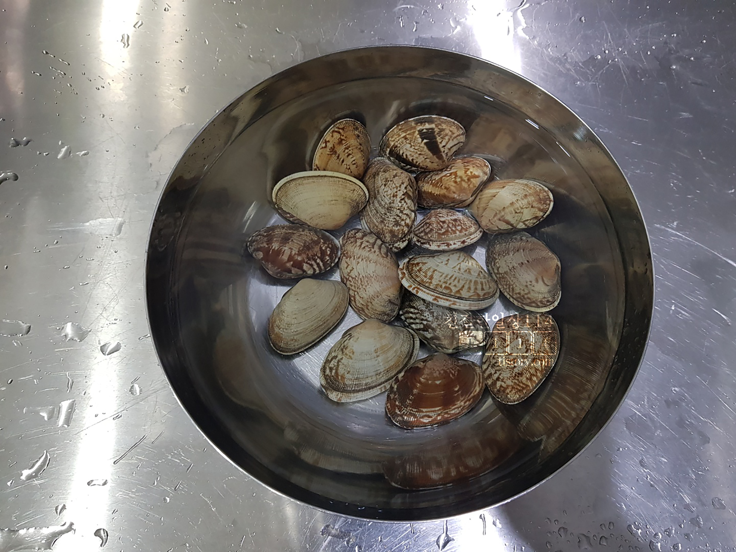세척 후 깨끗해 보이는 바지락이지만 해감의 목적은 조개 안에 있는 뻘과 더러운 물을 빼내는 데 있으므로 이제부터가 진짜다.