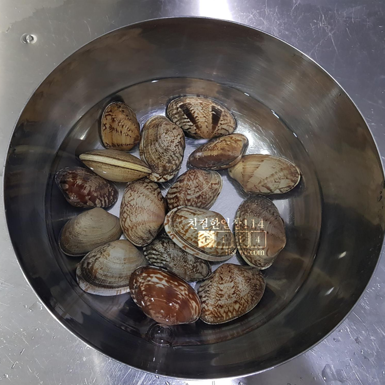 세척 후 깨끗해 보이는 바지락이지만 해감의 목적은 조개 안에 있는 뻘과 더러운 물을 빼내는 데 있으므로 이제부터가 진짜다.