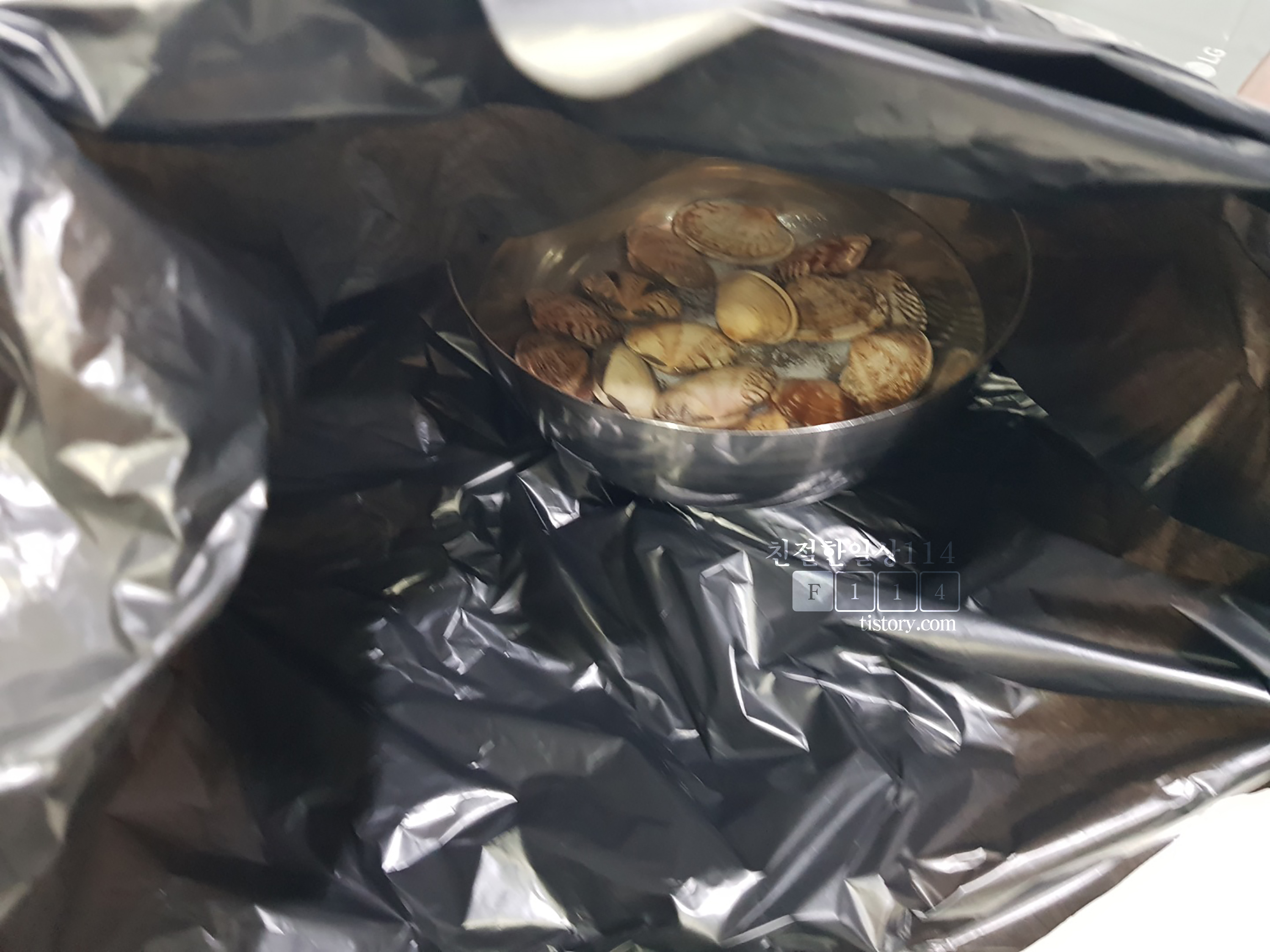 바지락이나 조개는 철로 된 쇠젓가락을 소금물에 같이 넣어서 해감을 하게 되면 입을 빨리 벌리게 된다고 한다. 이번에 해감할때는 큰 쇠그릇에 해감을 해서 빨리 된 것일 수도 있다.