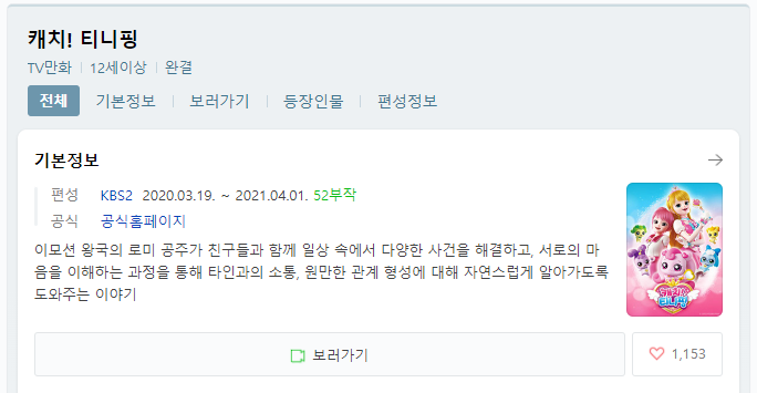 캐치 티니핑은 KBS2 TV에서 하는 티비 만화영화다. 52부작으로 이모션 왕국의 로미 공주가 친구들과 함께 일상 속에서 다양한 사건을 해결하고 서로의 마음을 이해하는 과정을 통해 타인과 소통, 원만한 관계 형성에 대해 자연스럽게 알아가도록 도와주는 그런 스토리의 만화영화이다.