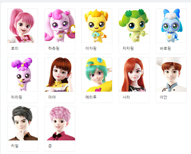 캐치 티니핑에 나오는 등장인물로 주인공과 주로 나오는 인물과 캐릭터가 많다. 그렇지만 위 사진에 나오지 않는 캐치 해야하는 티니핑들이 26종이 있다. 현재까지는 26가지 이지만 새로운 캐릭터가 계속해서 만들어지고 있다.