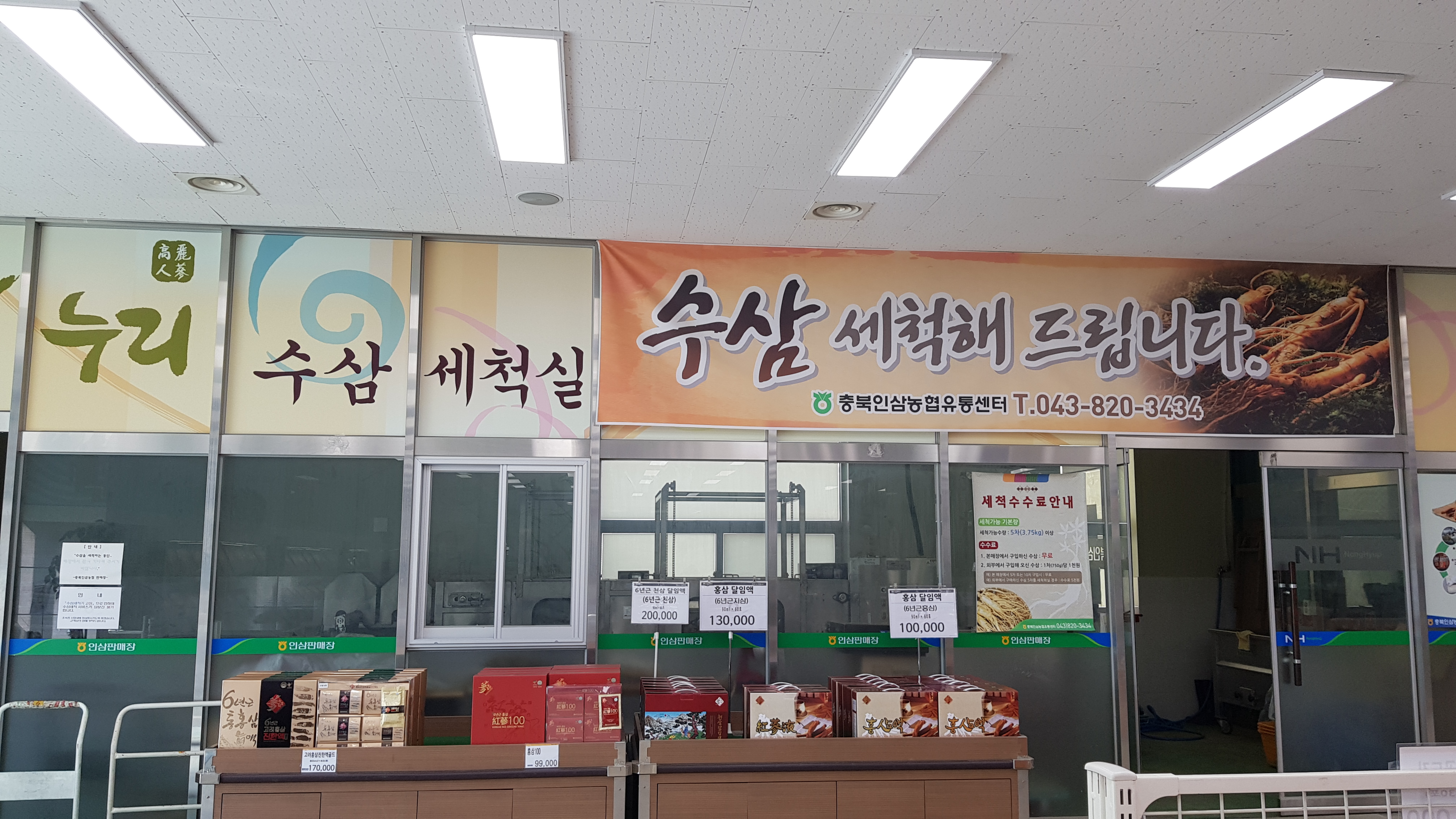 주차장에 주차를 하면 건물이 3개가 보이는데 판매장이 아닌 농협 은행과 같이 있는 전면의 충북인삼농협으로 들어갔다. 이곳이 인삼도 많고 깔끔해서 이곳을 주로 이용한다.