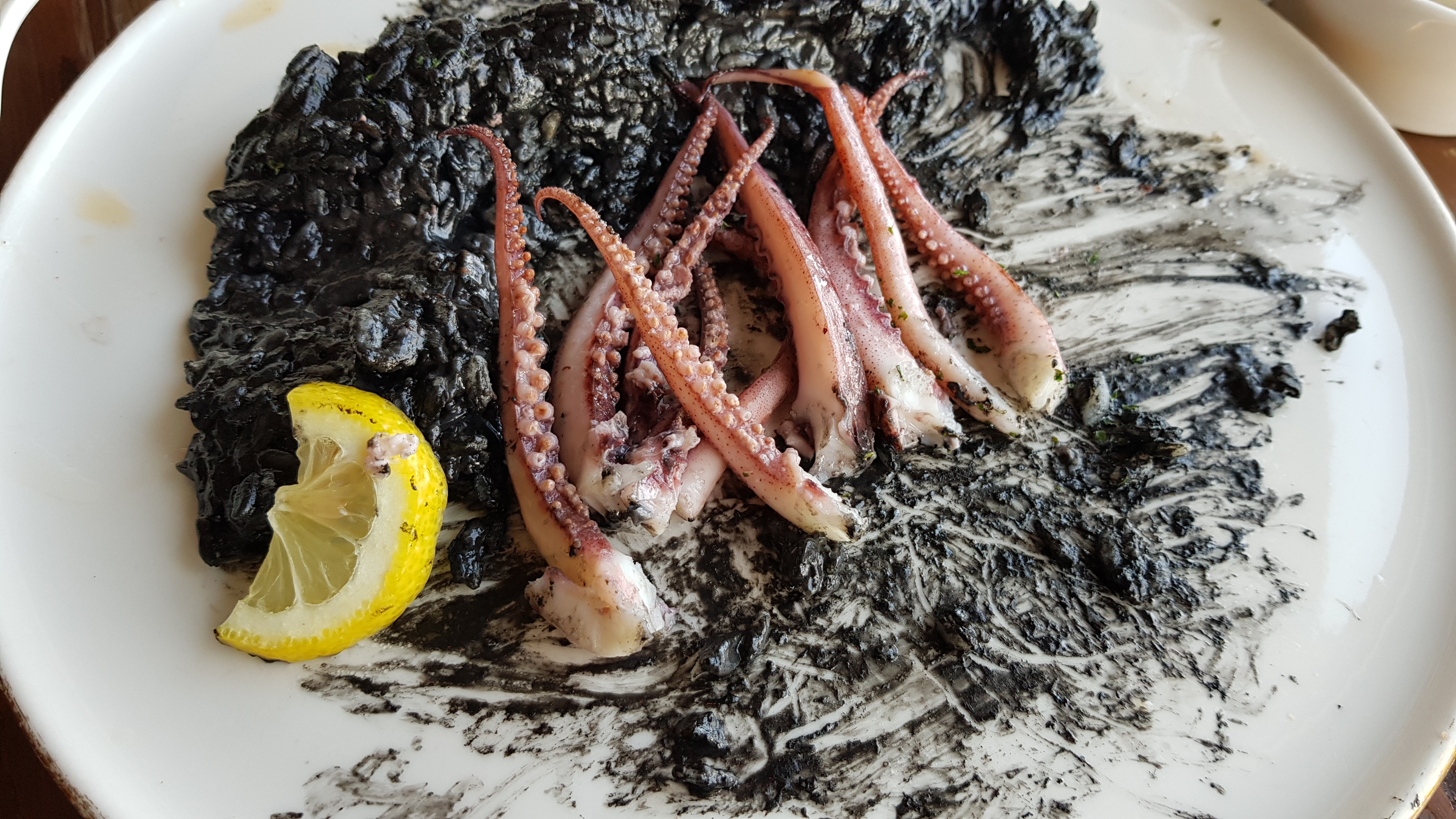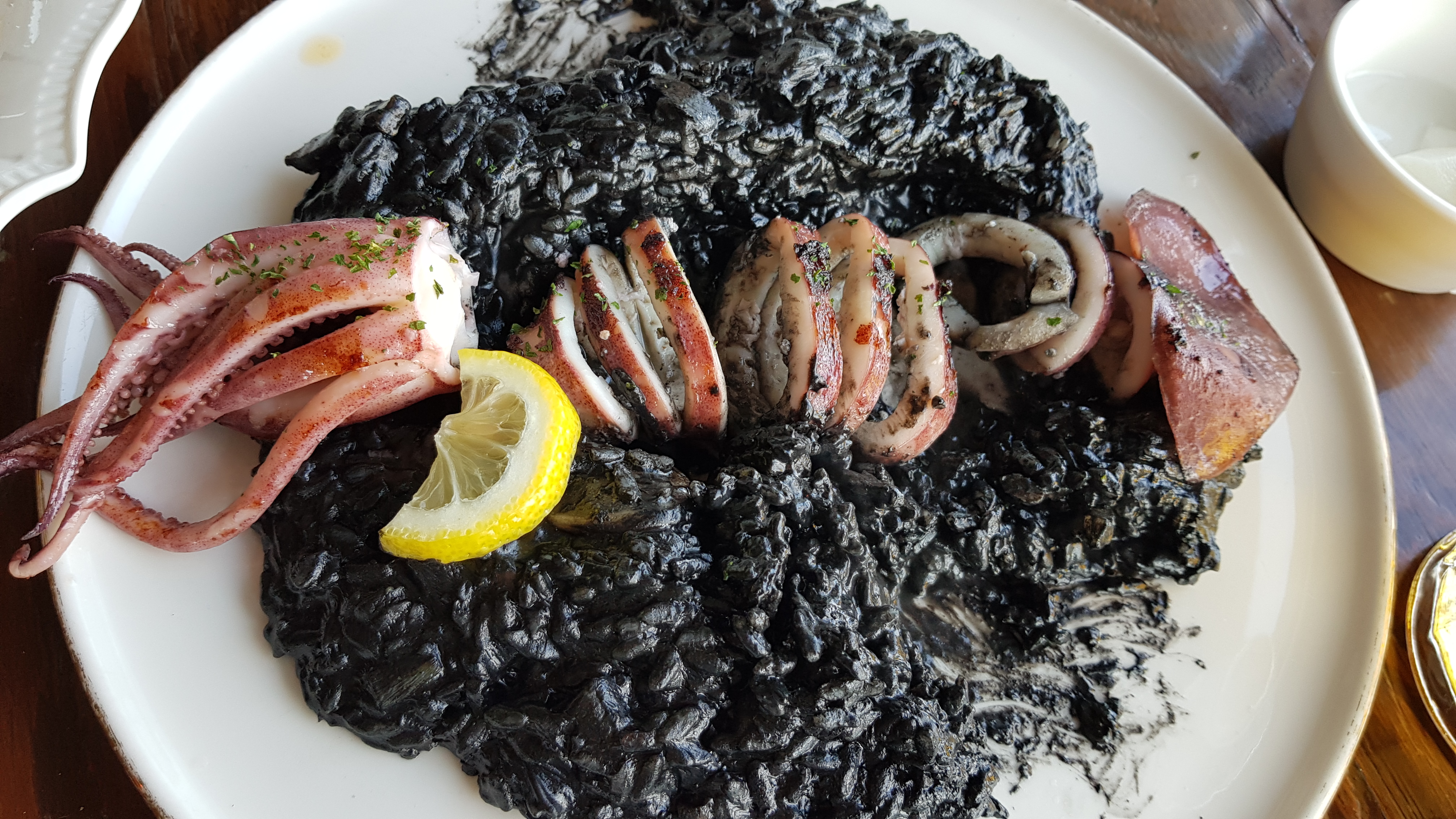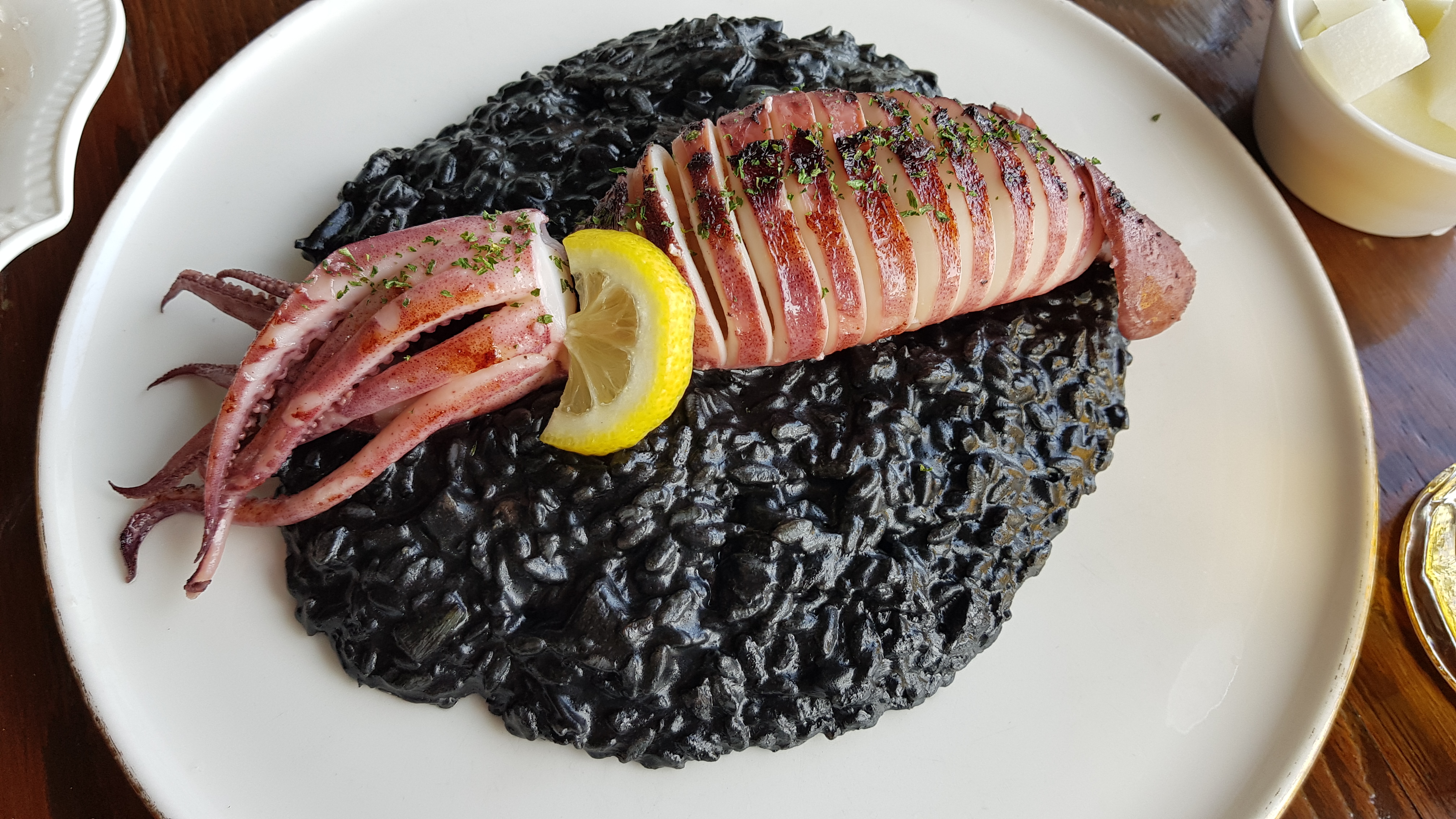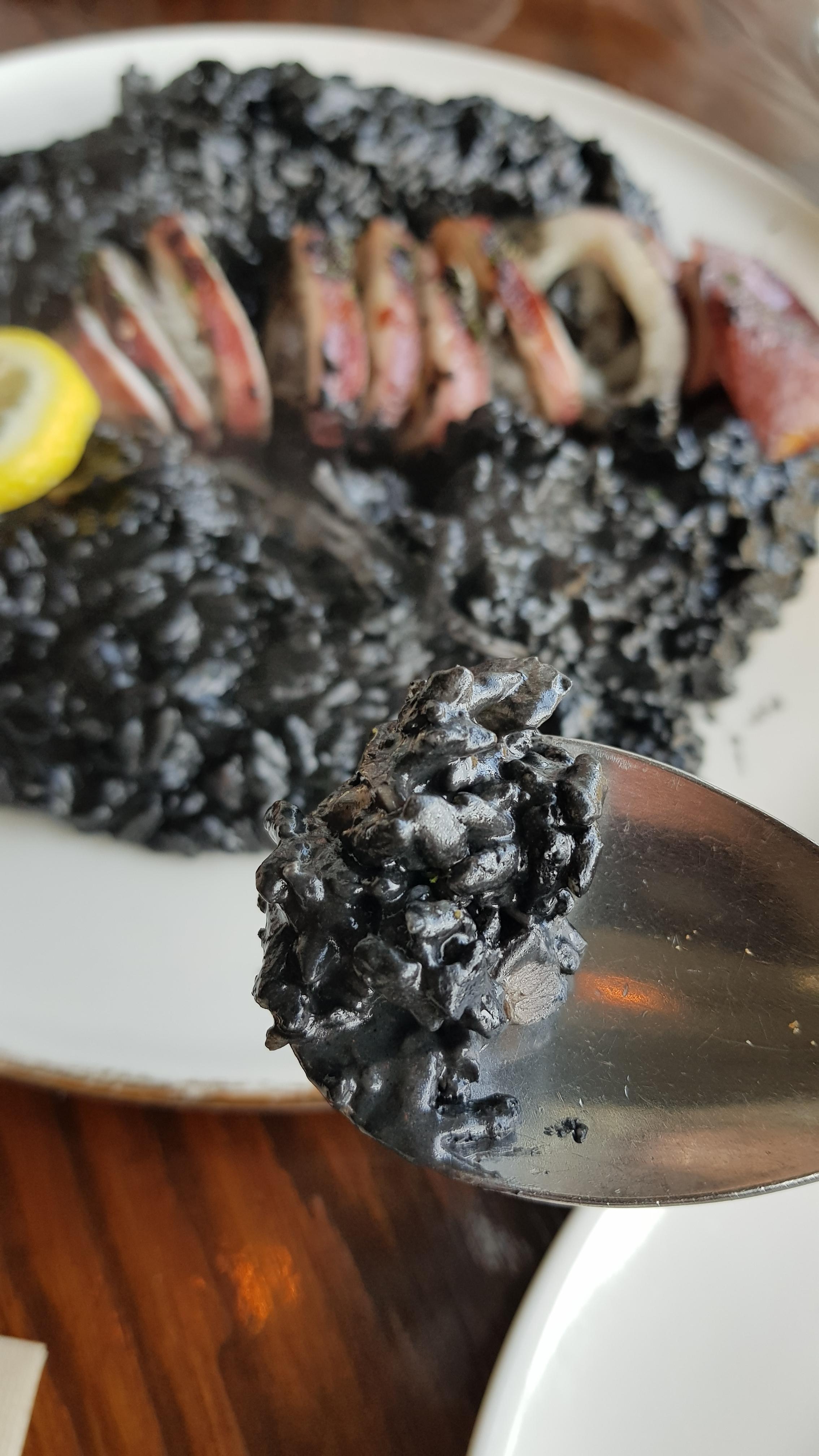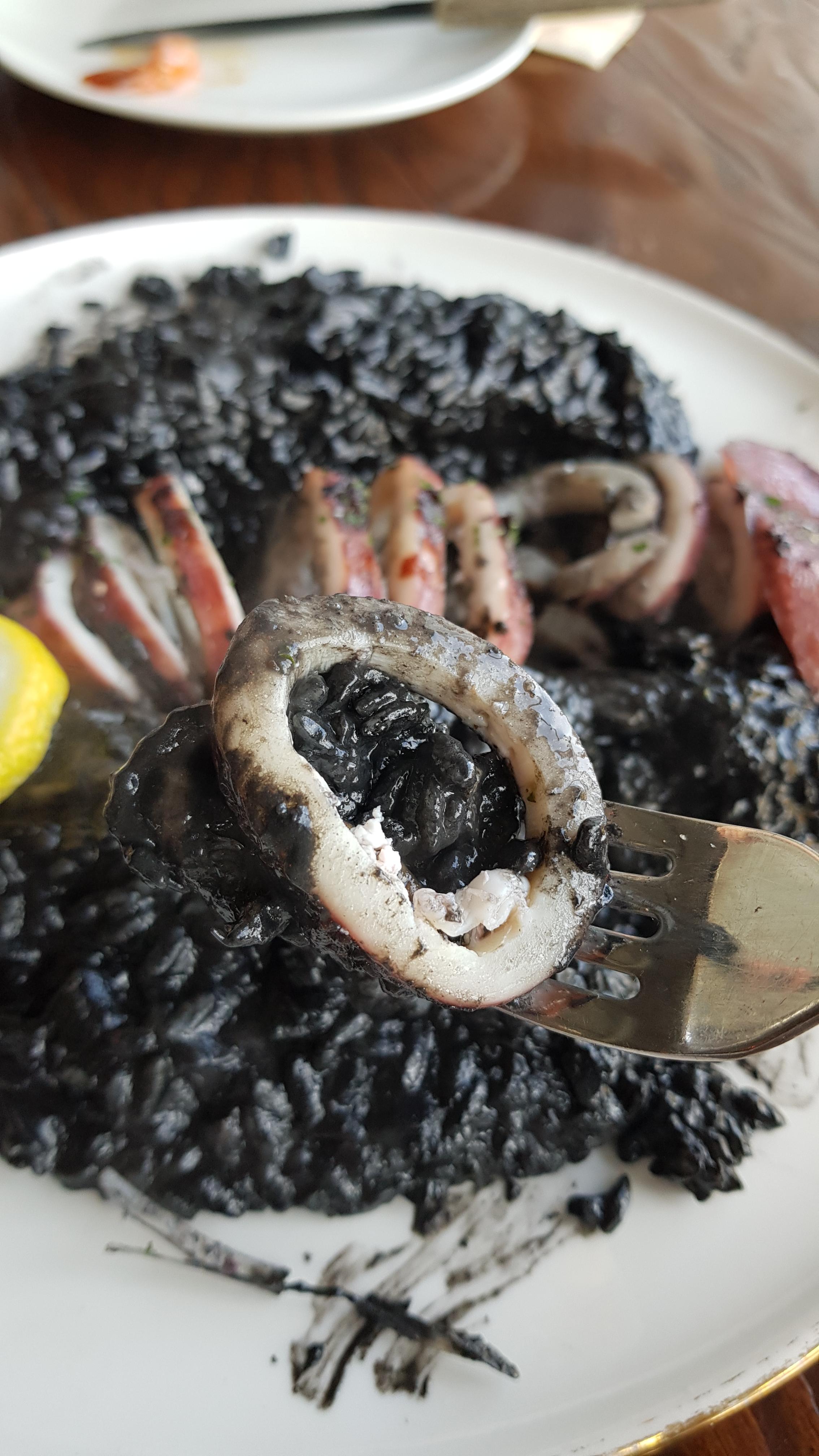 색감이 쇼킹한 오징이 먹물 리조또를 먼저 먹어보았다.