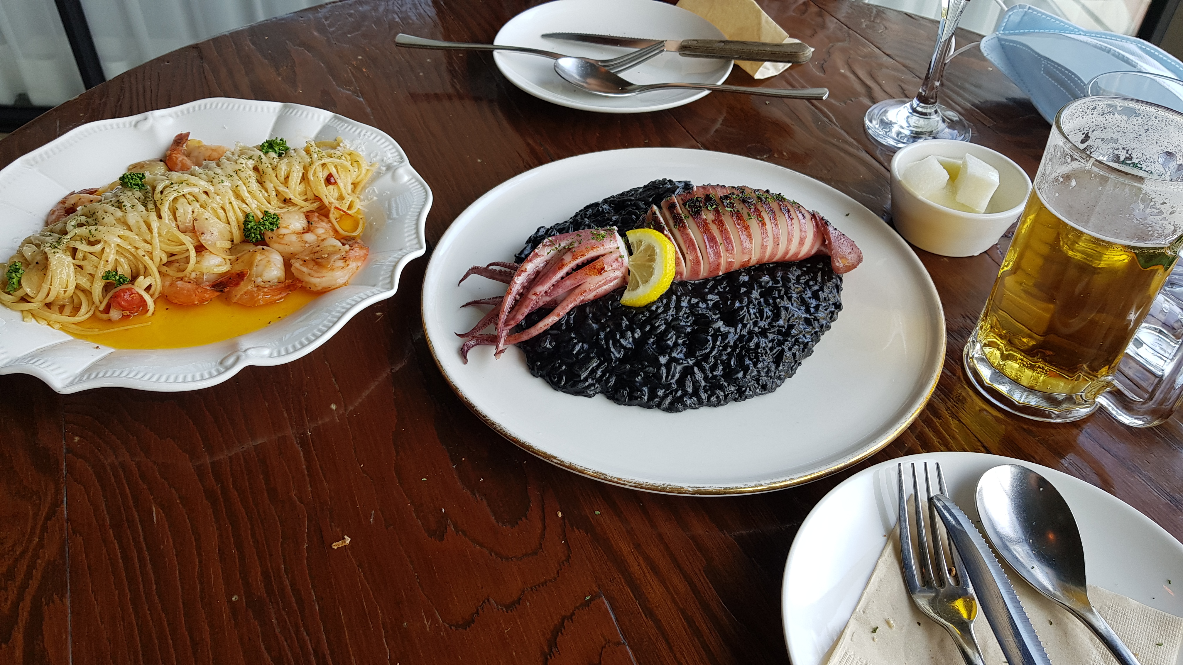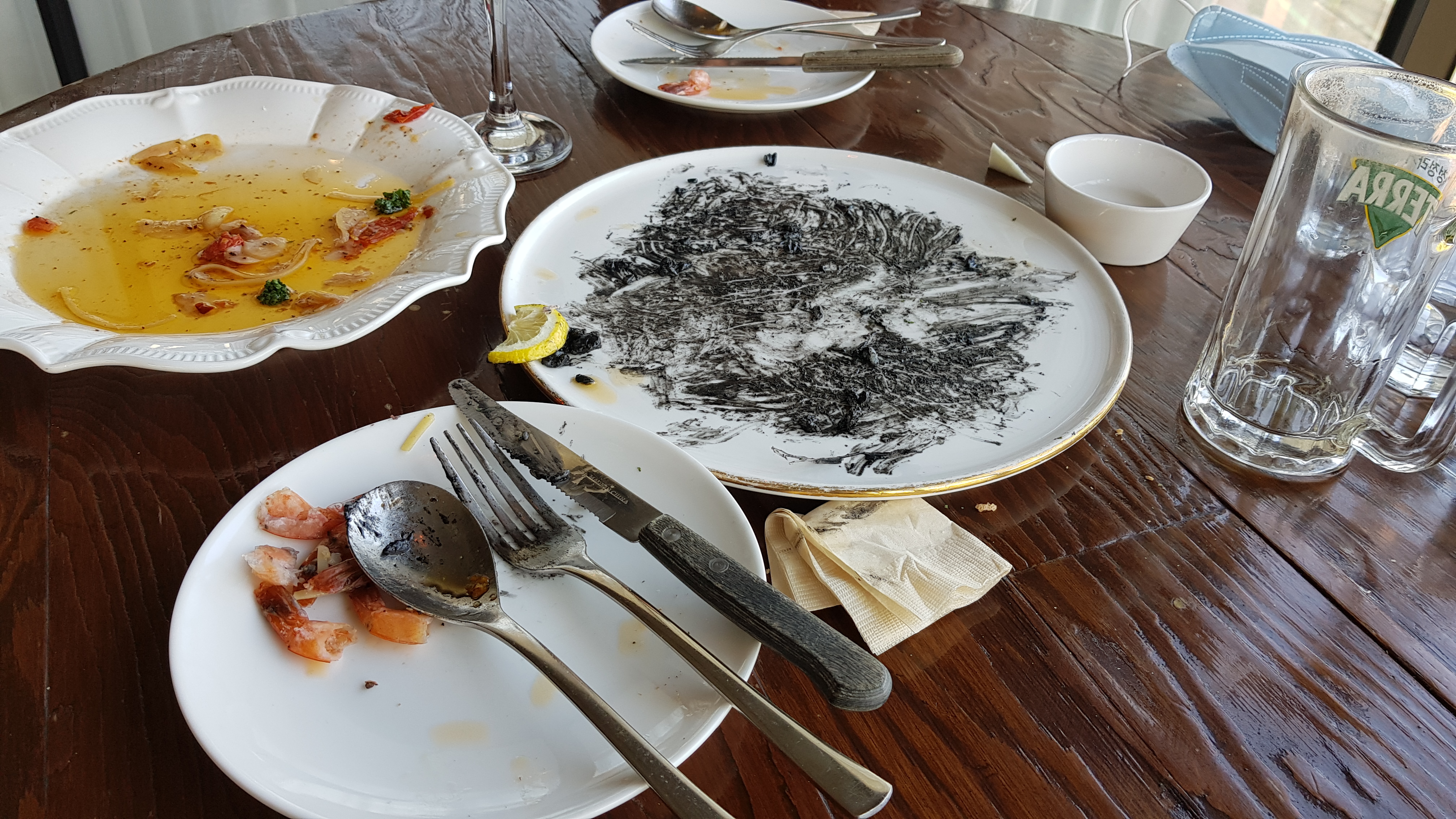 오징어 먹물 리조또 그릇에는 검은색으로 추상화를 그려놓은 듯한 자국을 남기고 모든 그릇을 깨끗이 비웠다.