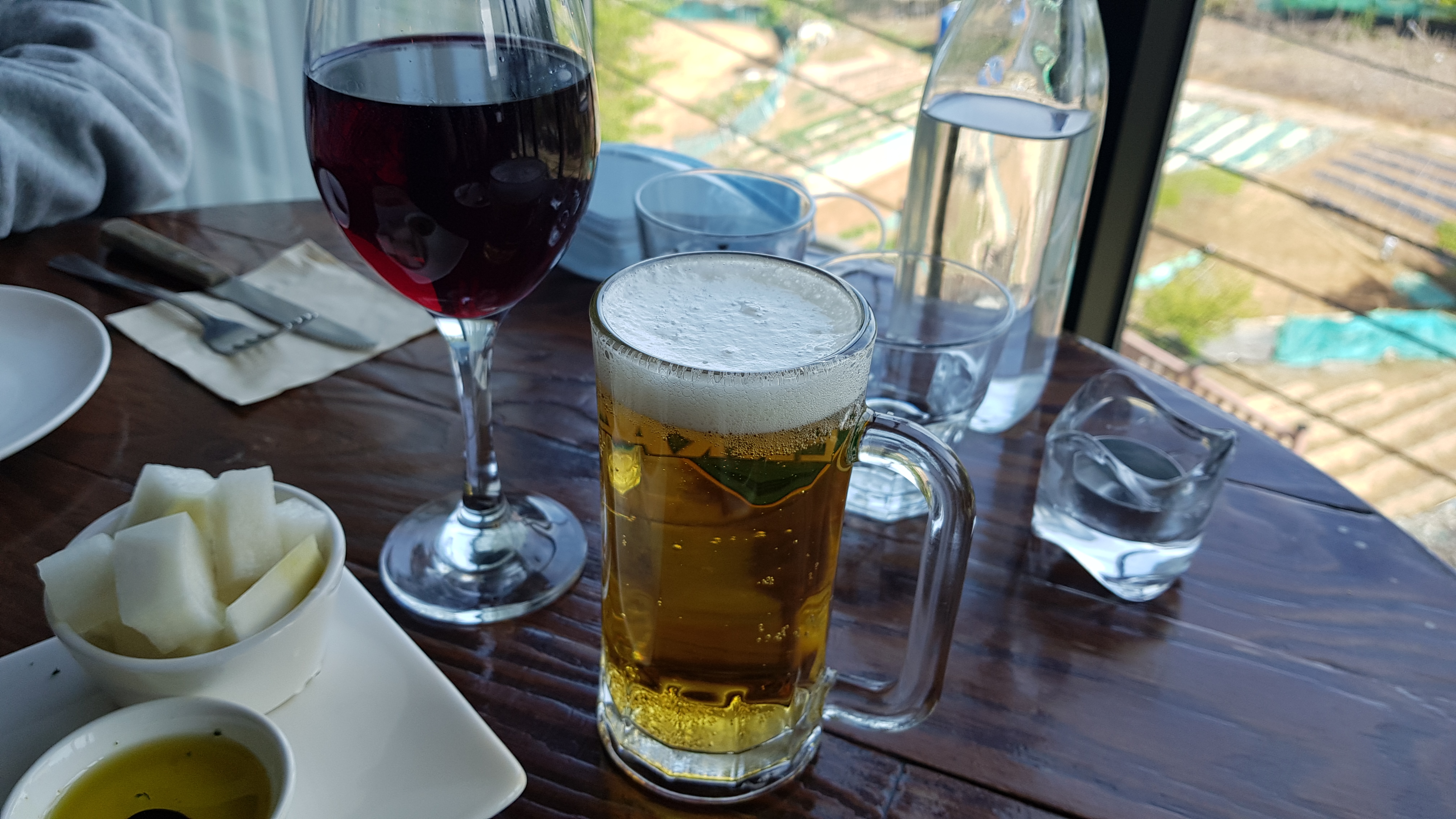 샹그리아와 생맥주. 맥주는 한모금 하자니 스테이크가 떠올랐지만 오늘은 과하지 않게,