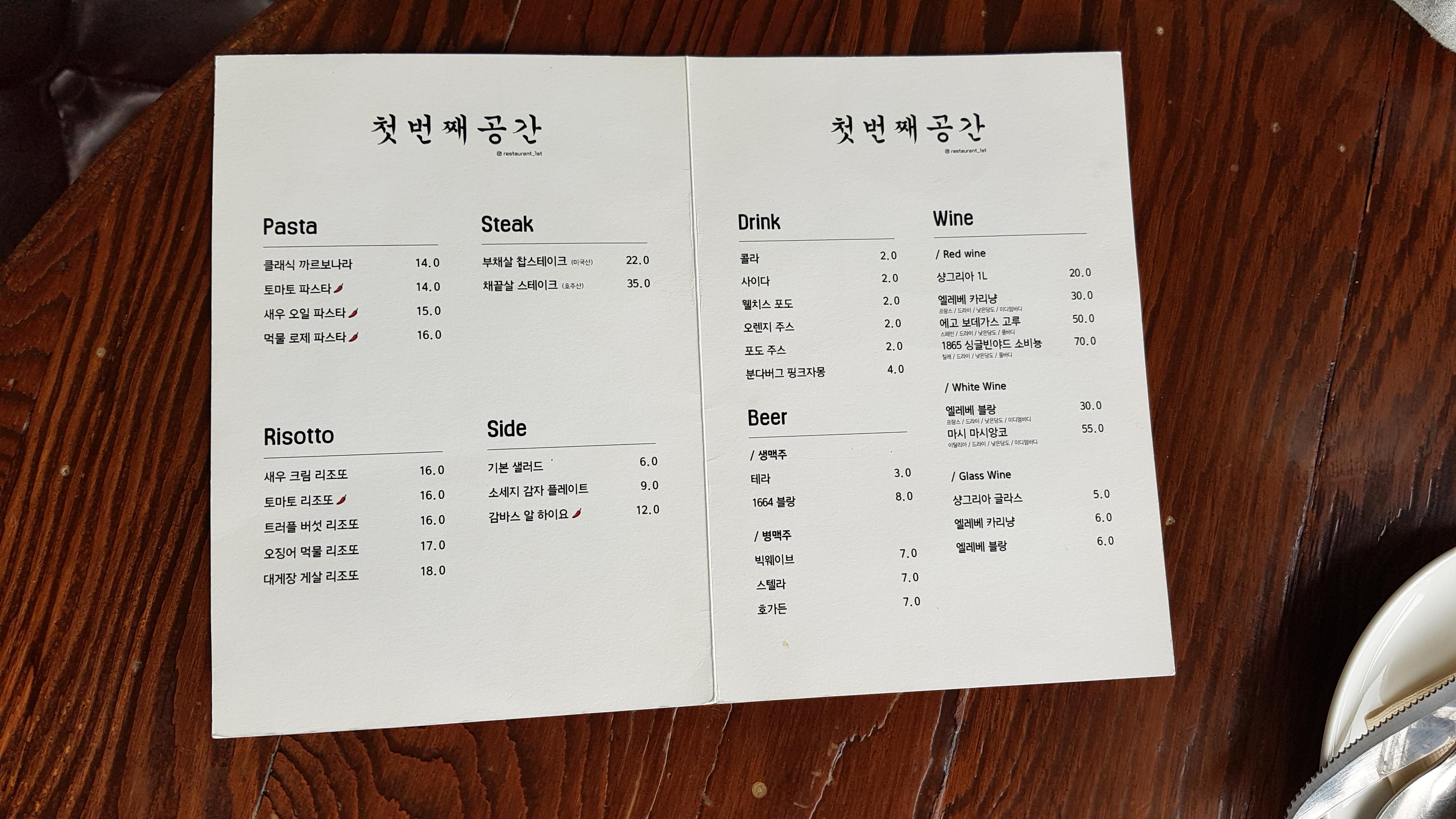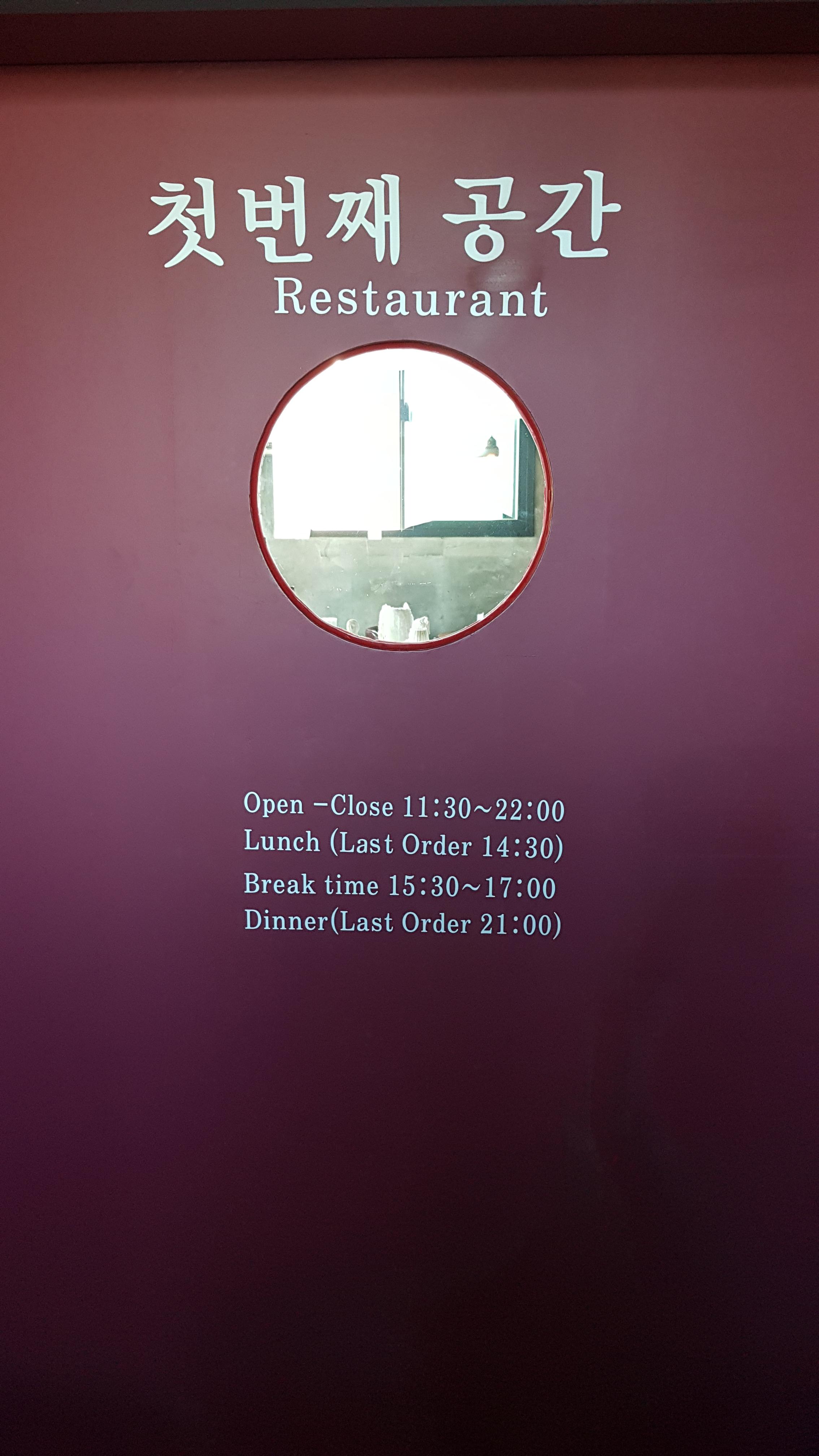 첫번째공간이 있는 건물 외관이다. 1층에는 바로생선구이 식당이 있고 첫번째공간은 3층에 위치해 있다. 사진을 보다시피 간판이 잘 보이지 않아 지나다니면서도 자세히 올려다 보지 않으면 식당이 있는지 알기 어렵다. 필자는 1층의 바로생선구이집에서 몇번 식사를 했음에도 3층에 레스토랑이 있는지 몰랐을 정도이다. (주변을 잘 살펴보지 않아서 그럴수도 있겠지만.. ㅋ)