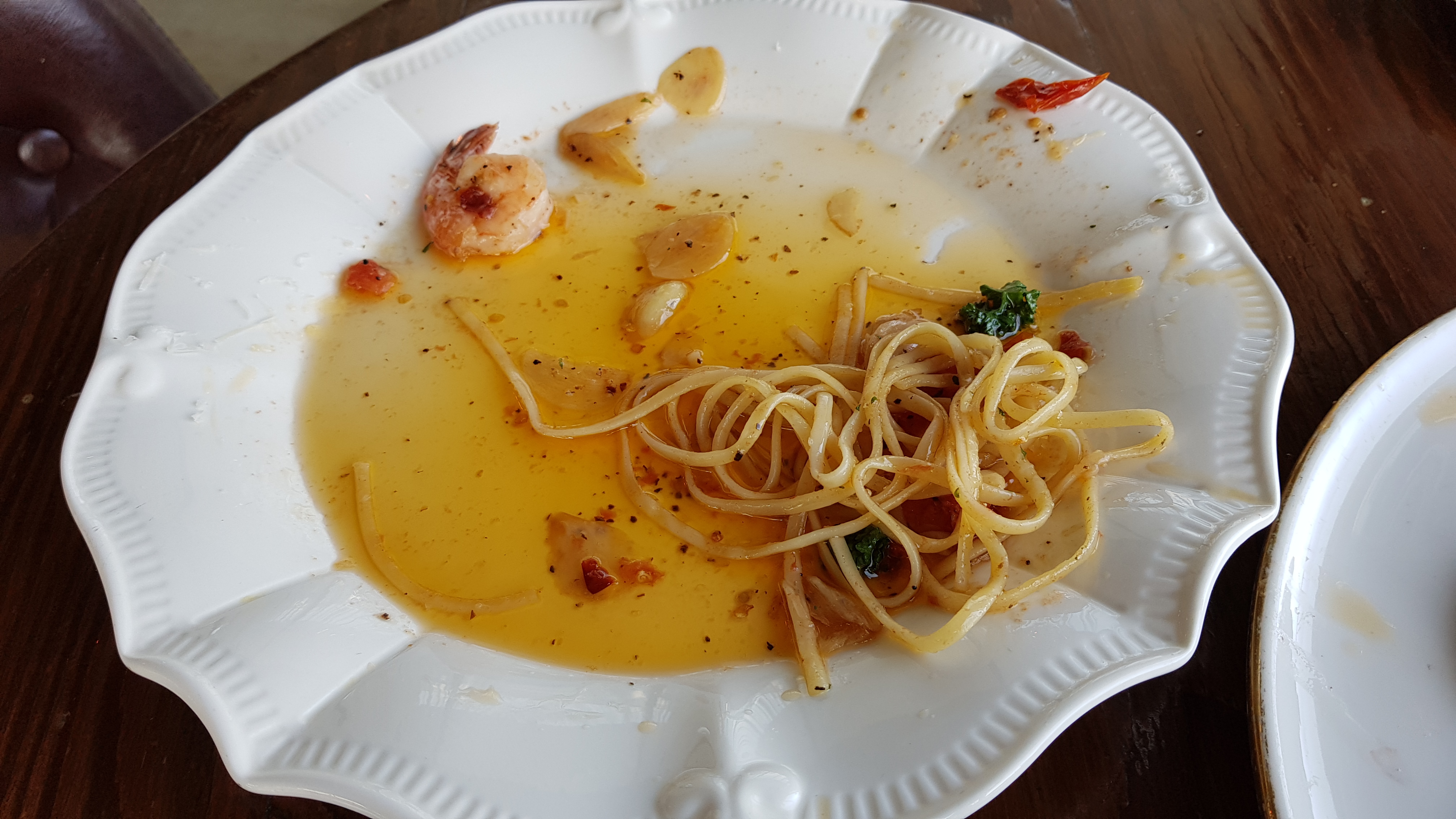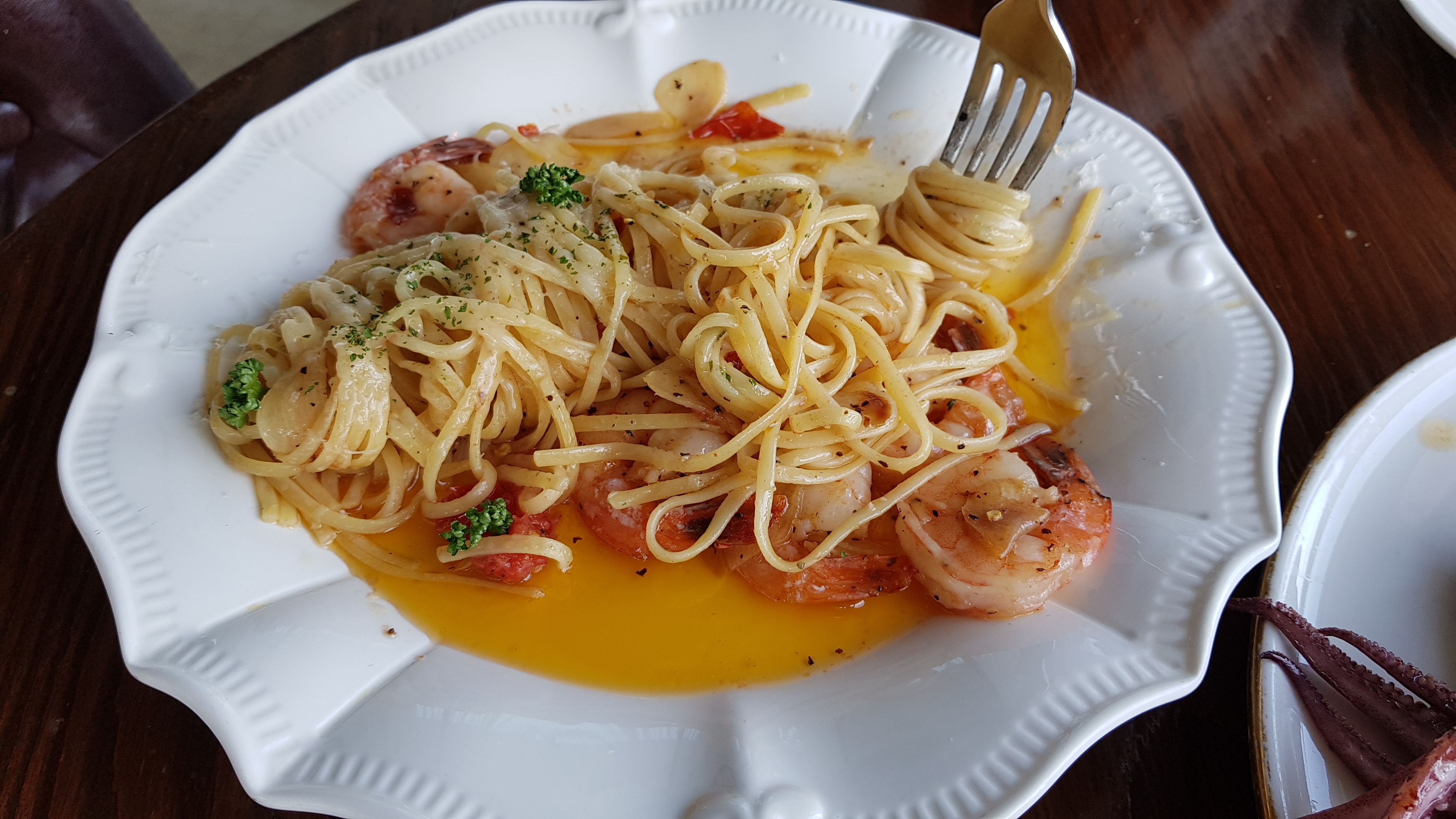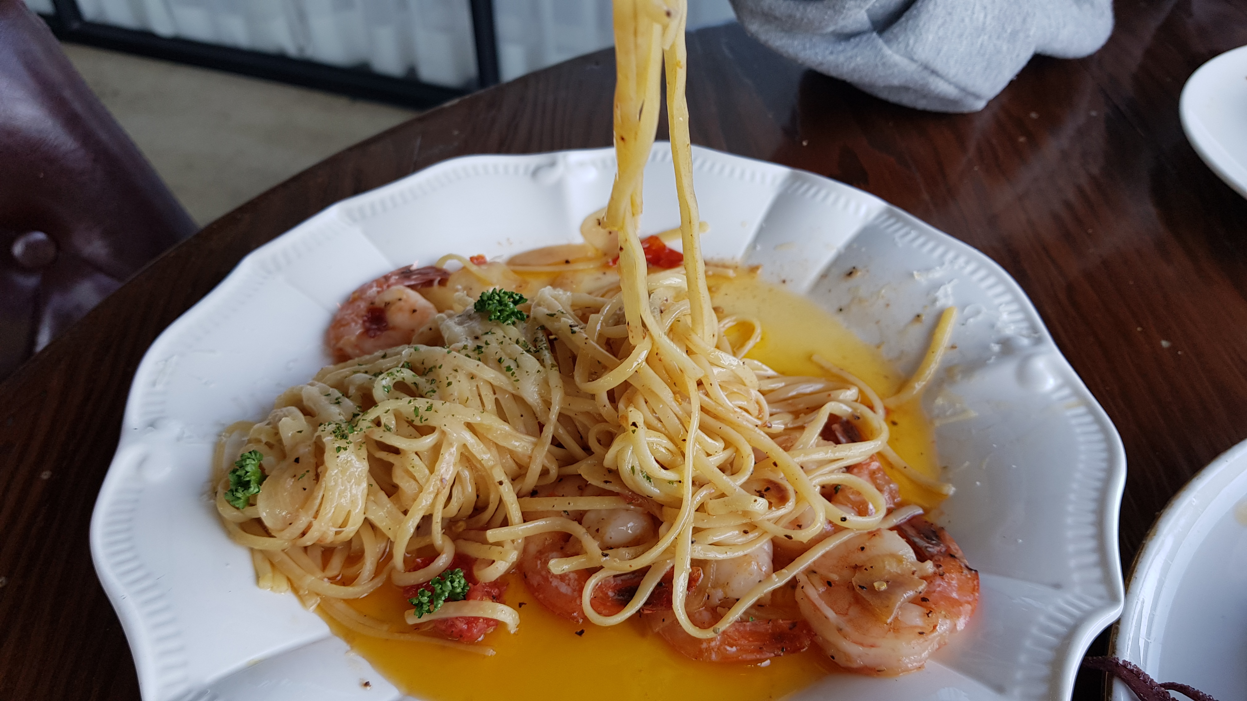 새우가 큼직하고 탱글한게 입안에 넣어서 씹었을때 식감이 좋다. 다만 새우 오일 파스타 역시 본인 입에는 짜다. 그래도 해산물을 워낙 좋아하므로 맥주로 간을 조절해가며 맛있게 먹는다.