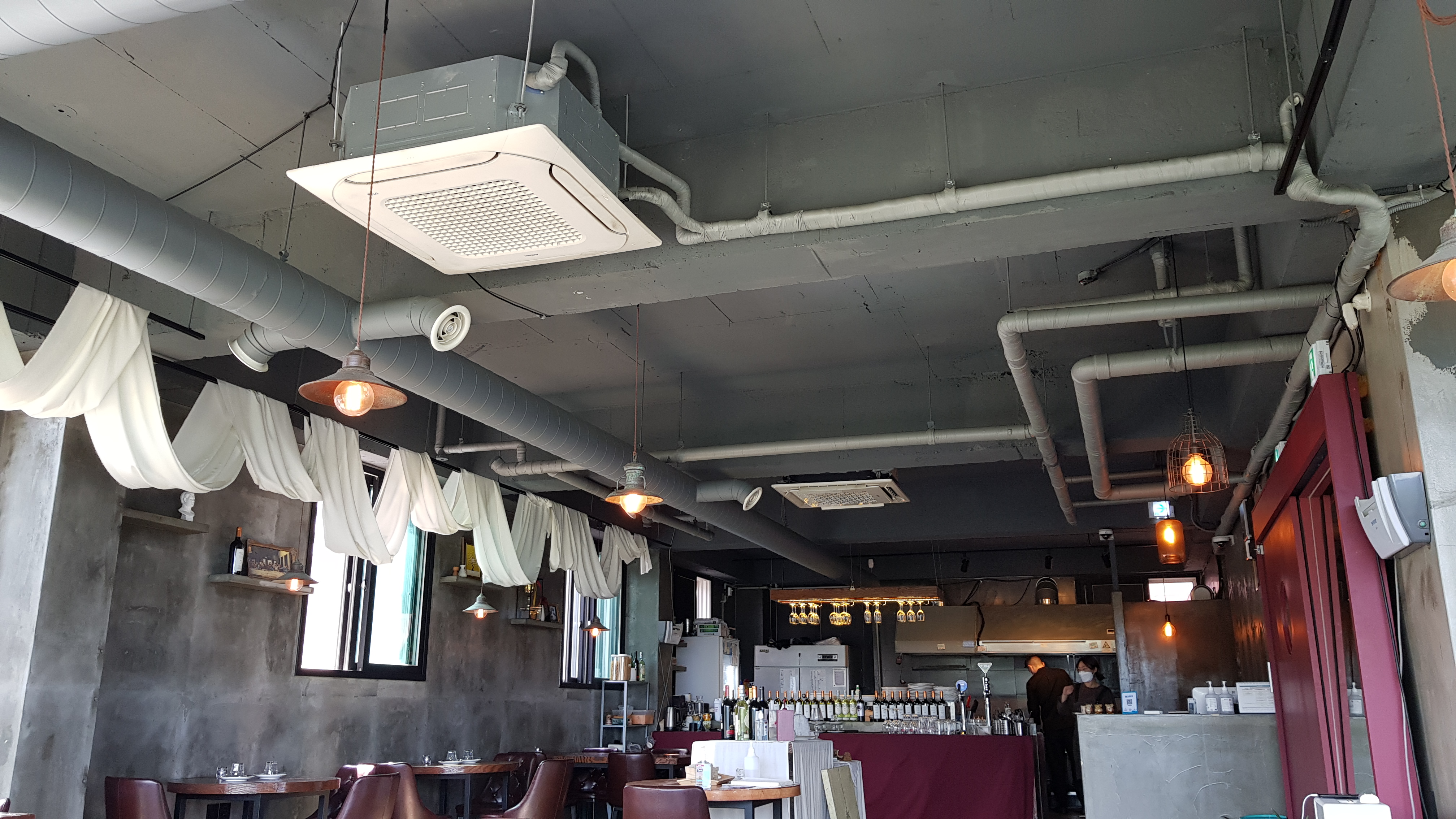 비숑마늘이는 슬개골이 좋지 않아 집안에서는 미끄럽지 않게 해주고 산책을 자주해서 근육량을 늘려주는 것이 좋다고 한다. 그래서 가능한 매일 산책을 시켜주고 집에서는 쉬도록 해주려고 노력하고 있다. 강아지 산책을 매일 시킨다는 건 보통일이 아니다. 산책을 하는 것은 어렵지 않지만 집에 들어와서 발을 씻기고 말리는데 시간도 들거니와 힘들기도 해서다. 그래도 좋은게 좋은거라고 필자도 이참에 운동하는 셈 치자 생각하며 매일같이 동네를 돌아다닌다. 이렇게 산책을 다니며 그동안 가보지 않았던 동네 이곳저곳을 두발로 걸어다니게 되고, 차를 타고 다니며 보지 못 했던 것들을 발견하게 된다. 이번에 포스팅하는 첫번째 공간이라는 이탈리안 레스토랑이 이렇게 해서 발견하게 된 성안동 맛집이다. 4층짜리 건물에서 3층에 위치하고 있는데 간판이 화려하지도 눈에 띄지도 않게 되어있어서 여러 번 앞을 지나다니면서도 식당이 있는지 조차 몰랐었다. 오후 2시정도에 건물 앞을 지나가며 건물을 올려다 보는데 큰 통창에 테이블마다 사람들이 앉아서 뭔가를 먹고 있는 모습이 보여서 식당인걸 알게 되었고 점심시간이 지났음에도 사람들이 테이블에 많이 있는걸로 보아 찾아오는 맛집인가 보다 싶어 문을 문을 두드리게 되었다.