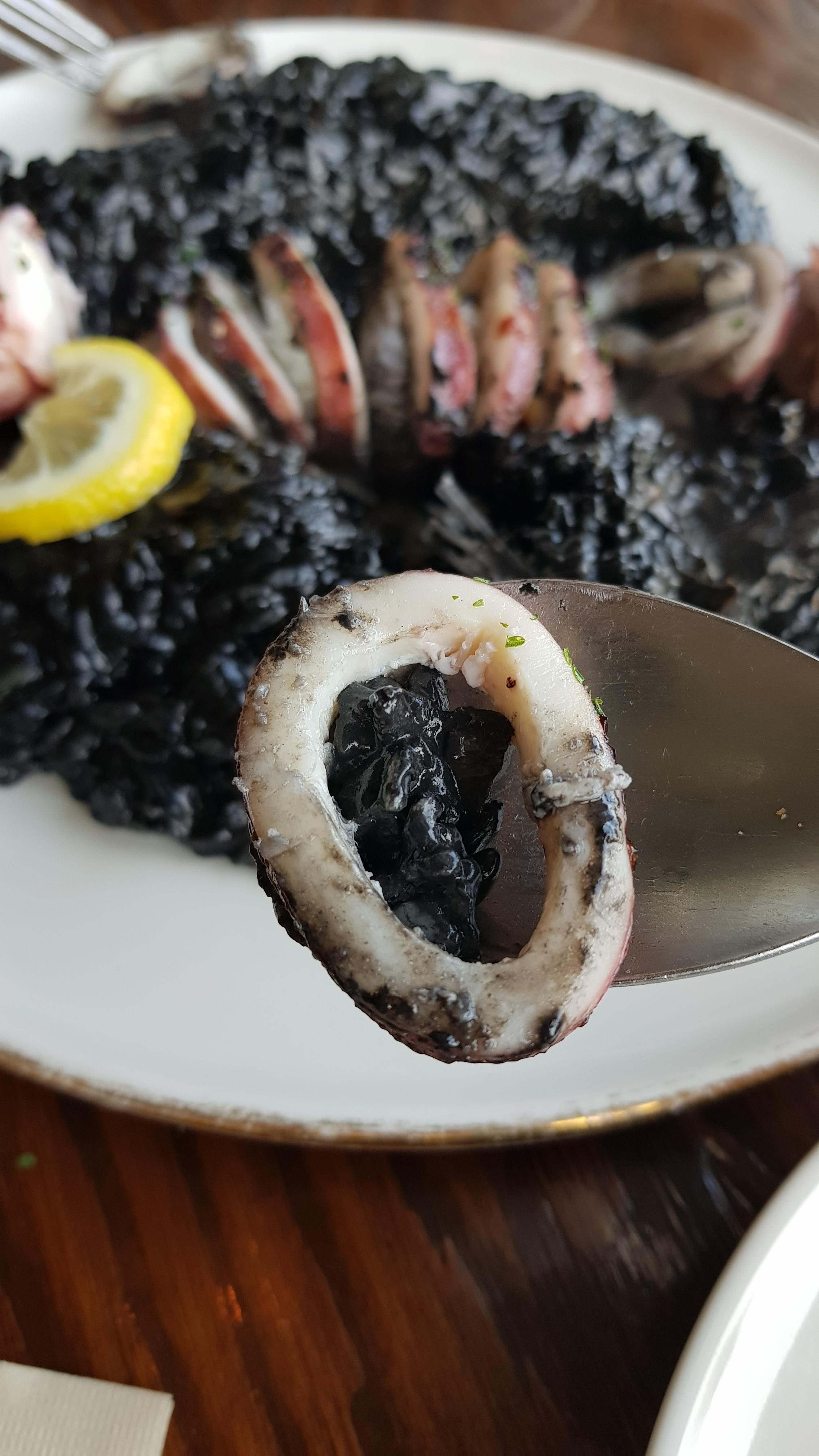 밥알에 까만 먹물이 골고루 잘 베여져 마치 쌀이 원래 검은색이었던것 같다. 밥은 다소 짰으며 오징어는 같이 적당했다. 오징어와 밥을 같이 먹으니 밸런스가 맞았다.