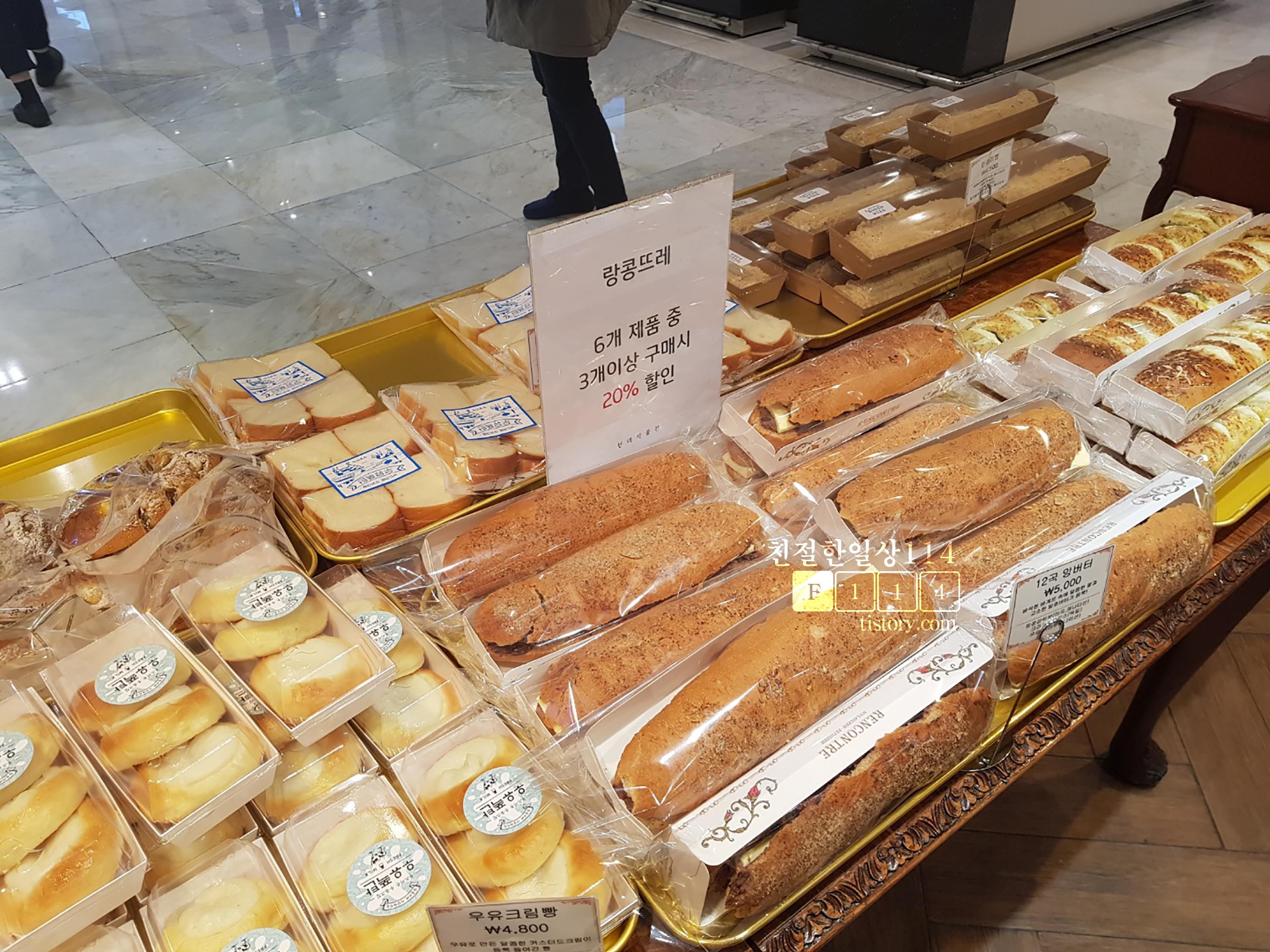 백화점에 입점한 방가게라서 규모가 그리 크지는 않다. 빵을 사려는 사람과 구경하는 사람들로 가게가 북적인다.