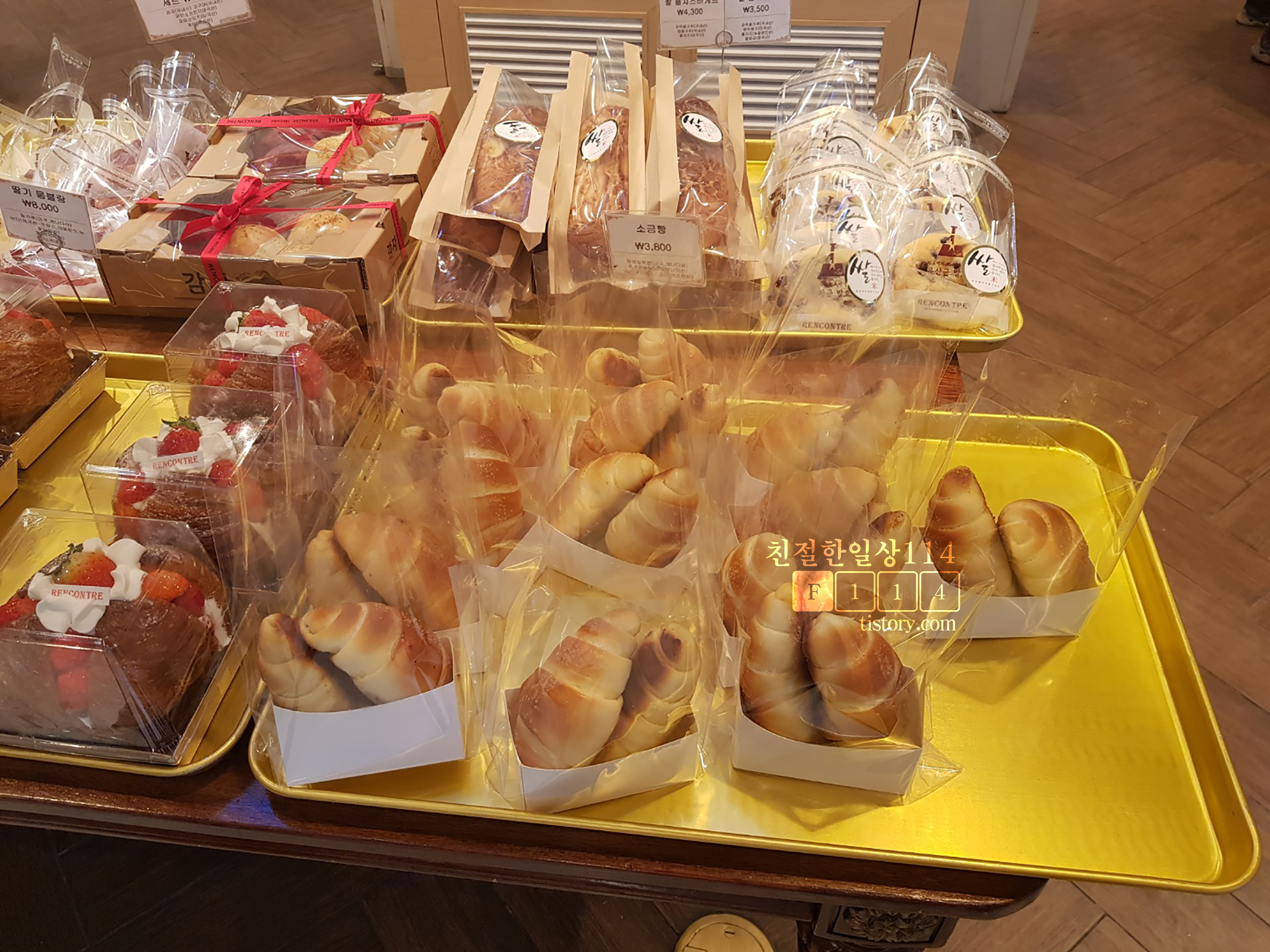 이날 랑콩뜨레에 들렸을때는 점심밥을 먹은 이후라서 구경하고 바게트만 사가려고 했었다. 구경을 하다보니 랑콩뜨레가 제과명인이 운영하는 가게라는 것을 알게 되었고 다른 빵들의 맛도 궁금해졌다.