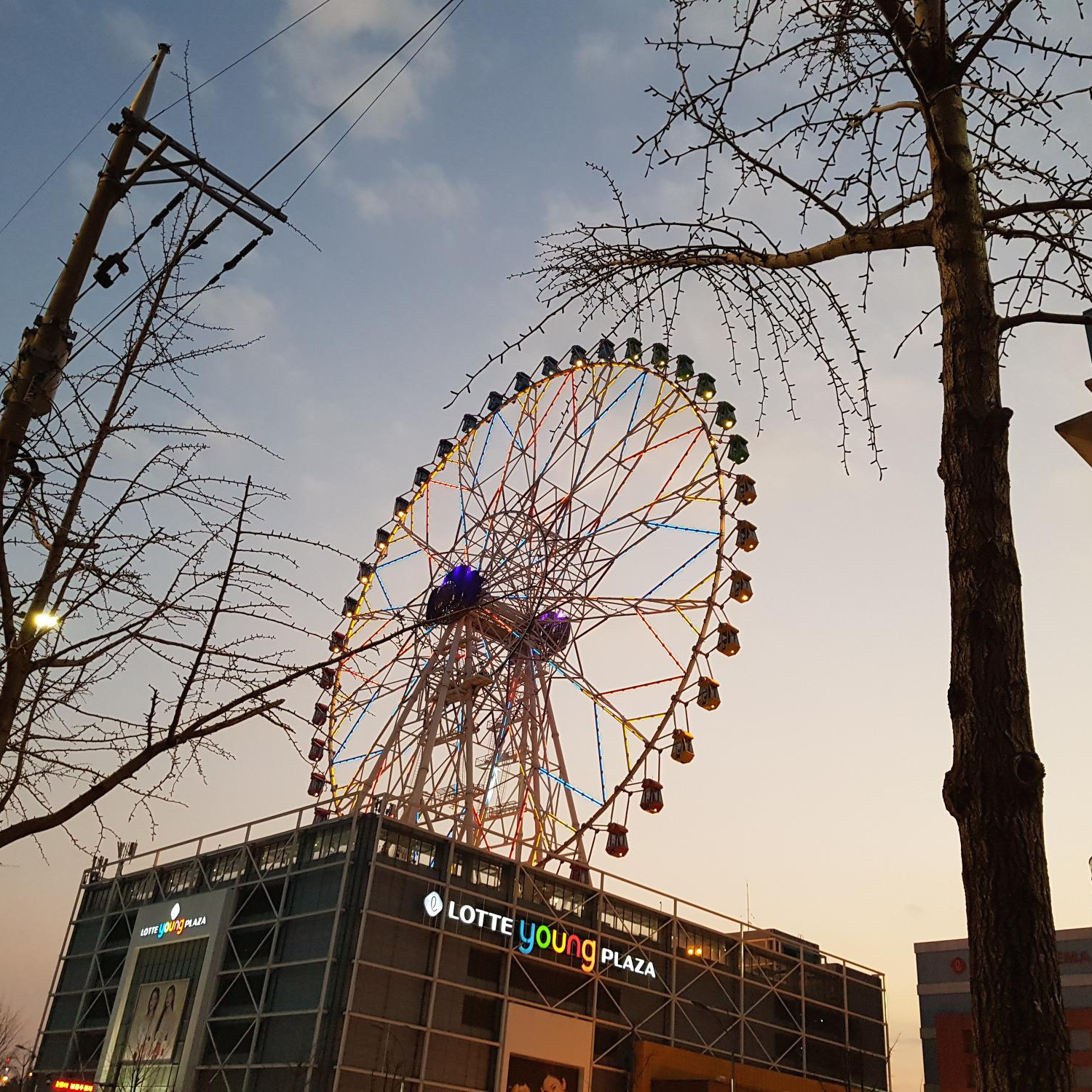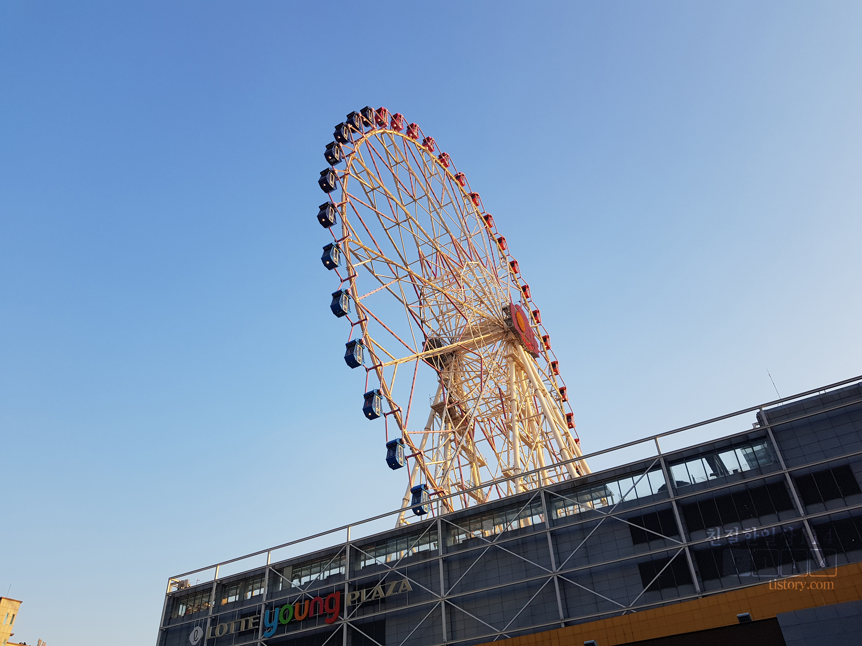 7층 옥상에 도착하니 거대한 관람차가 눈에 들어온다. 크기가 커서 카메라 화면에 다 들어오지 않는다.