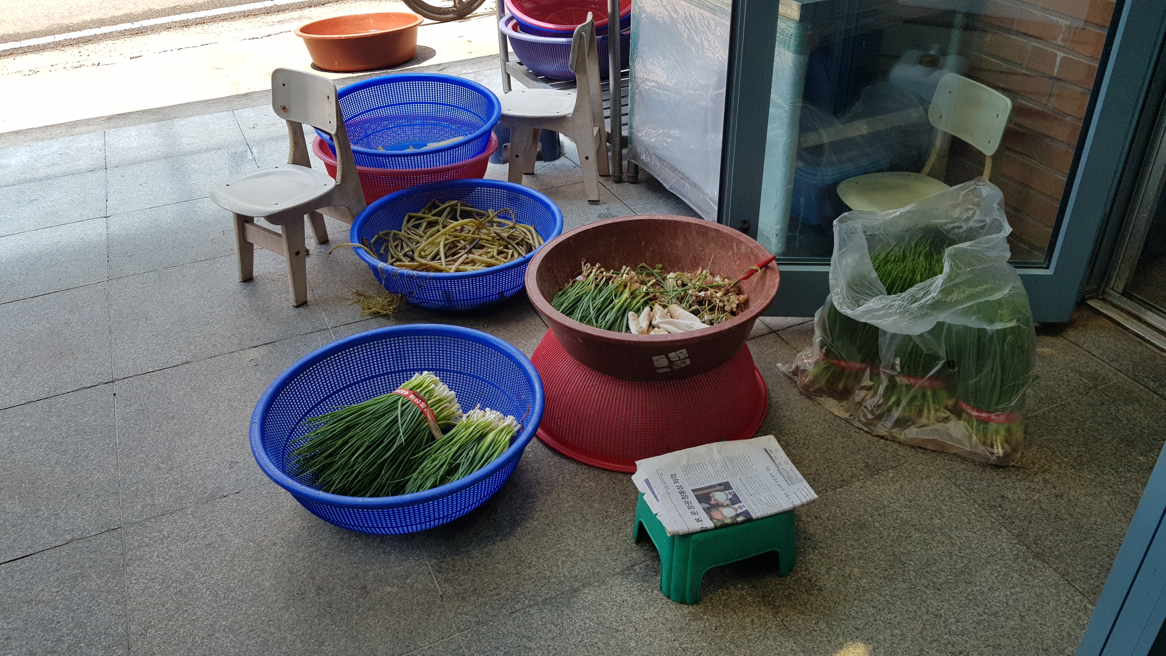 건강하고 신선한 음식, 입에도 맛있게 정말 잘 먹었다. 더덕구이 정식 1인분에 12,000원이지만 이 반찬 하나하나가 맛있었으며 더덕구이 양도 넉넉했기에 정말 괜찮은 가격이라 생각한다. 계산하고 나오는데 반찬을 준비하기 위해 식재료를 소쿠리에 담아놓은게 보인다.