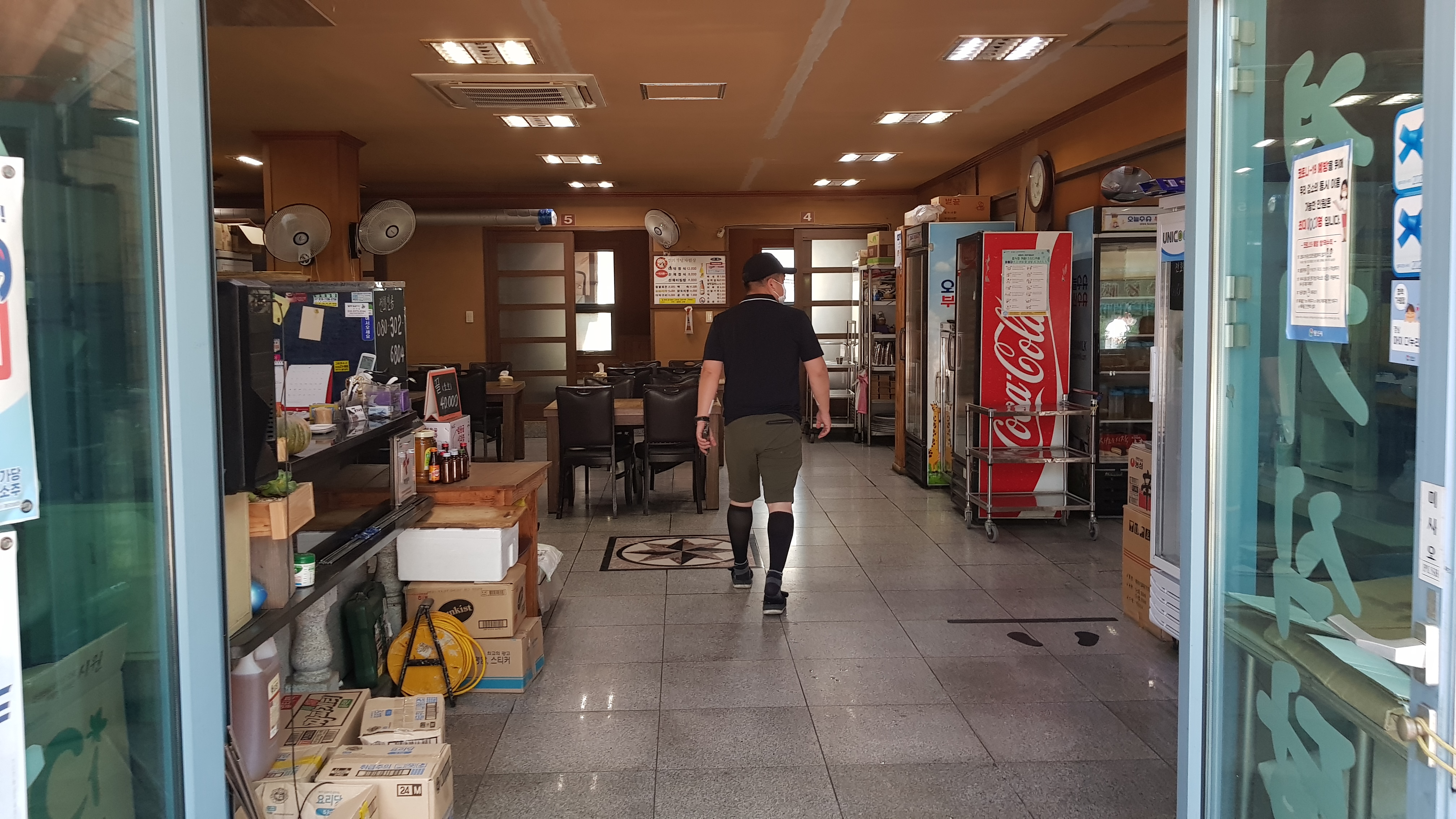 경기식당 내부로 들어서자 왼쪽으로 카운터와 주방이 보인다. 식당 건물 외관을 봤을때도 꽤나 규모가 크게 느껴졌는데 역시나 시원하고 넓직한 홀이 마련되어 있다.