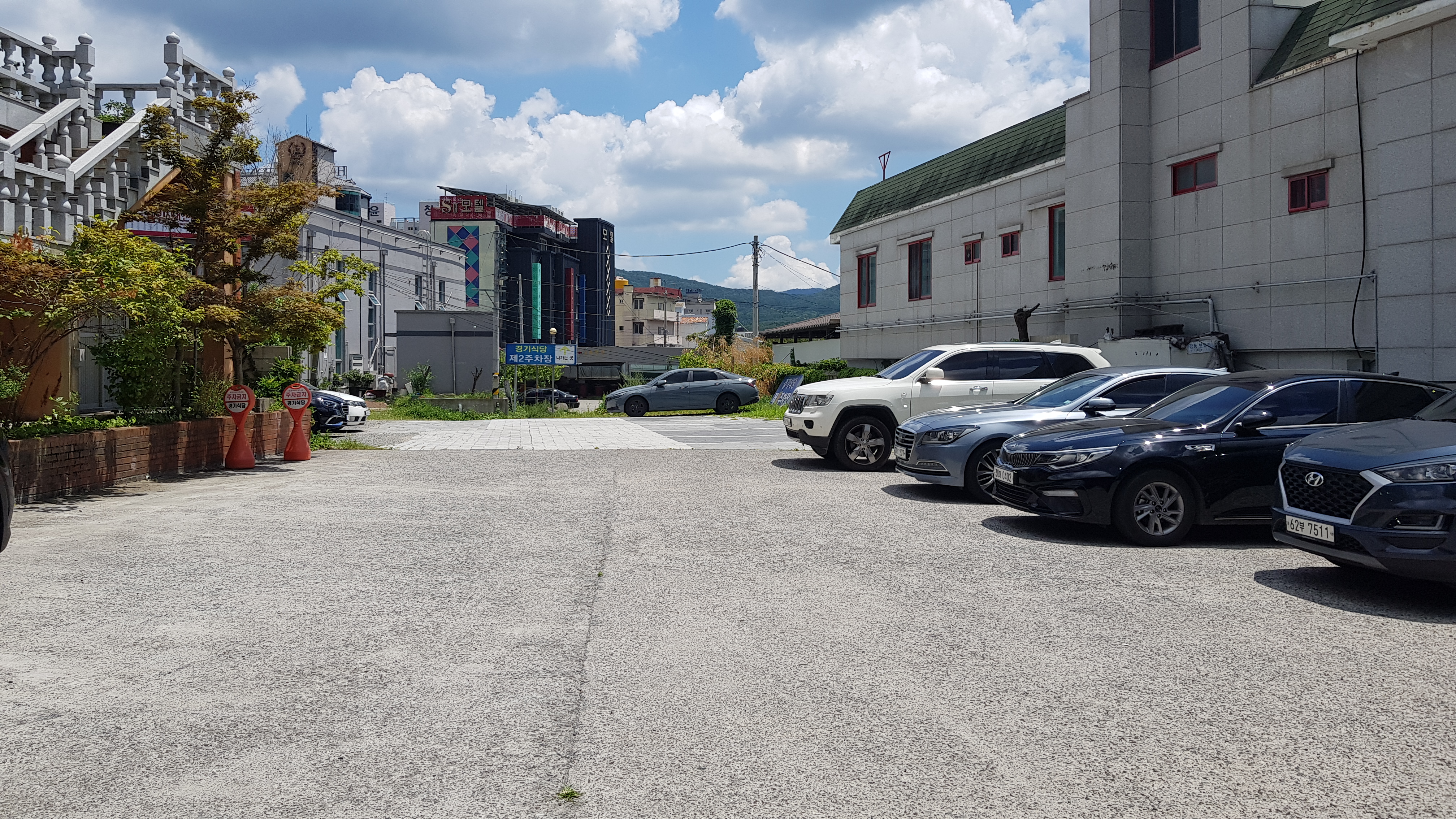 1주차장이 식당과 가까우며 2주차장은 1주차장 안쪽으로 있어 멀지는 않다. 차량 방문시 알아보기 쉽게 구획을 나눠놓은 듯 하다.