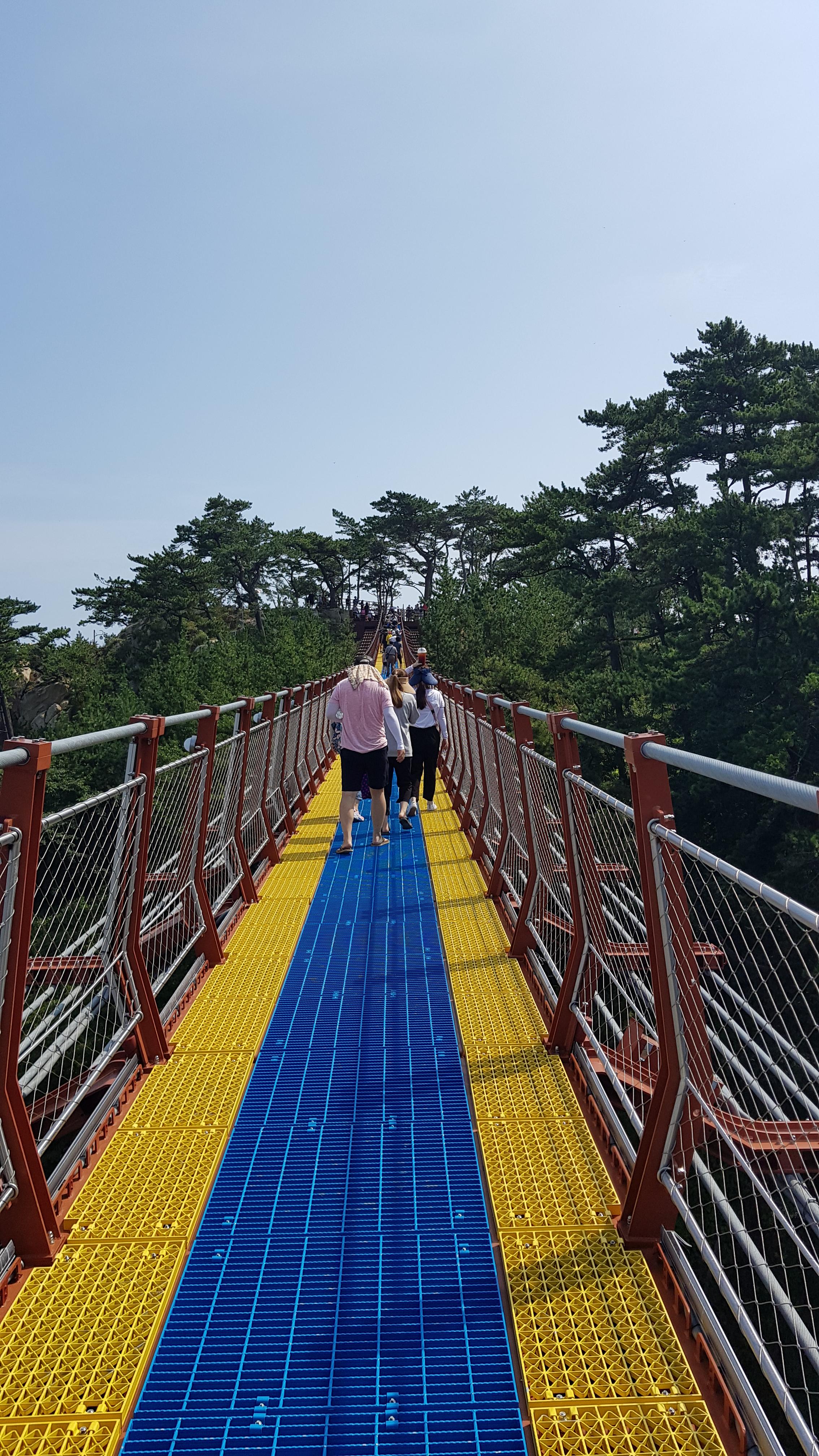 중간즘 건널때면 다리가 많이 흔들린다. 곳곳에서 탄성과 비명이 들리기도 한다. 고소공포증이 있거나 흔들림에 약한 사람에게는 공포스러울 수가 있다. 딸아이가 무서워하지 않을까 걱정했지만 왠걸.. 엉덩이를 흔들며 잘만 건넌다.