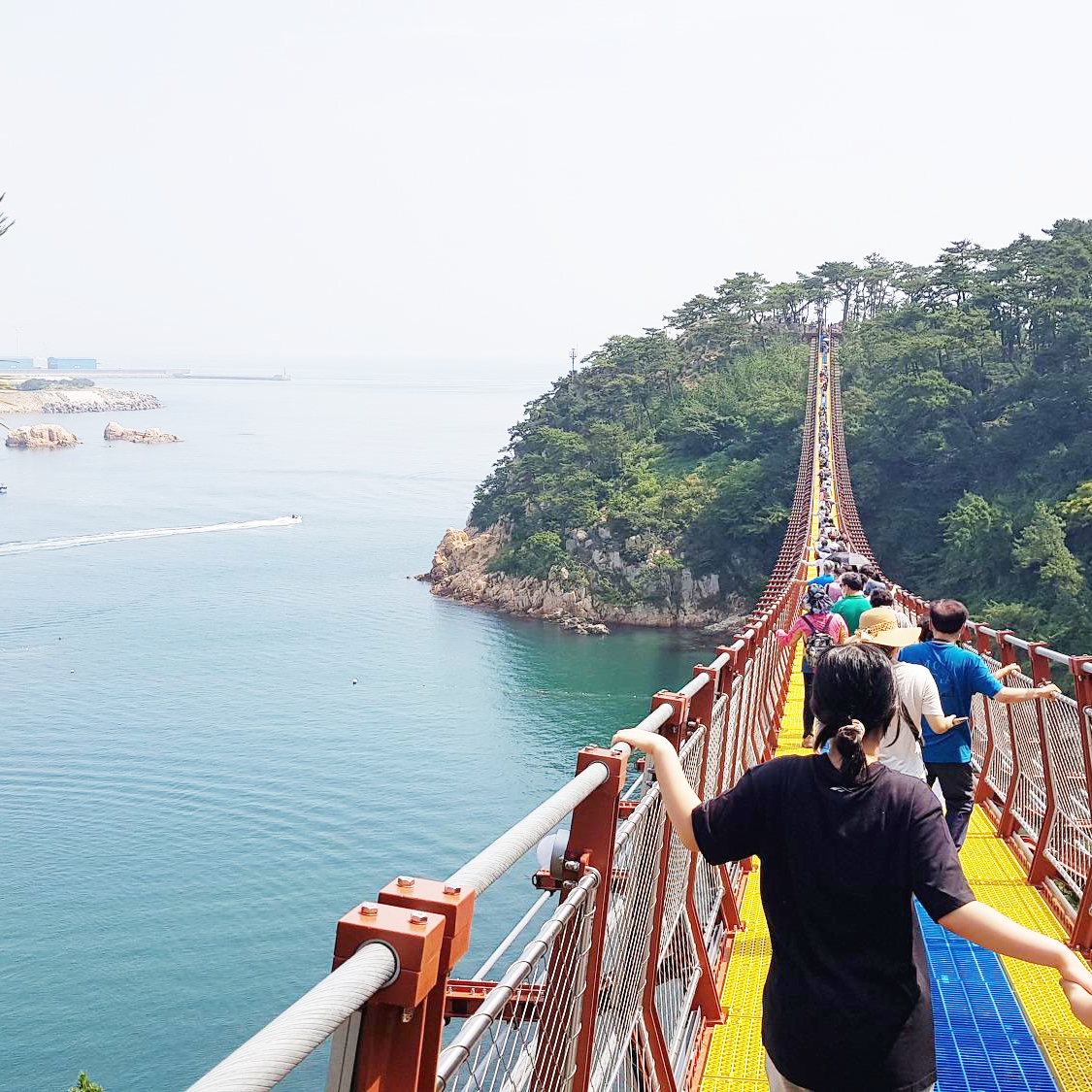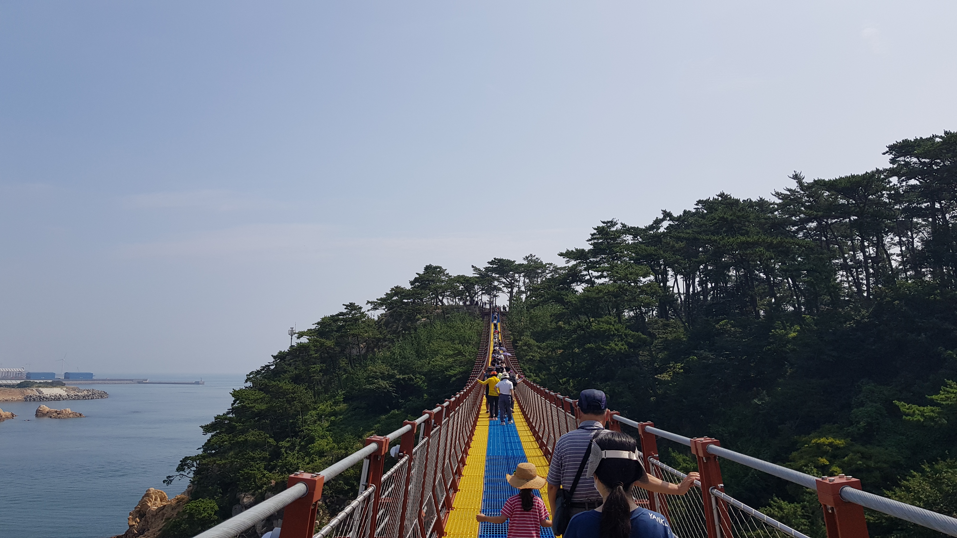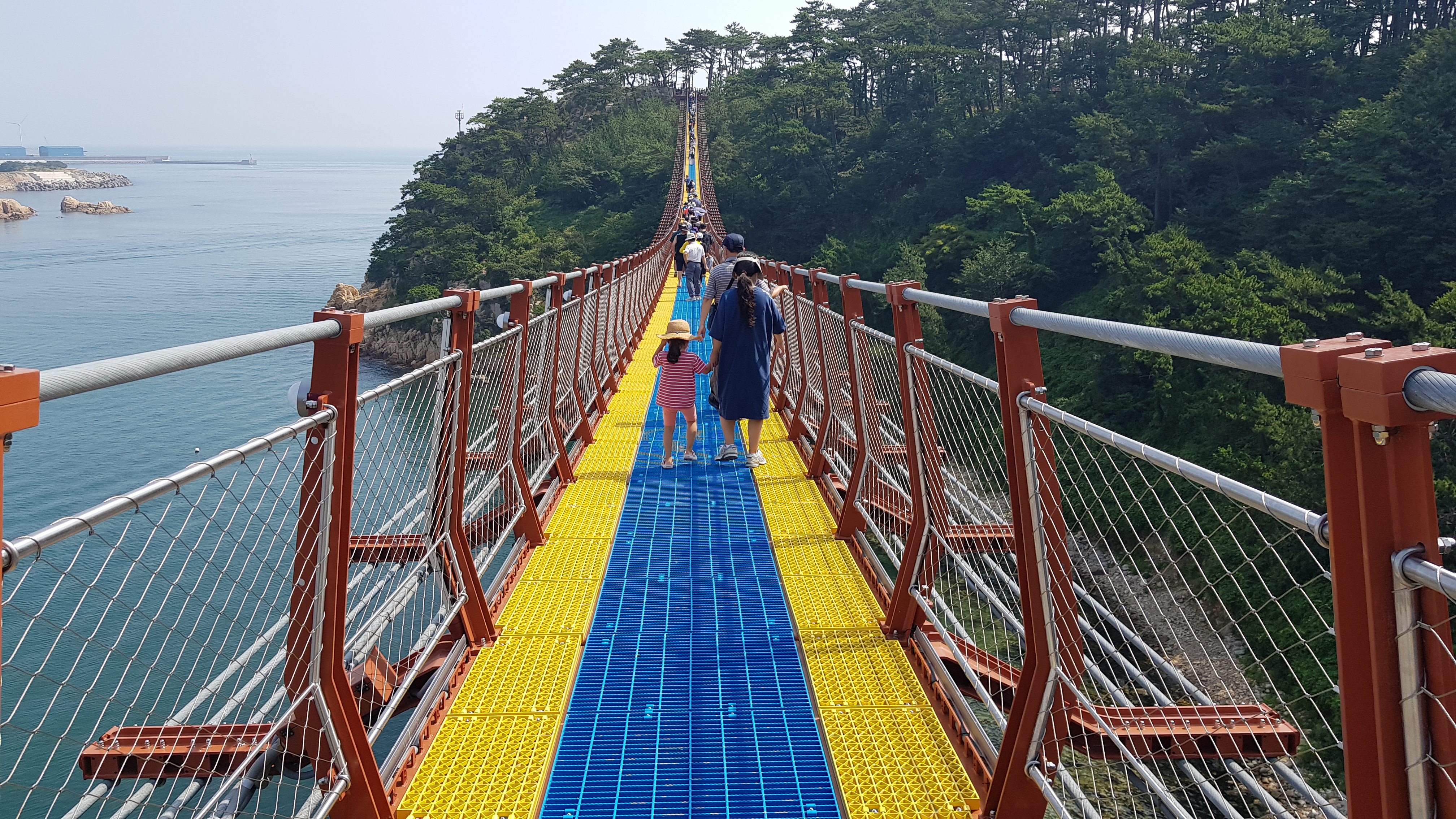 출렁다리 중간지점에서 아래를 내려다 보면 정말 맑은 바다를 볼 수가 있다. 바닷속의 바위가 선명하게 보일 정도이다. 주의할 점은 높이가 매우 높아서 아찔하니 자신있는 사람만 볼 것을 권한다.