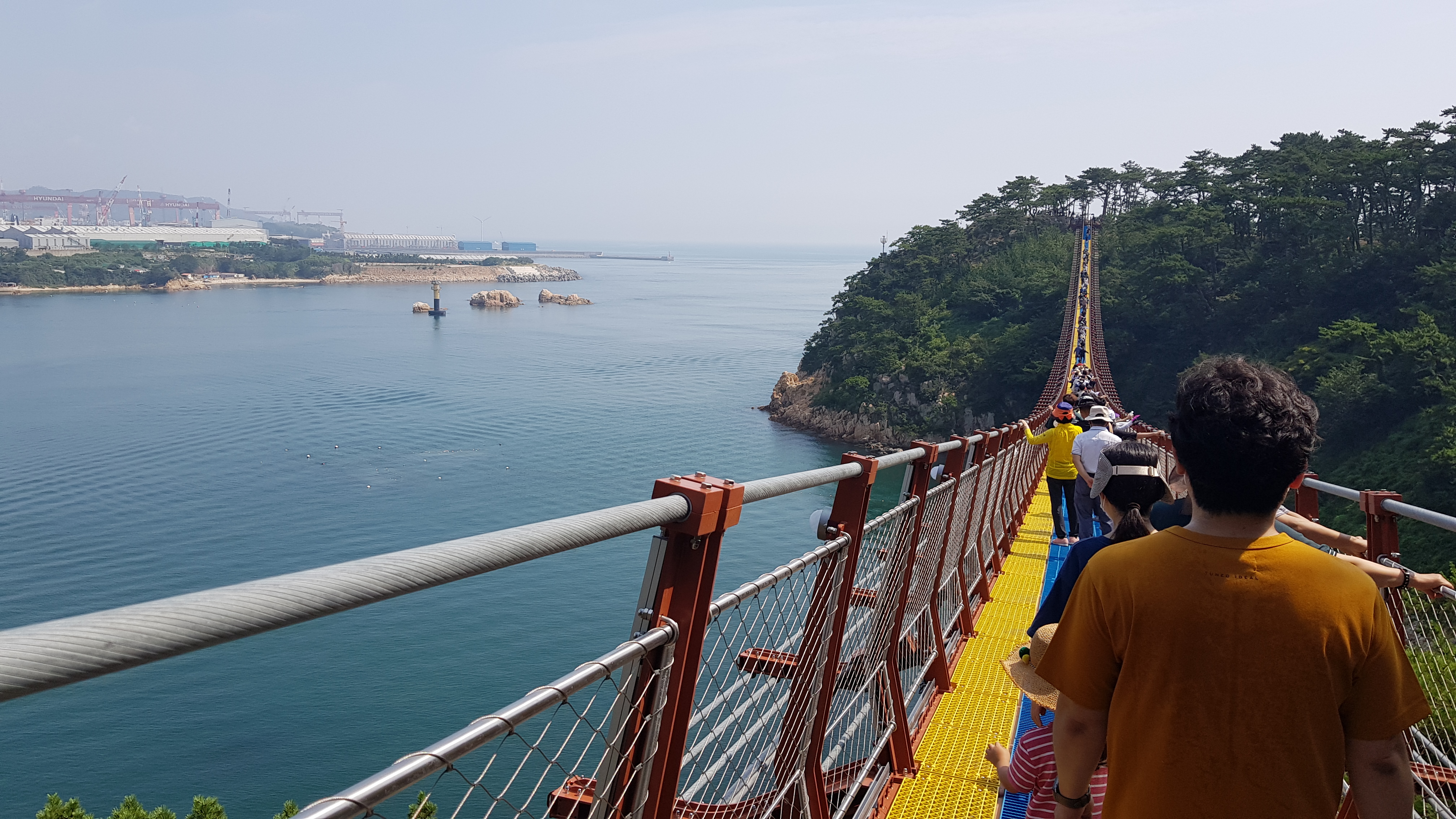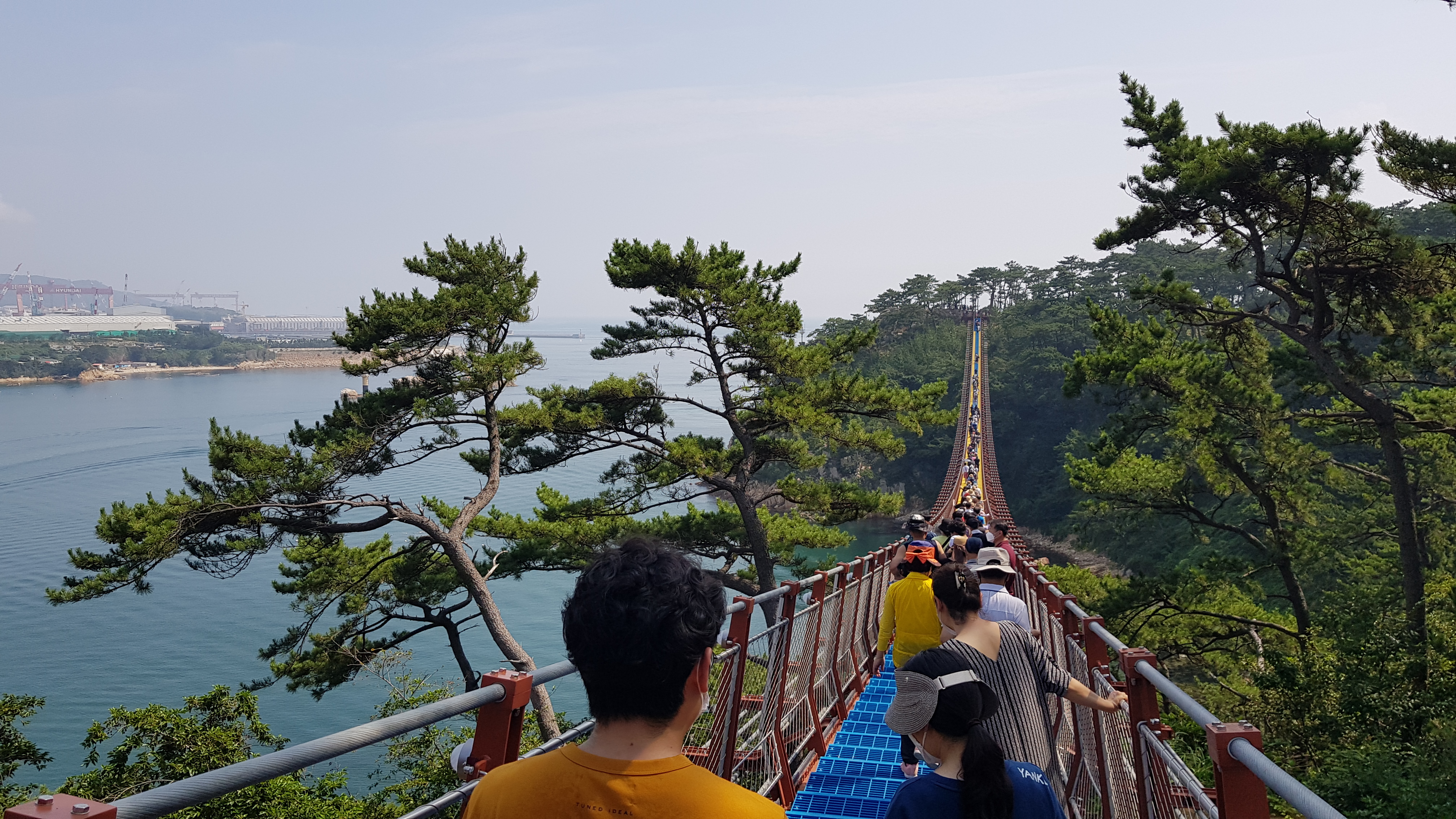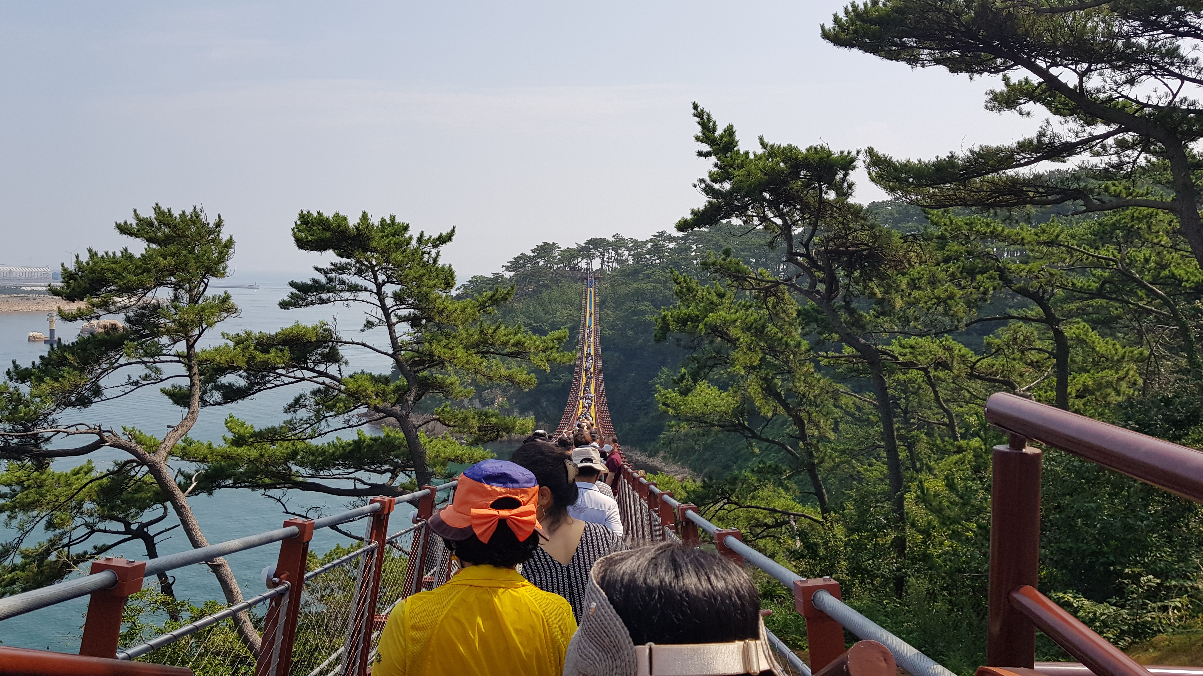 출렁다리 중간지점에서 아래를 내려다 보면 정말 맑은 바다를 볼 수가 있다. 바닷속의 바위가 선명하게 보일 정도이다. 주의할 점은 높이가 매우 높아서 아찔하니 자신있는 사람만 볼 것을 권한다.