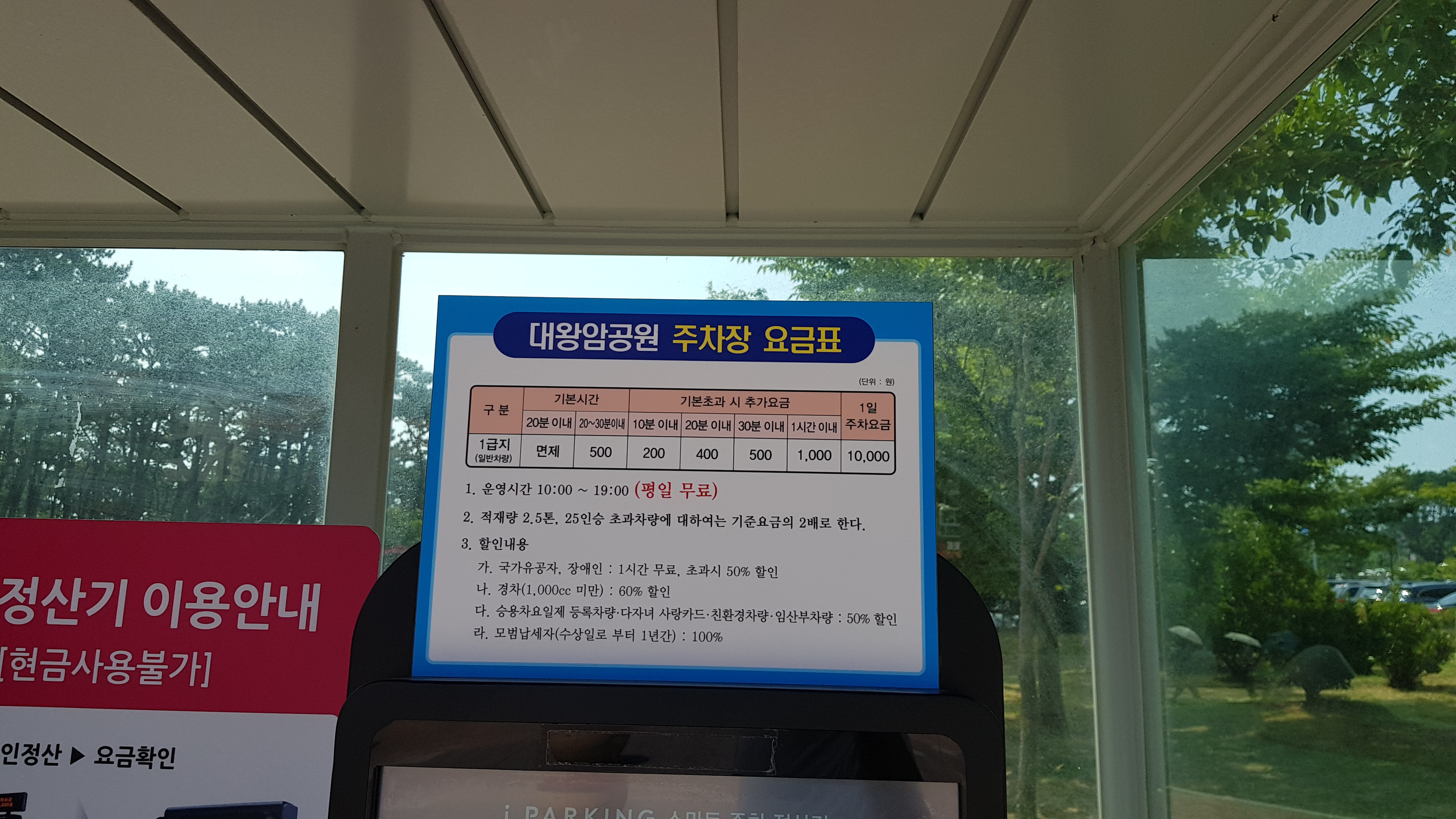대왕암공원에는 주차장이 3군이며 넓게 잘 마련되어있지만 사람들이 많이 찾다보니 공원입구에서 조금이라도 가까운 곳이면 금새 자리가 찬다. 필자가 방문했던 시간은 출렁다리 입장조금 전인 9시 50분 즈음이었는데 벌써 상가쪽의 야외주차장은 거의 차있었지만 운이 좋게도 빠지는 차가 있어서 공원입구 가까운곳에 주차를 할 수가 있었다. 타워주차장은 조금 걸어야 하지만 주차자리를 찾기 번거롭다면 차라리 타워주차장을 이용하는것이 나을 것 같다.