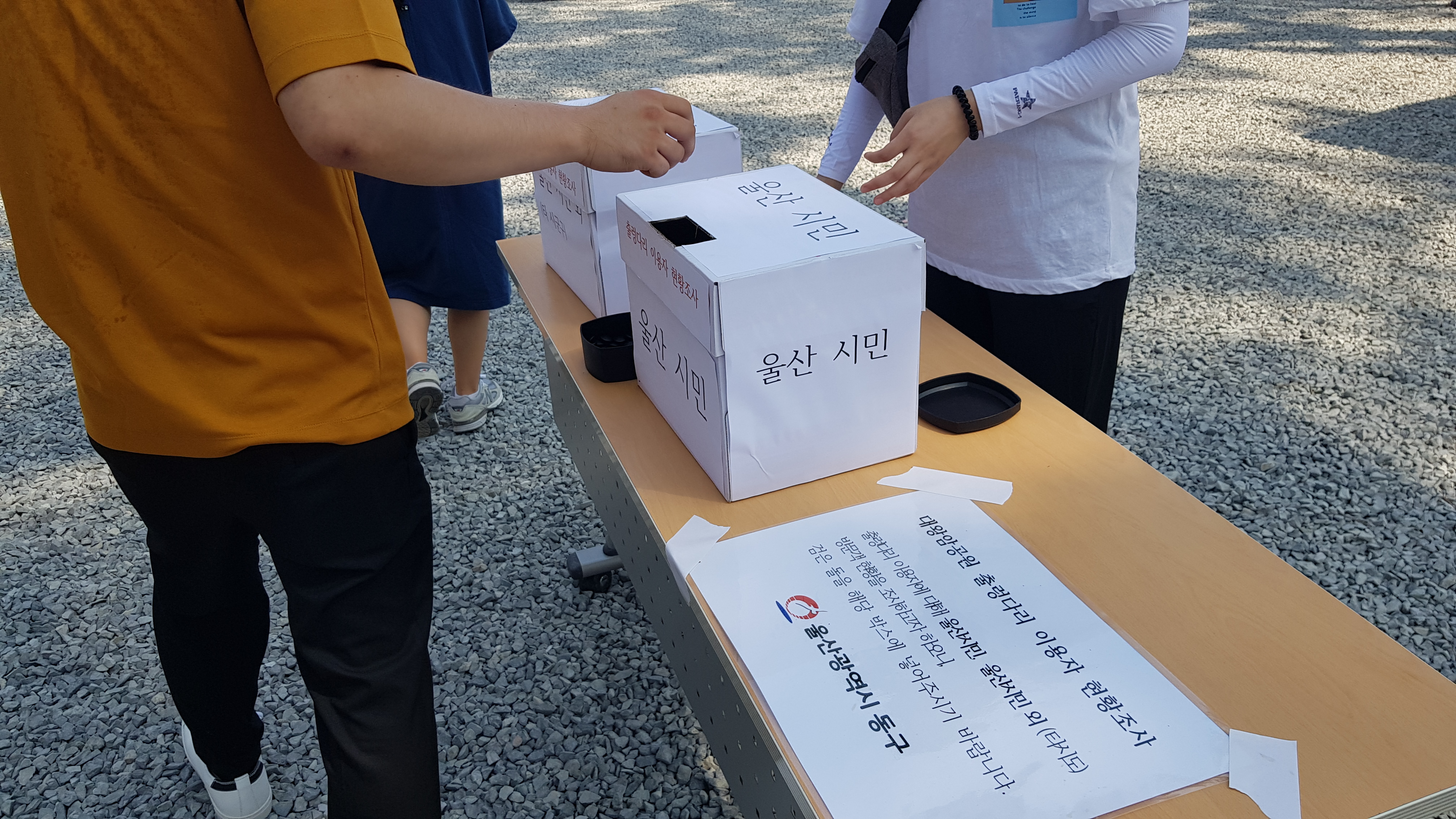뭔가 했더니 대왕암공원 출렁다리 이용자 현황조사중이었다. 바둑알을 집어서 울산시민 or 울산외거주자 해당되는 상자에다 넣으면 된다.
